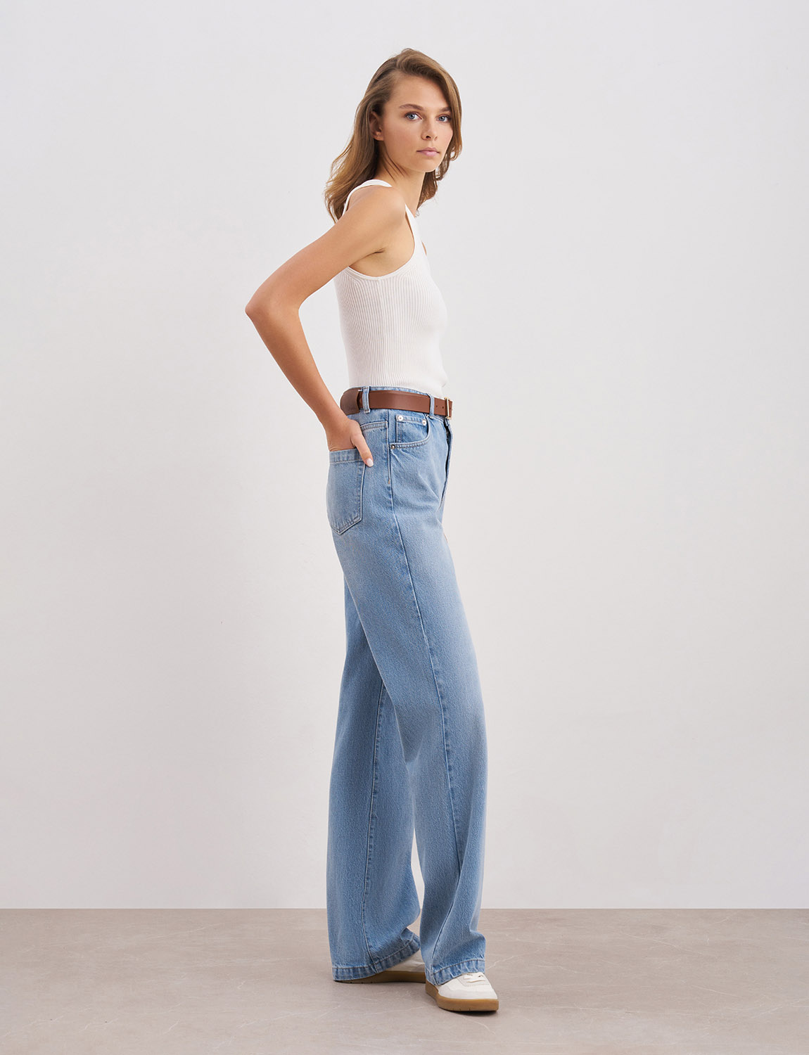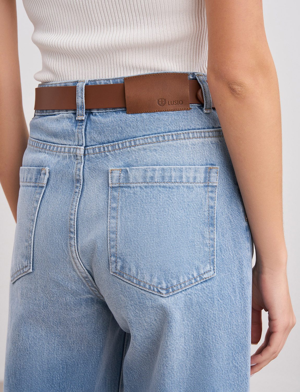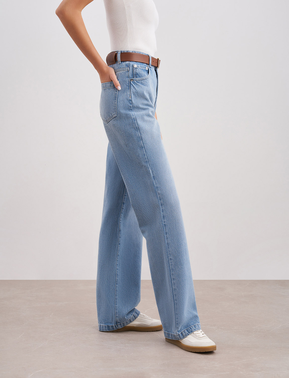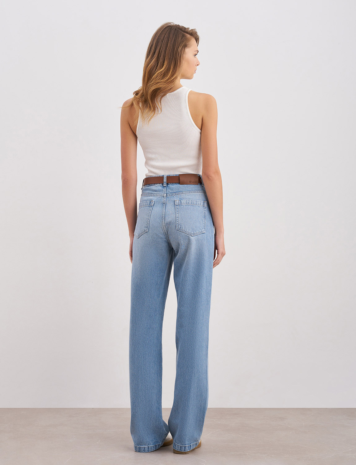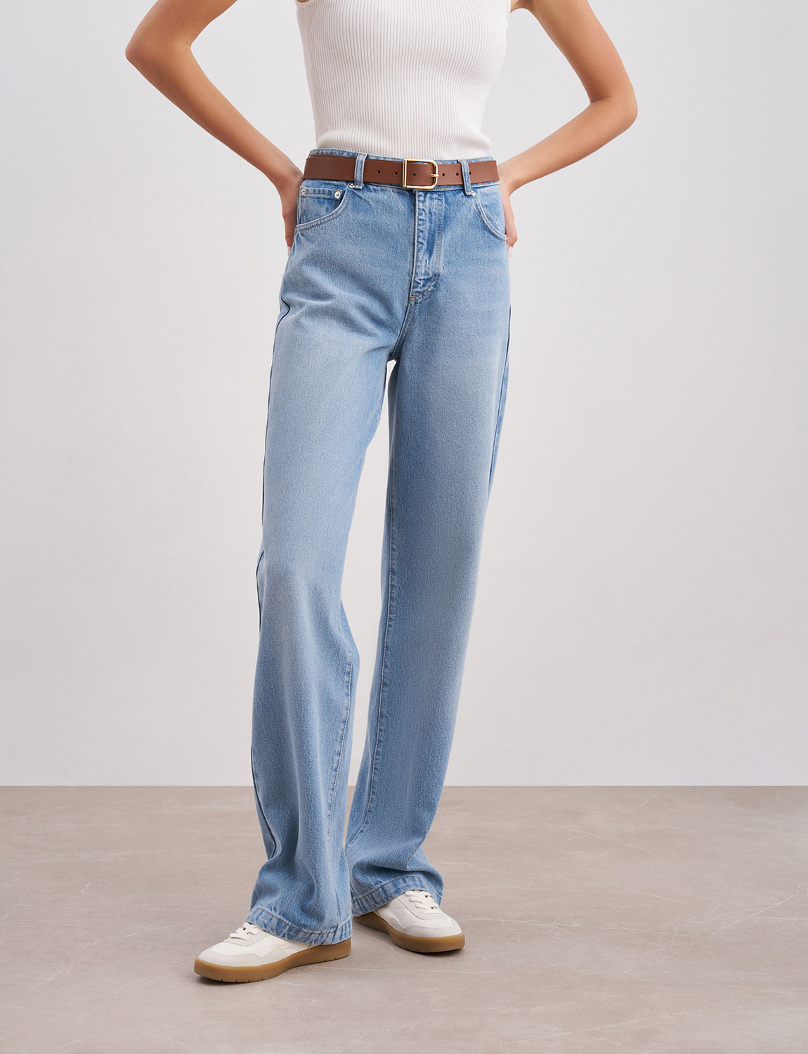 Джинсы-трубы прямого кроя из смесового хлопка. Боковые карманы и карманы на бедрах, шлевки для ремня, застежка на молнии с пуговицей. Мягкий, но в то же время плотный деним с легким эффектом потертости. Прямые джинсы - актуальная и долговечная модель для повседневной жизни и создания образов в стиле кэжуал с топами, рубашками, блузами и жакетами. Ремень в комплект не входит. На модели размер S. Параметры модели: рост 180, 83-60-88.