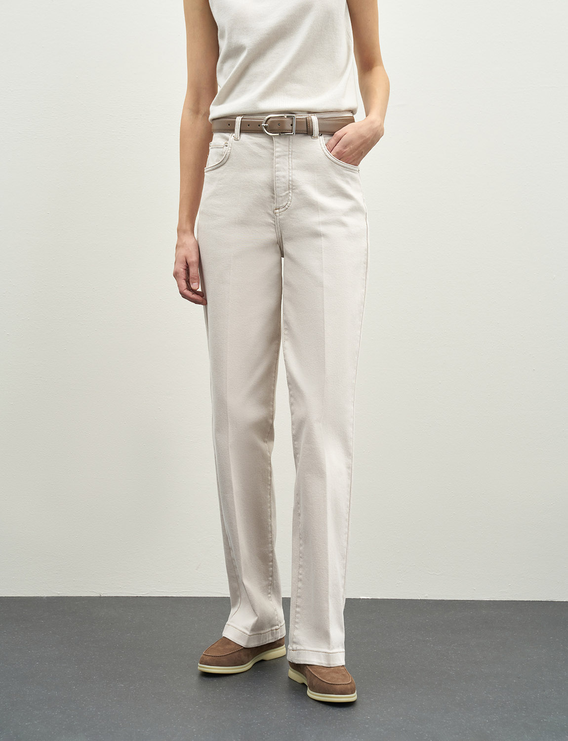Джинсы прямого кроя из натурального хлопка. Средняя посадка, классические стрелки, контрастная строчка. Дополнят образы на каждый день, просты в уходе, будут сочетаться со всеми базовыми вещами - футболками и топами, жакетами и рубашками, джемперами и кардиганами. Образ дополнят кеды, босоножки или лоферы. На модели размер 26. Параметры модели: рост 179, 82-64-94.