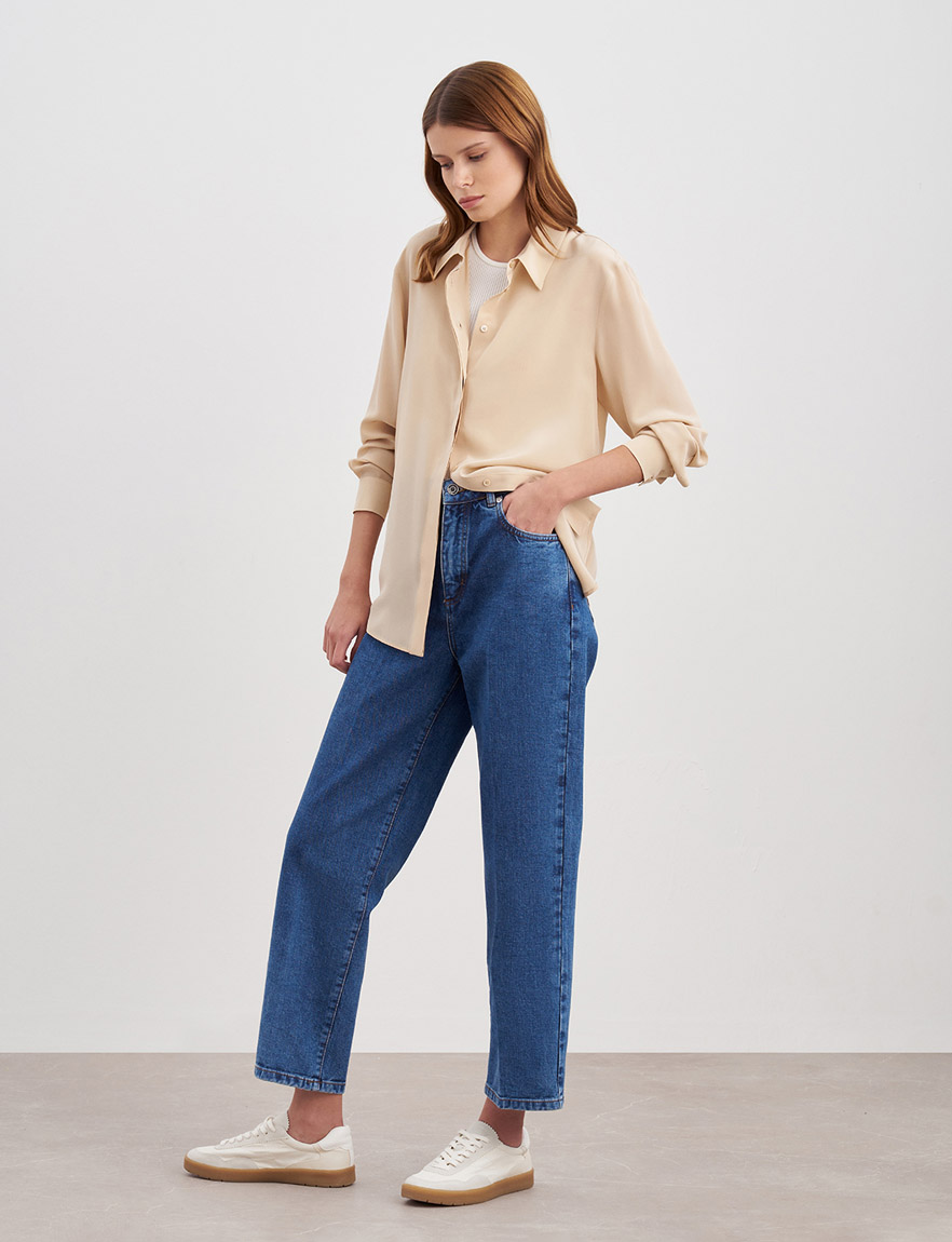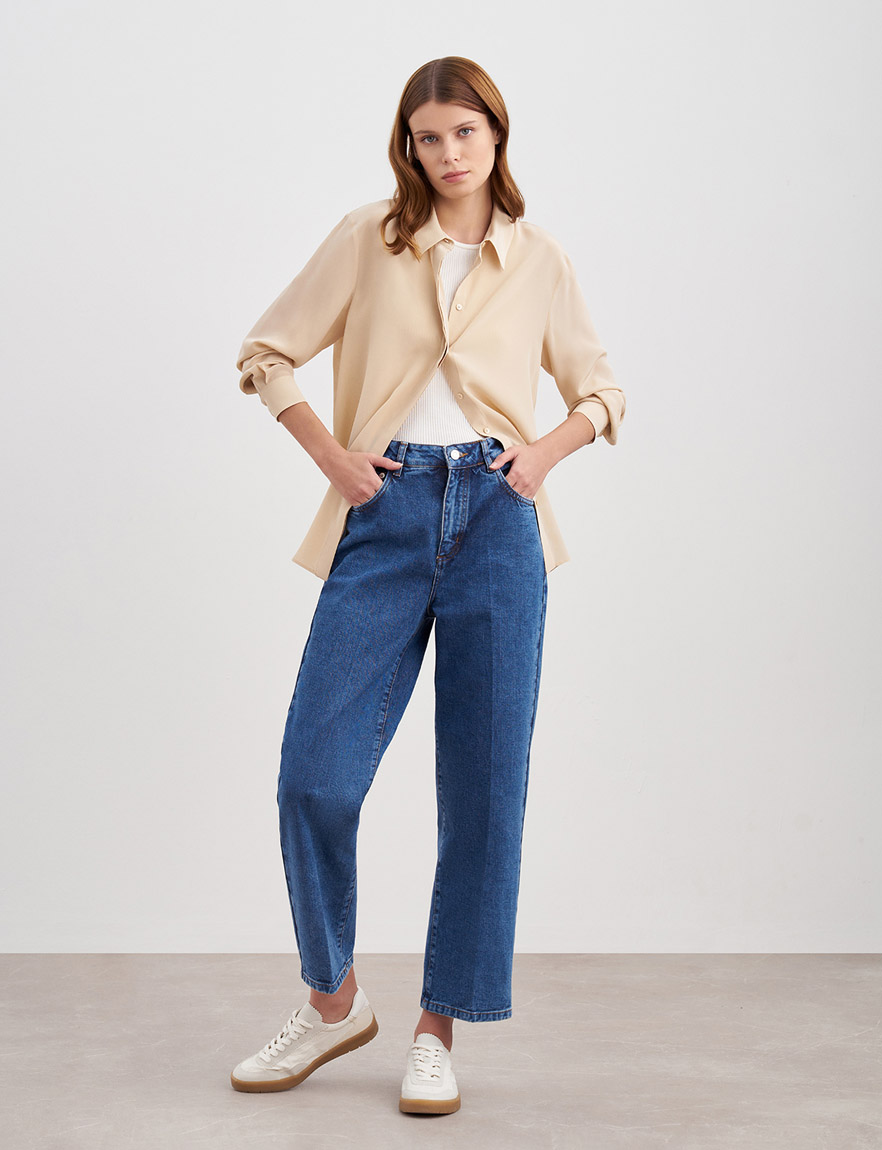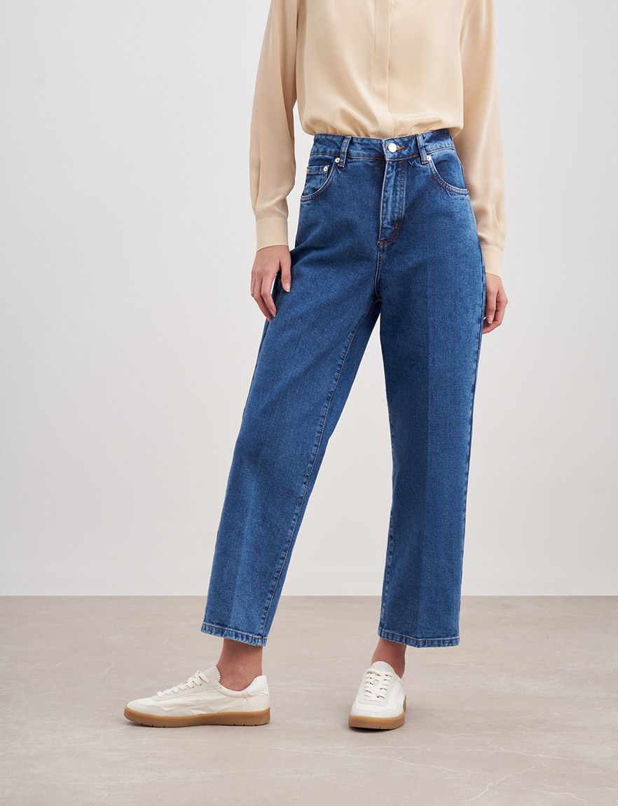 Прямые классические джинсы со стрелками. Средняя посадка, боковые прорезные карманы и накладные карманы на бедрах, дышащий деним из натурального хлопка с легким эффектом потертости. Дополнят образы на каждый день, просты в уходе, будут сочетаться со всеми базовыми вещами - футболками и топами, жакетами и рубашками, джемперами и кардиганами. Образ дополнят кеды, босоножки или лоферы. На модели размер 26. Параметры модели: рост 178, 80-60-88.