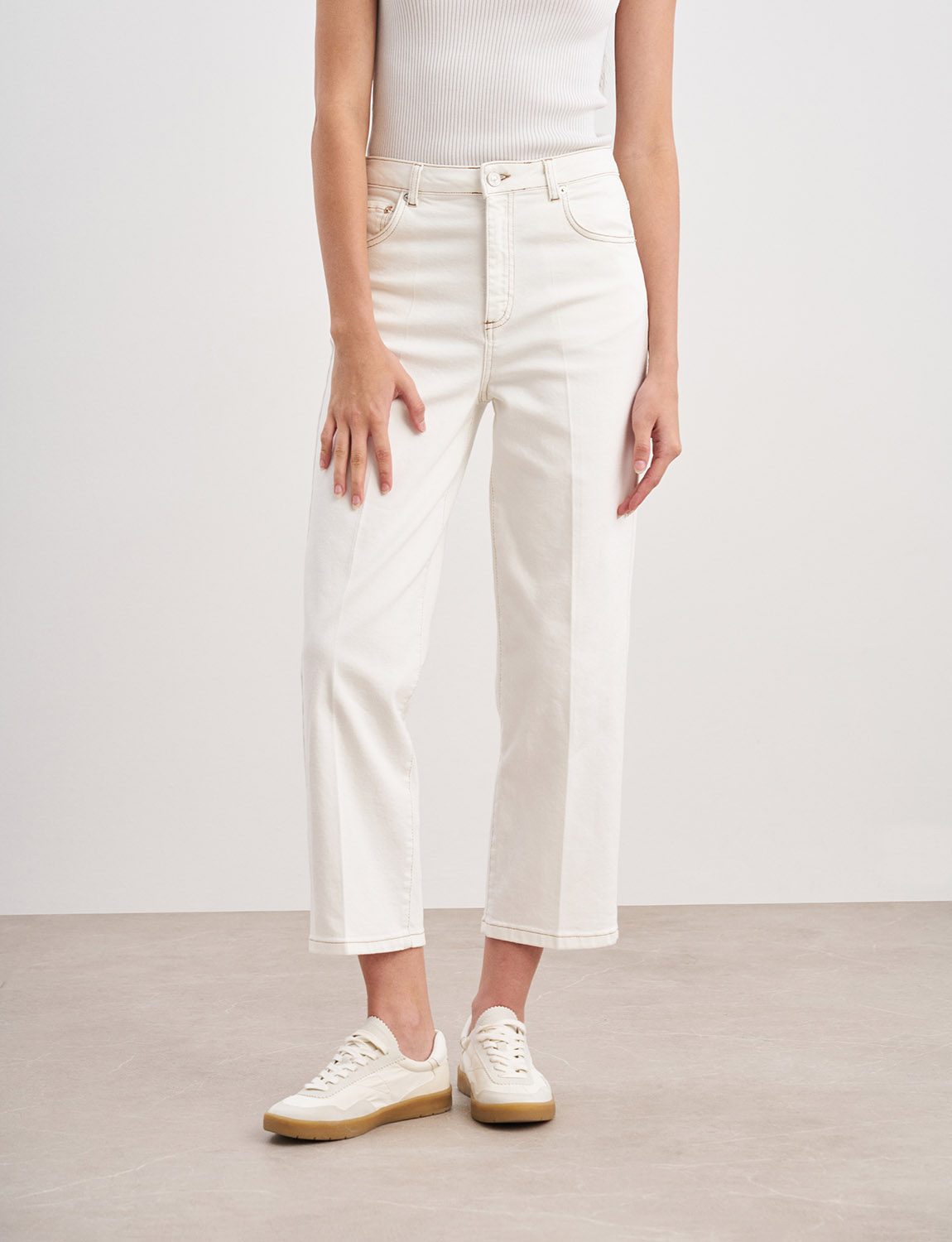 Укороченные прямые джинсы со стрелками. Контрастная строчка, натуральный хлопок в составе, классический прямой крой и средняя посадка. Дополнят образы на каждый день, просты в уходе, будут сочетаться со всеми базовыми вещами - футболками и топами, жакетами и рубашками, джемперами и кардиганами. Образ дополнят кеды, босоножки или лоферы. На модели размер 26. Параметры модели: рост 179, 82-64-94.