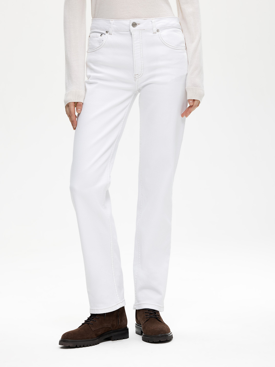 Прямые джинсы из хлопка со средней посадкой. Прочный деним, классический прямой крой, не сковывают движений и сохраняют форму со временем. Дополнят образы на каждый день, просты в уходе, будут сочетаться со всеми базовыми вещами - футболками и топами, жакетами и рубашками, джемперами и кардиганами. Образ дополнят кеды, босоножки или лоферы. На модели размер 26. Параметры модели: рост 179, 82-64-94.