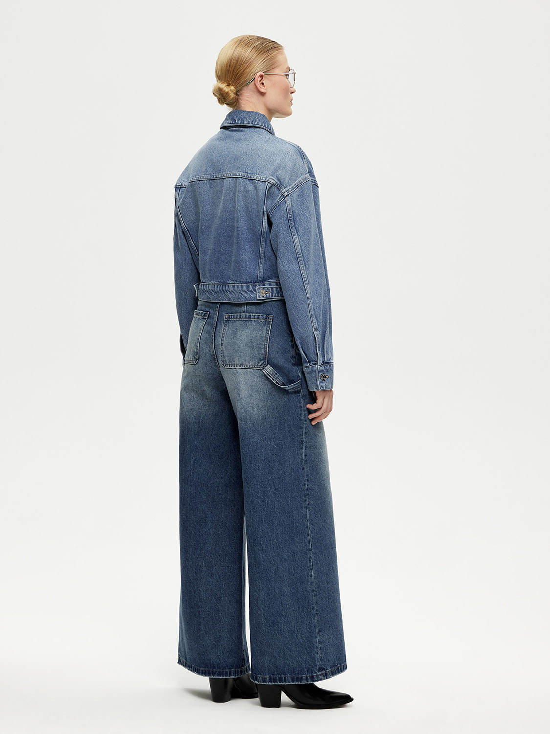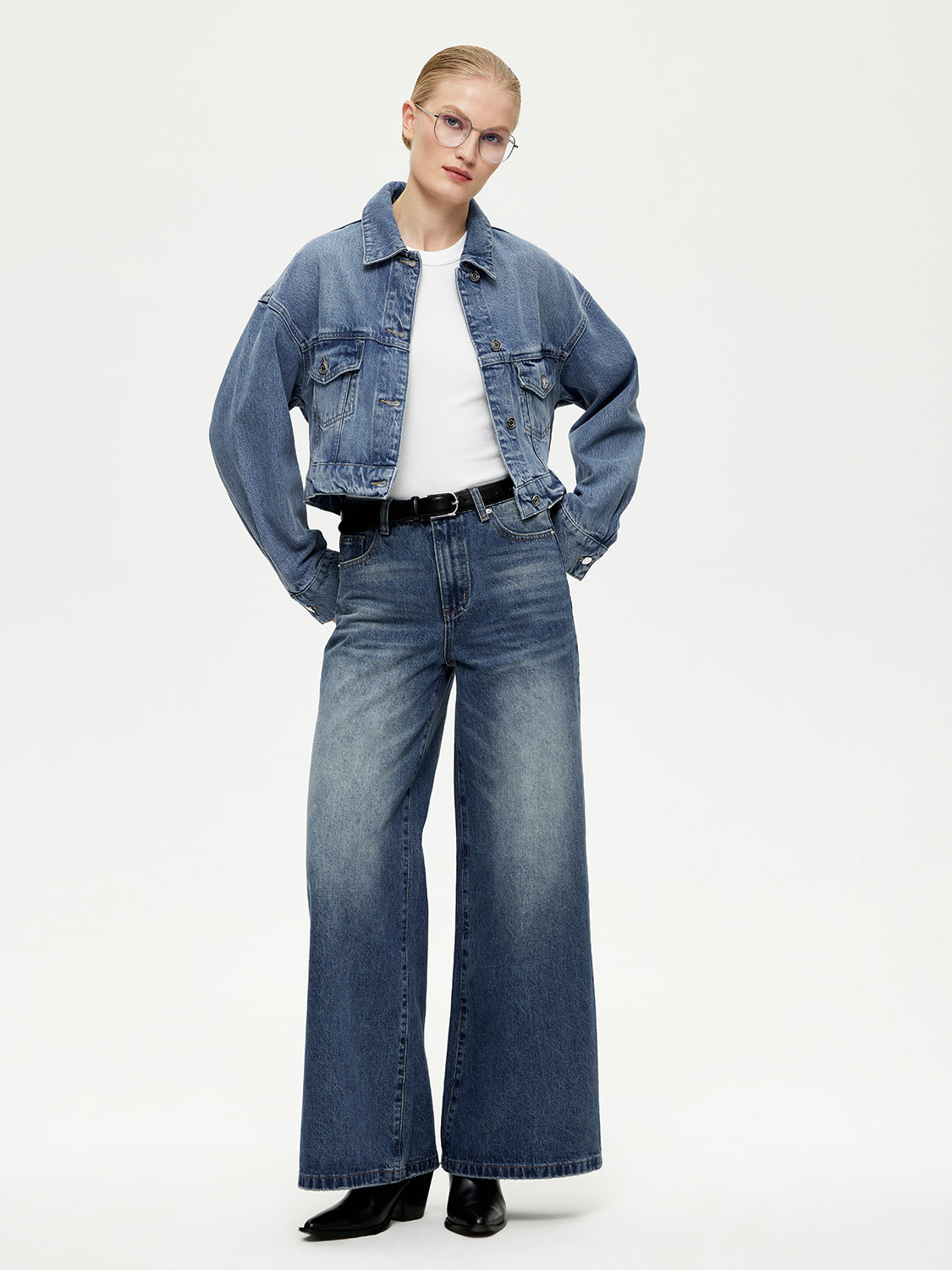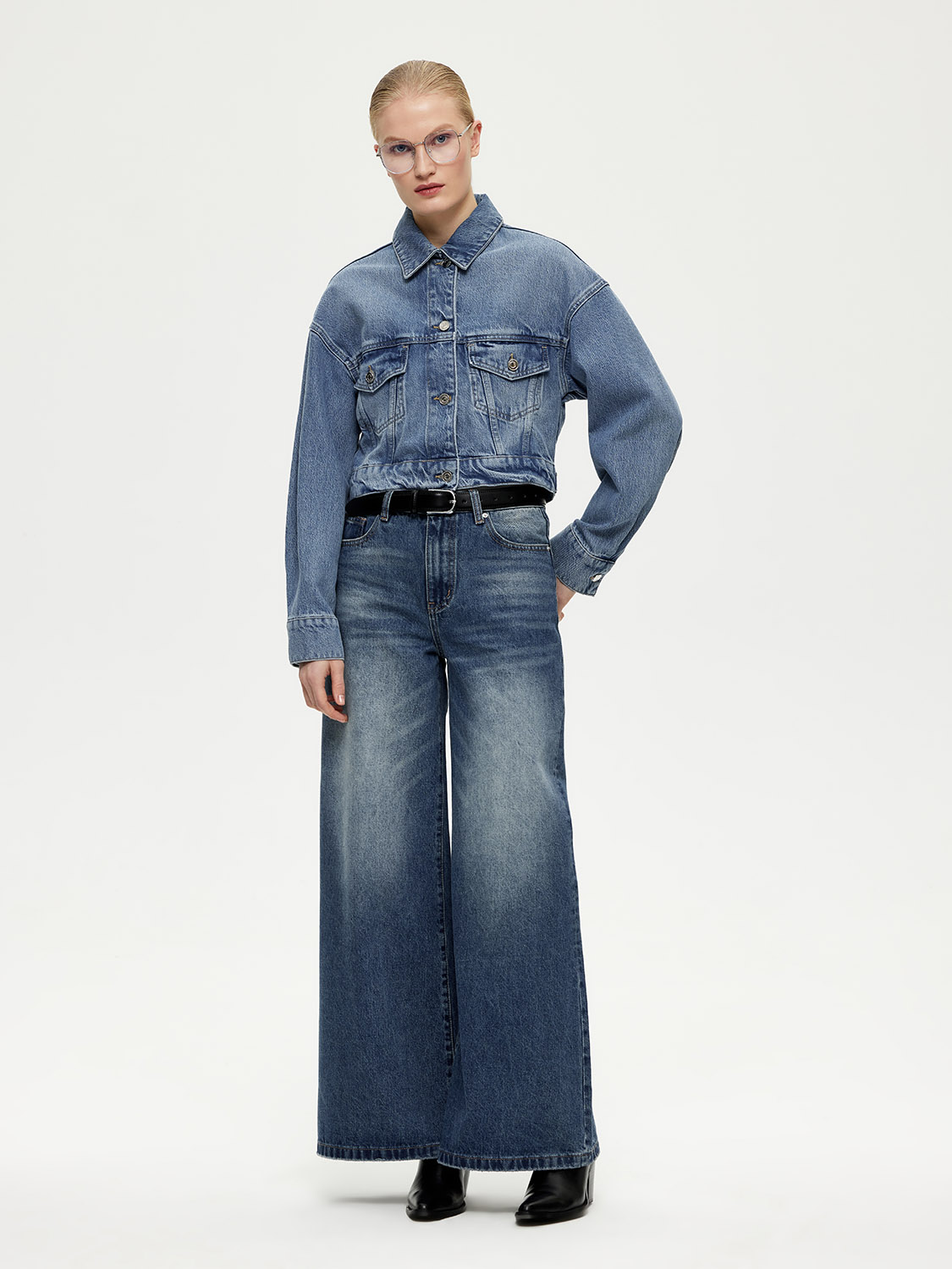 Укороченная джинсовая куртка сшита из мягкого дышащего хлопка. В состав ткани добавили прочный шелковистый тенсел с антибактериальными свойствами, поэтому она не вытянется со временем и будет дольше сохранять свежий вид после стирки. Опущенный рукав, свободный крой делают куртку комфортной в носке, а также позволяют надевать под низ объемные вещи. Куртка с отложным воротником, накладными карманами и металлическими пуговицами. Выразительности придает легкая выбеленность, эффект делаве. Комбинируйте с джинсами из нашей коллекции, создавая total denim образы, или с платьями, юбками и брюками, играя на контрасте фактур. На модели размер S. Параметры модели: рост 175, 80-63-89.