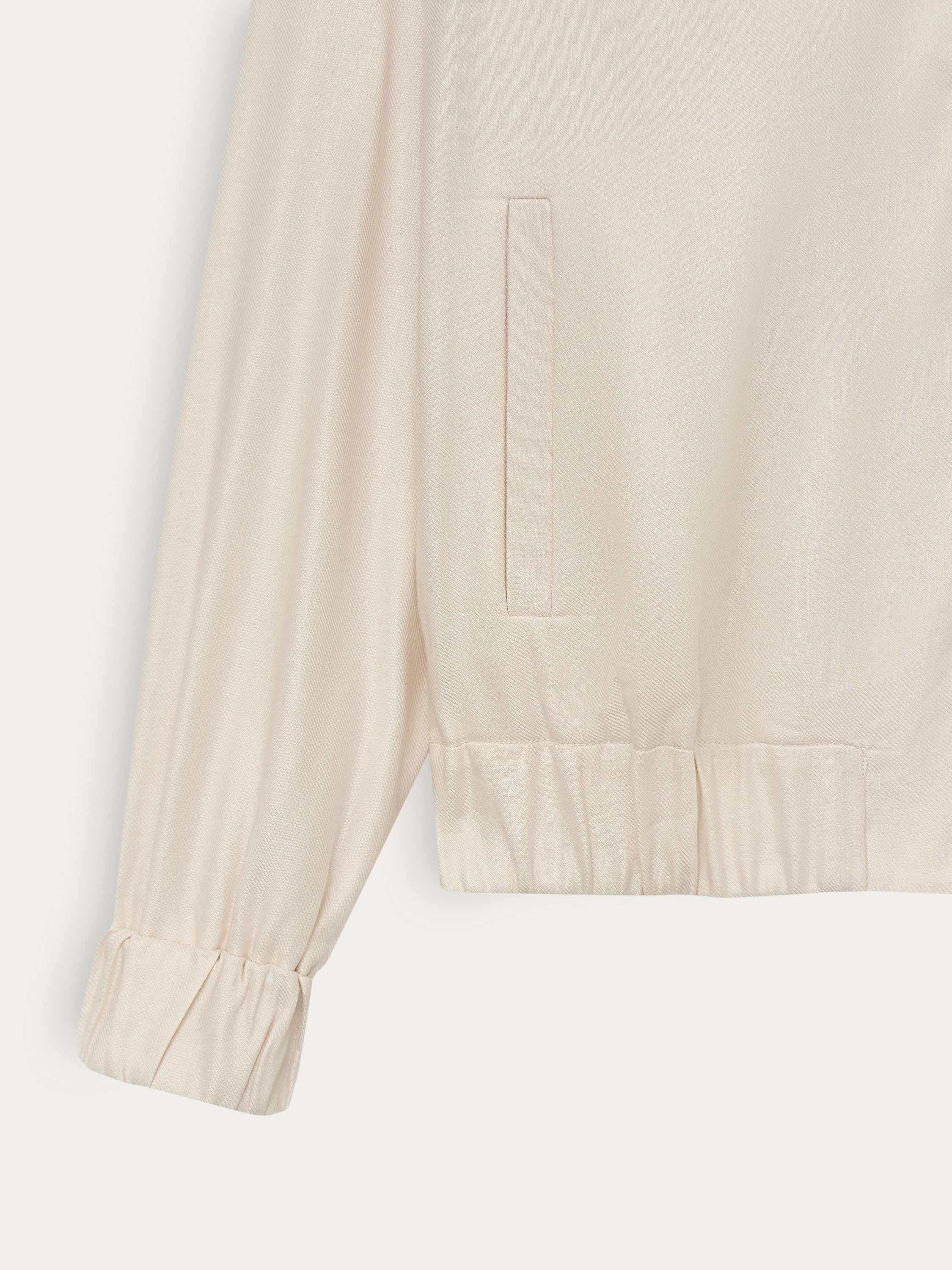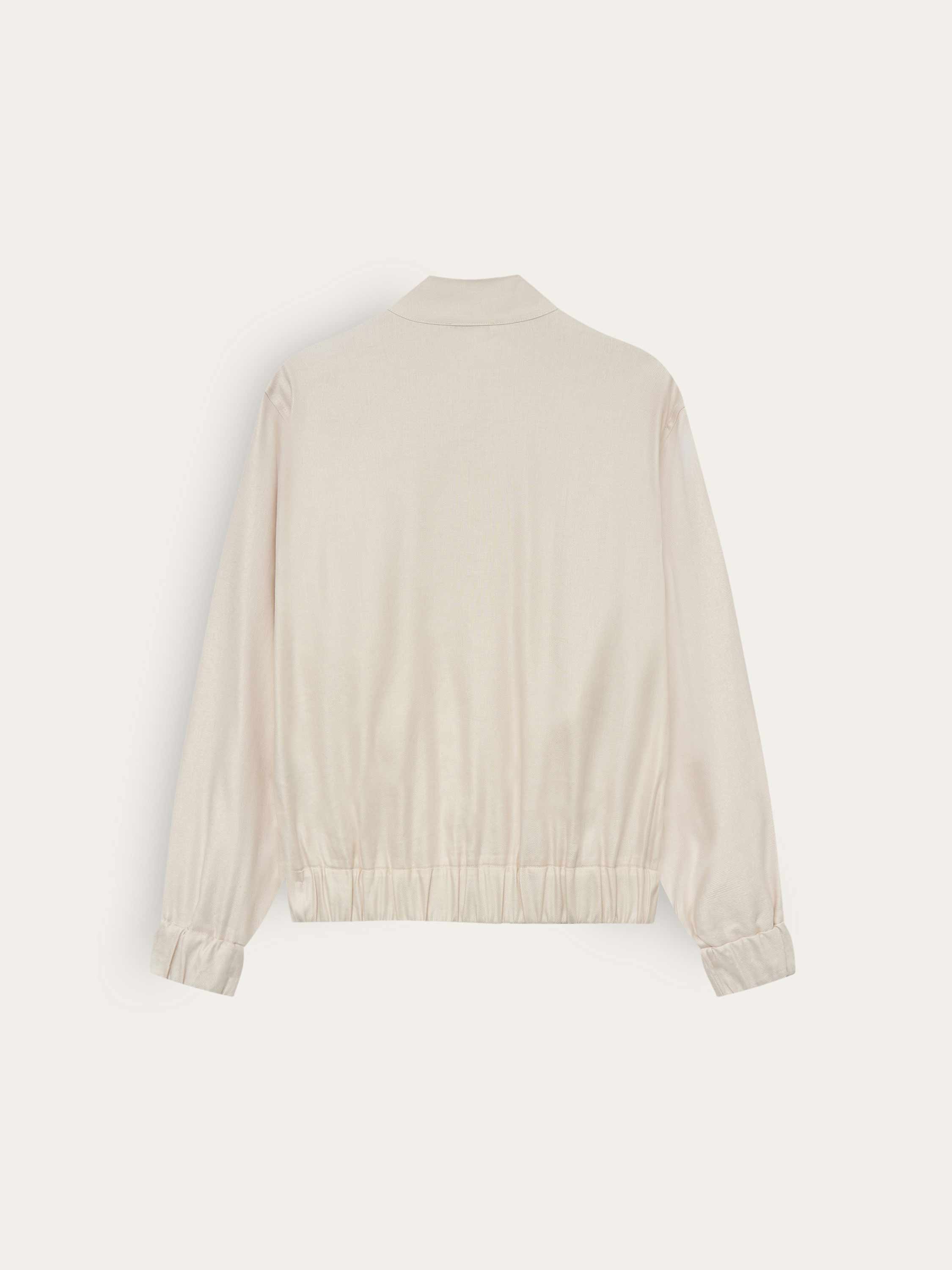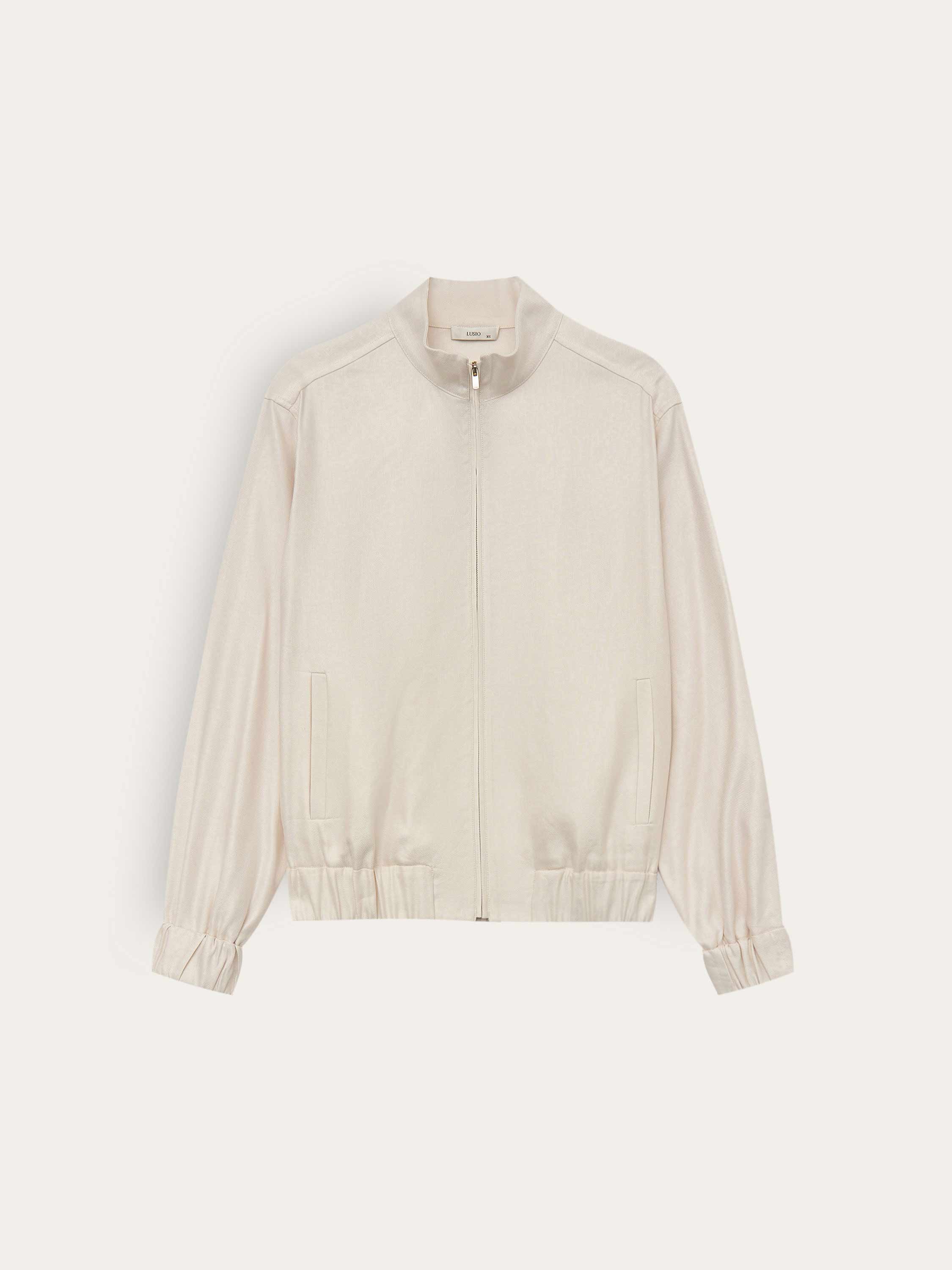 Минималистичный бомбер изо льна и вискозы — легкий акцент в весенне-летнем гардеробе. Натуральный лен в составе отвечает за воздухопроницаемость и терморегуляцию, а вискоза придает ткани мягкость и деликатный блеск. Чистый силуэт без лишних деталей подчеркивает архитектурность формы: воротник-стойка, эластичные манжеты и пояс, потайные карманы, аккуратная молния. Нейтральный оттенок усиливает ощущение свежести и универсальности — сочетай с брюками, юбками или платьями в светлой гамме для расслабленного, но собранного образа.