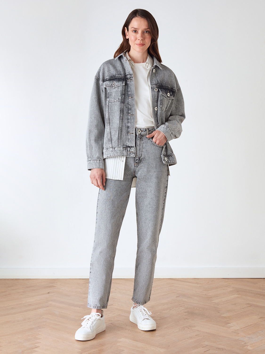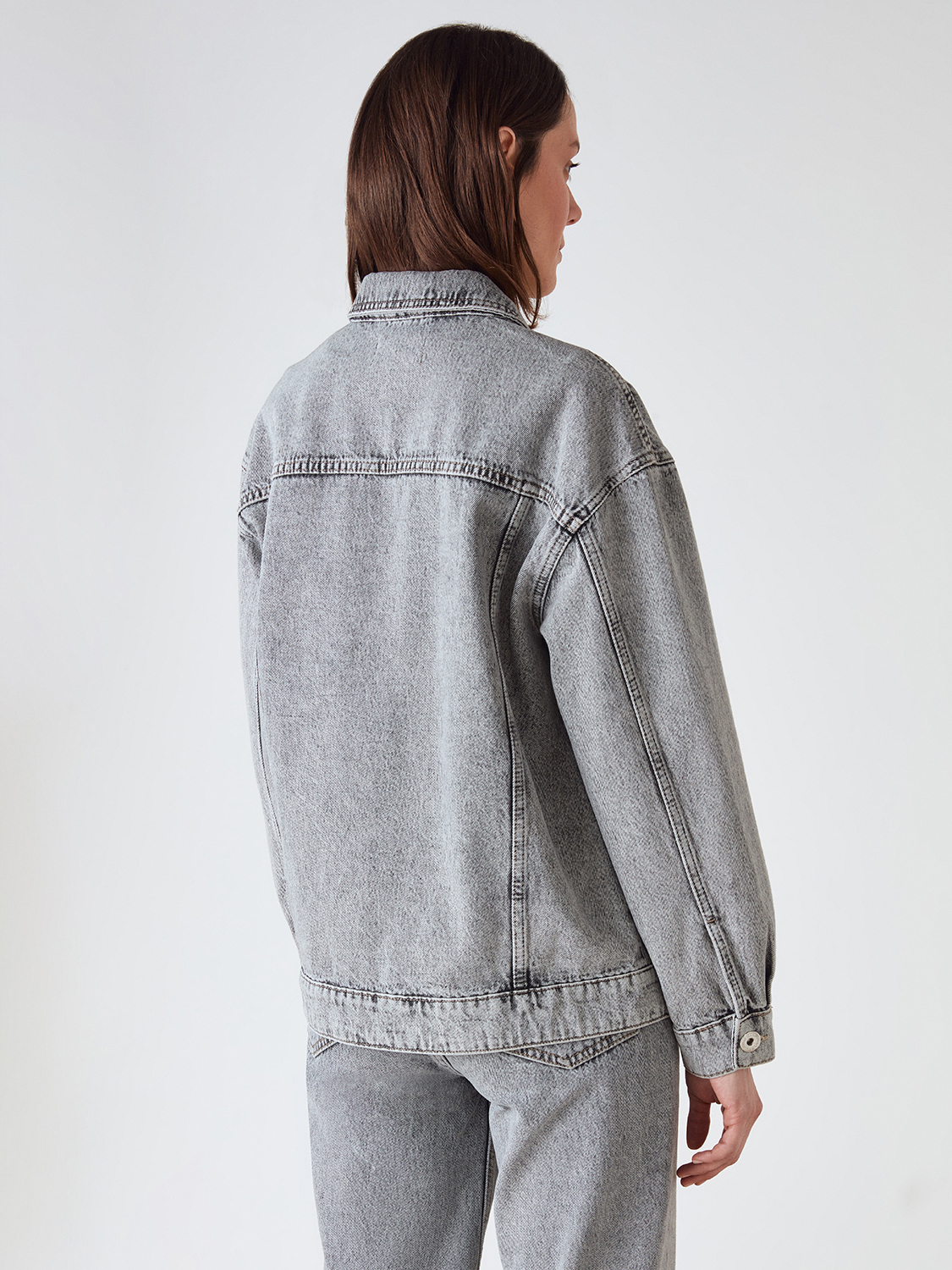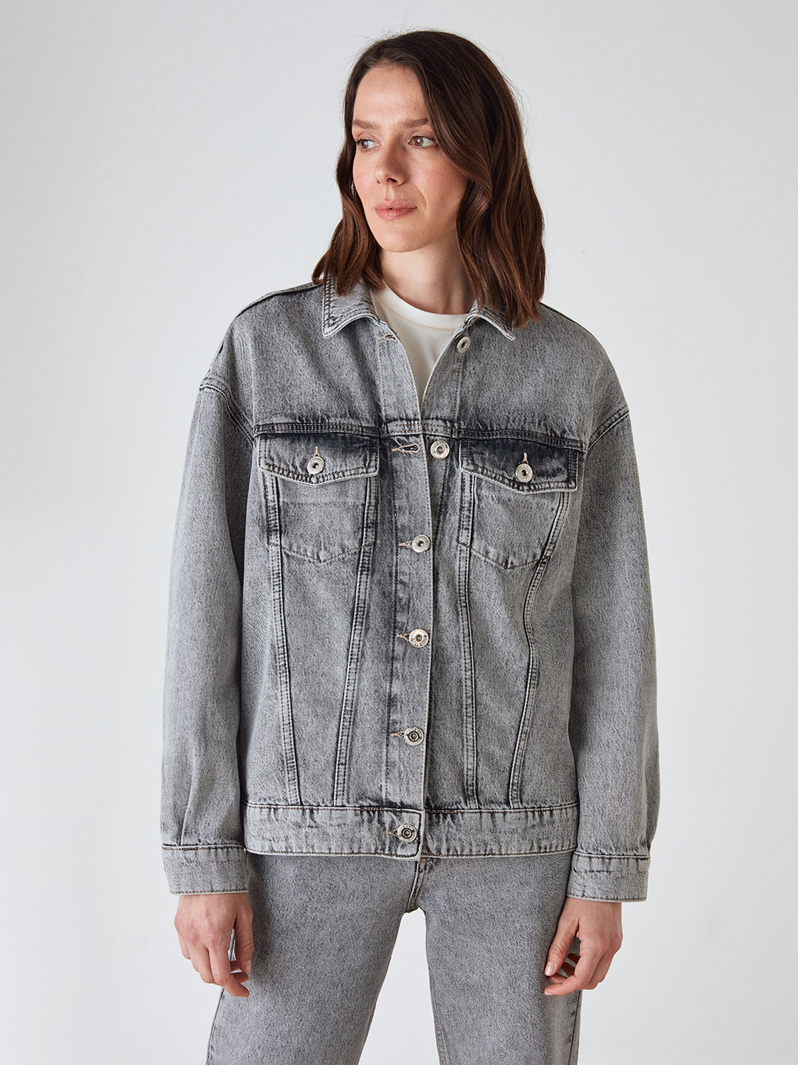 Базовая джинсовая куртка оверсайз. Плотный, дышащий деним, спущенная линия рукава, манжеты и застежка на пуговицах. Свободно сидит по фигуре, сочетается с любыми кэжуал образами-джинсами, футболками и топами, кедами. Универсальный вариант для повседневной жизни, работы, прогулок в прохладную погоду и встреч.