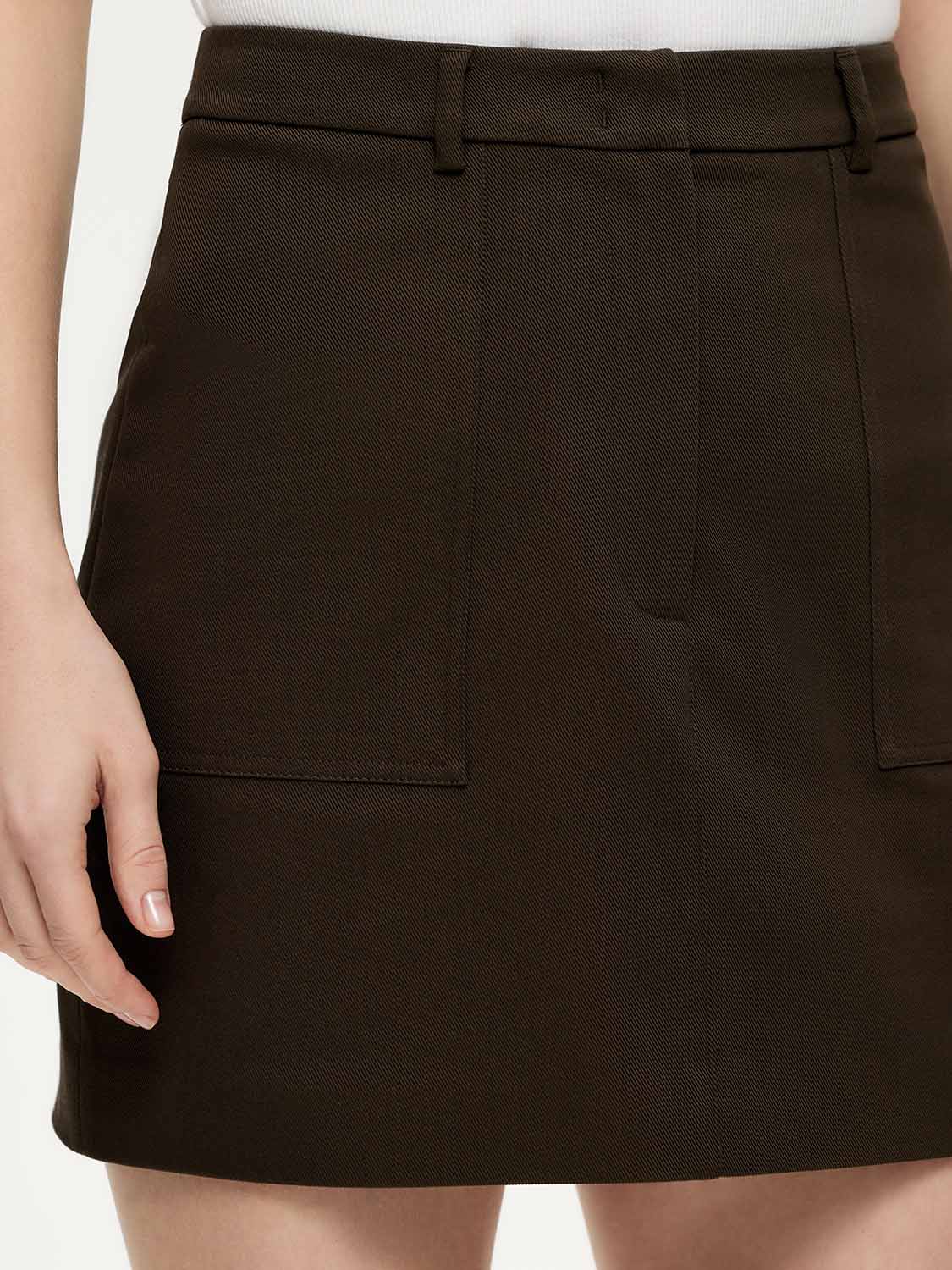 Юбка мини А-силуэта с накладными карманами спереди сшита из плотного и эластичного хлопка. Застежка на молнию. Юбка с тактильно приятной вискозной подкладкой, шлевками для ремней и вытачками для безупречной посадки. Глубокий насыщенный оттенок легко миксуется с базовыми цветами. Надевайте с футболками, кожаной курткой и лоферами или водолазками, жакетами и высокими сапогами. На модели размер S. Параметры модели: рост 175, 80-63-89.
