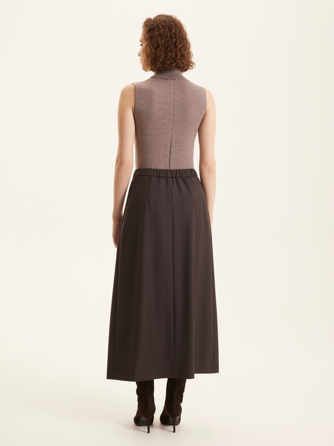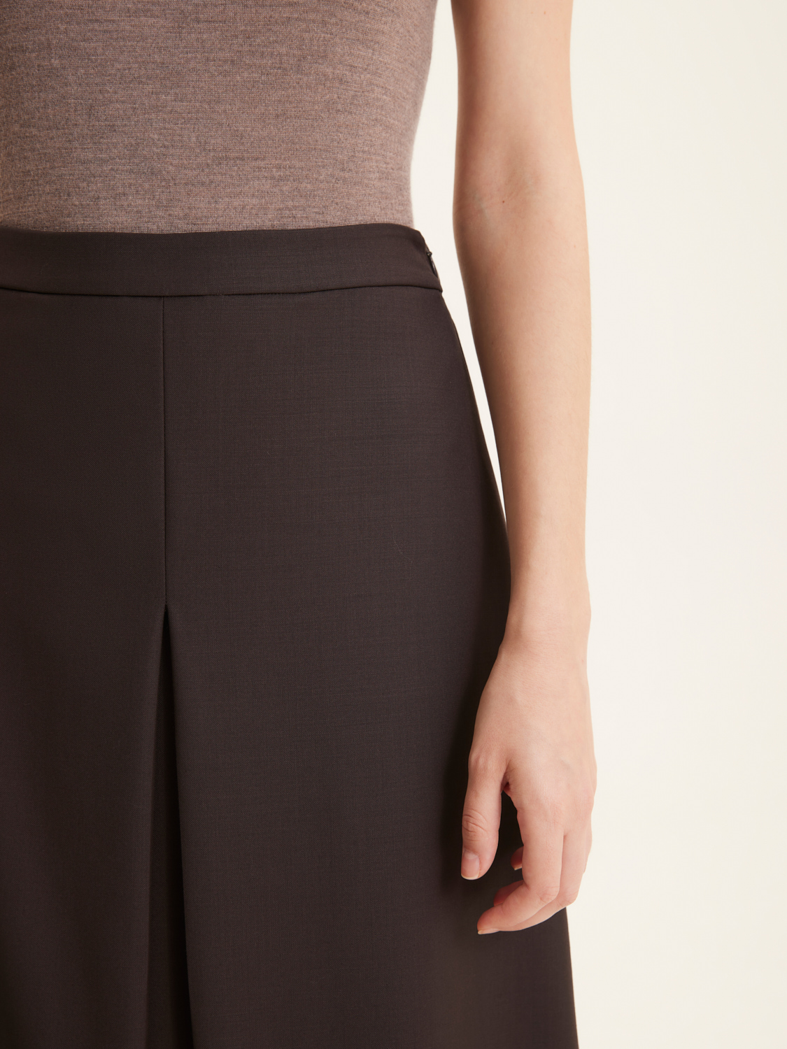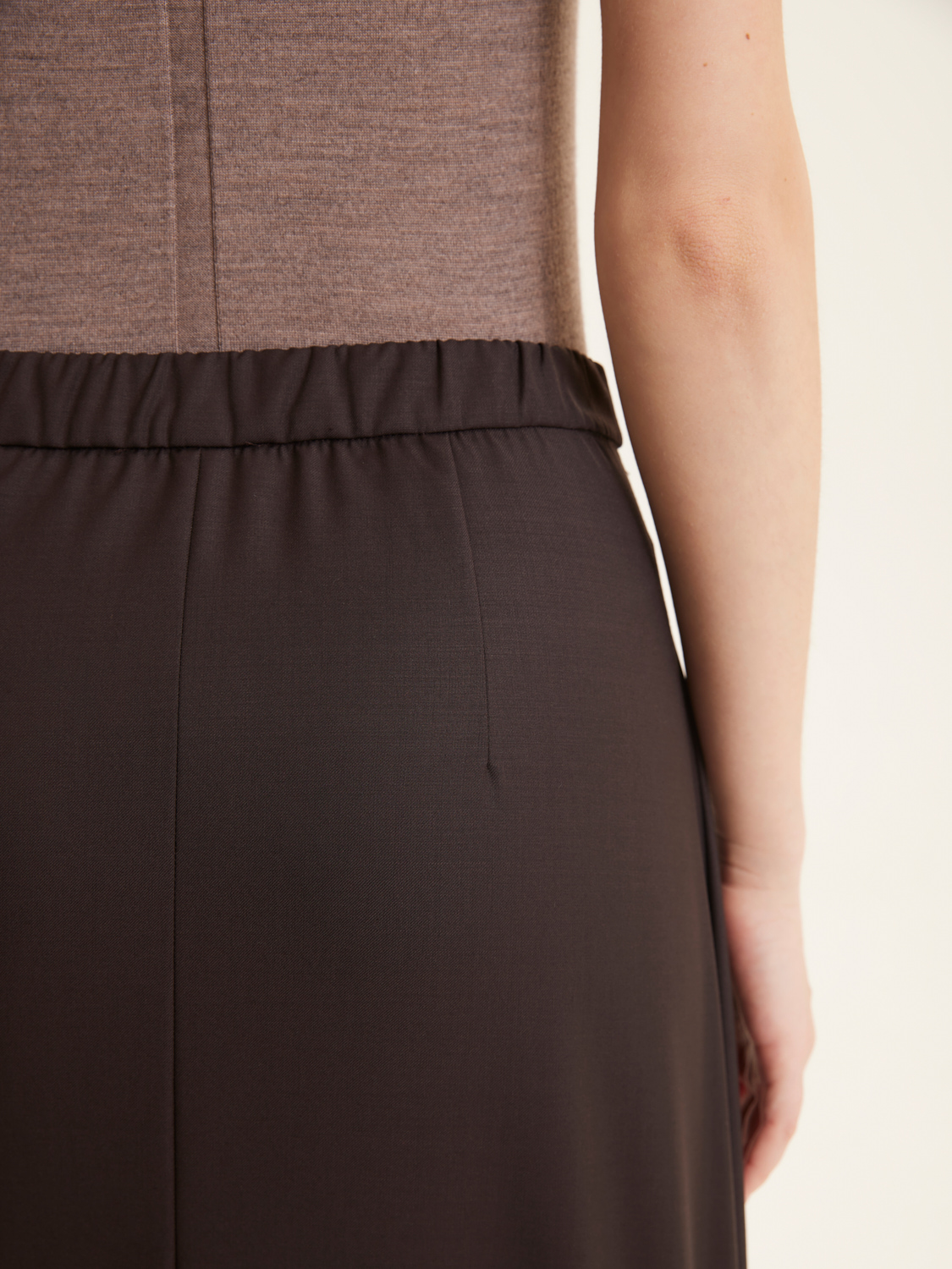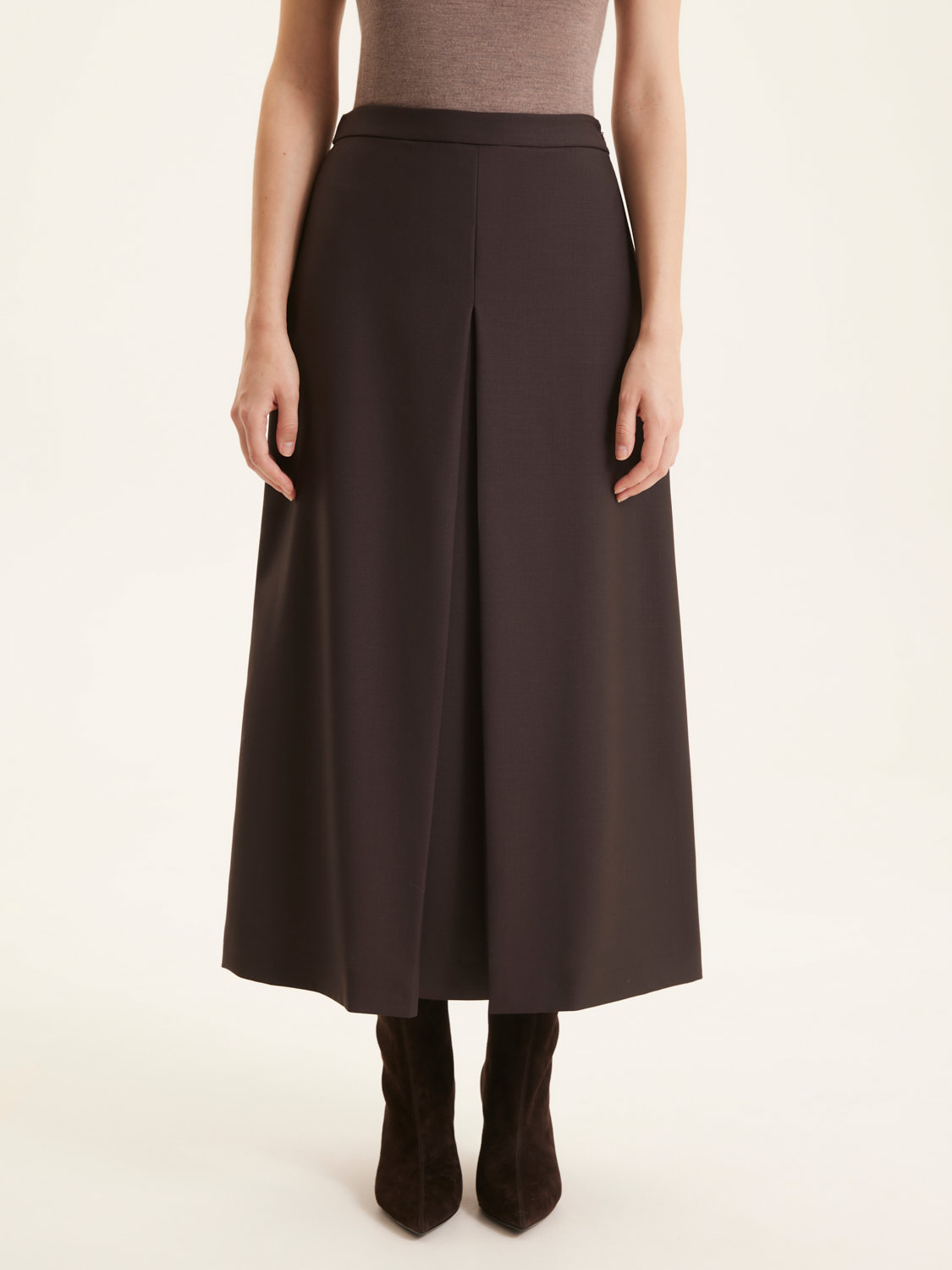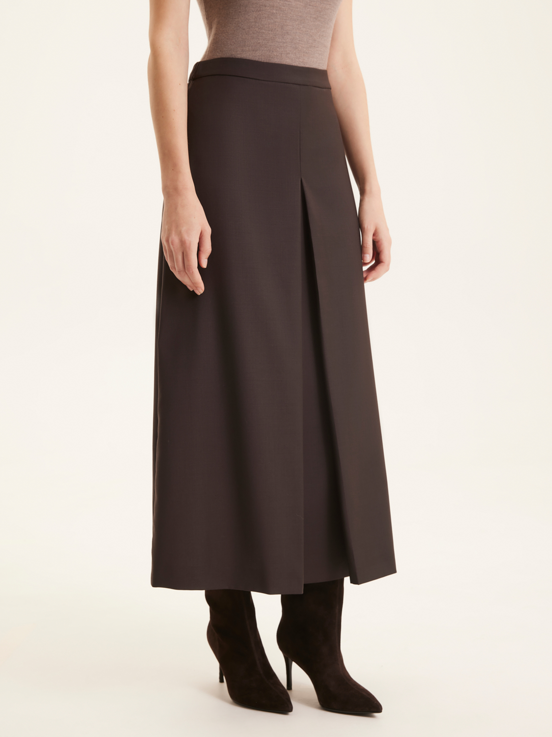 Шерстяная юбка миди со складкой — идеальное сочетание элегантности и комфорта. Благодаря продуманному крою, она великолепно садится по фигуре, а глубокая складка спереди добавляет динамичности и объема, создавая эффект легкости при движении. Ткань из шерсти обеспечивает комфорт и тепло, делая эту юбку идеальным выбором для холодного времени года. Универсальная длина миди подходит как для деловых встреч, так и для повседневных образов, легко комбинируясь с разными элементами гардероба. На модели размер S. Параметры модели: рост 175, 84-59-91.