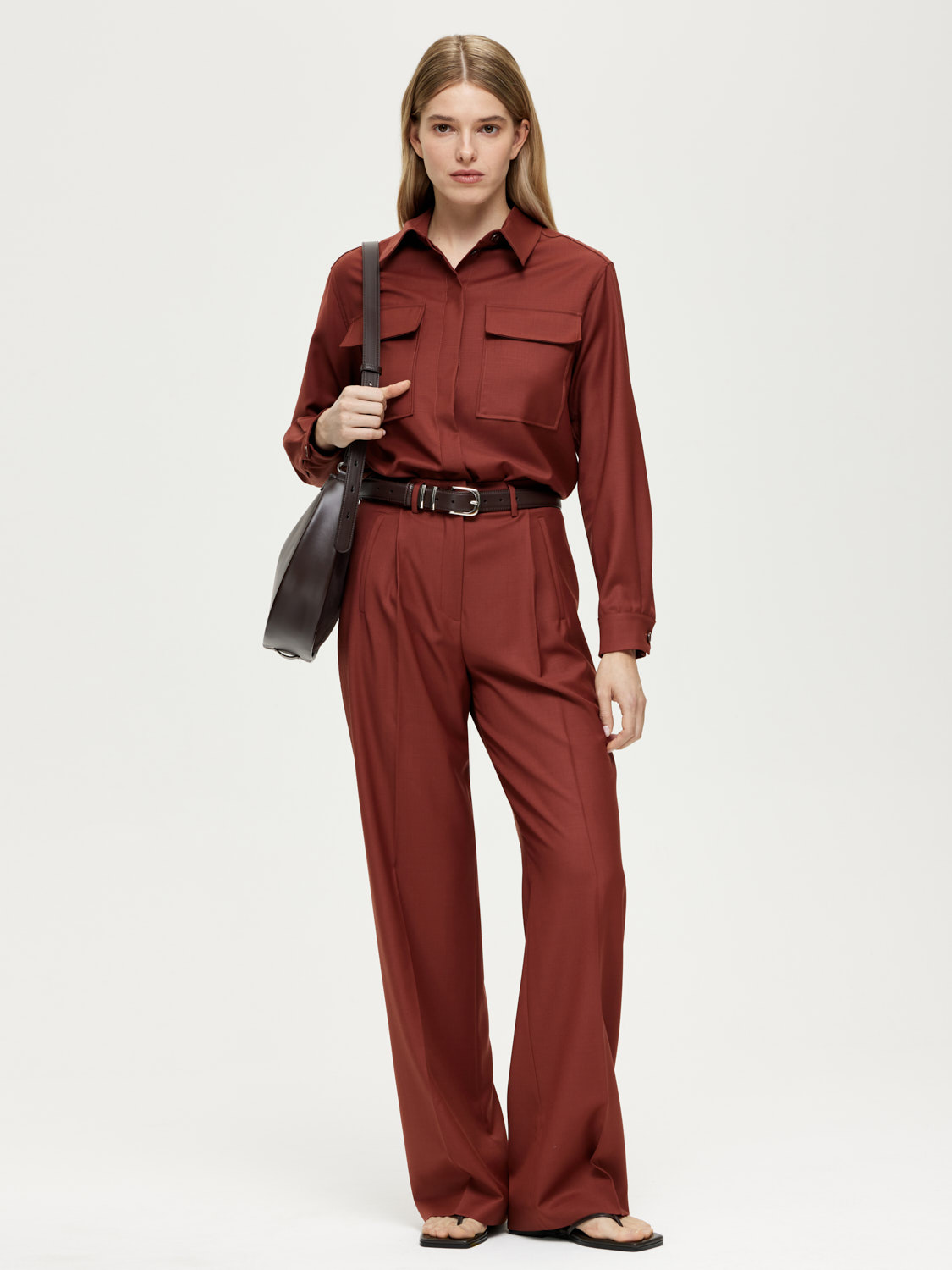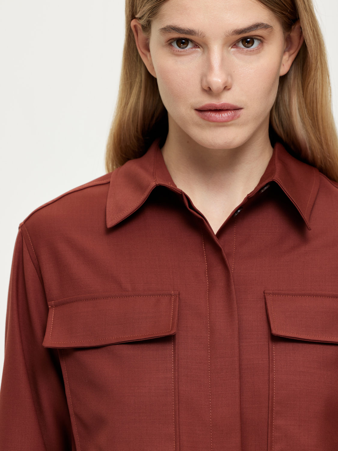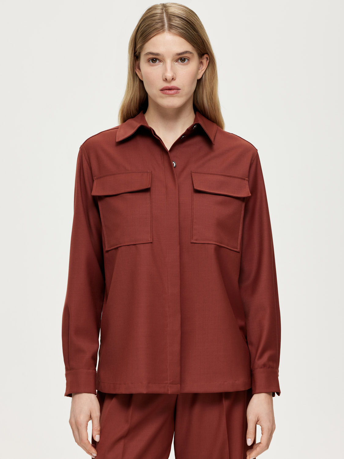 Рубашка свободного силуэта со слегка опущенной линией плеча и изящной супатной застежкой. Крупные накладные карманы с клапанами. Благородный природный оттенок. Рубашка выполнена из плотной и мягкой костюмной шерсти, хорошо держащей форму. Этот натуральный материал отлично пропускает воздух и обладает таким свойством как терморегуляция, поддерживая комфортную для тела температуру. Сочетайте с парными брюками, джинсами и шортами. Создавайте монохромные и контрастные образы. На модели размер S. Параметры модели: рост 174, 86-63-90.