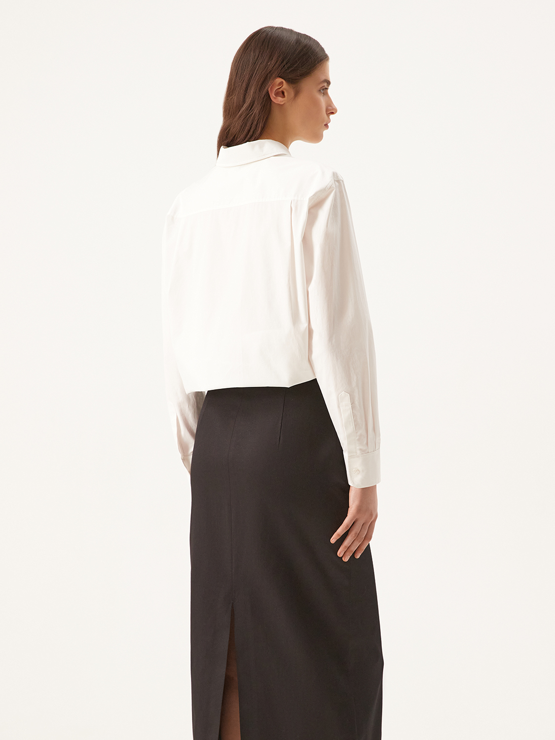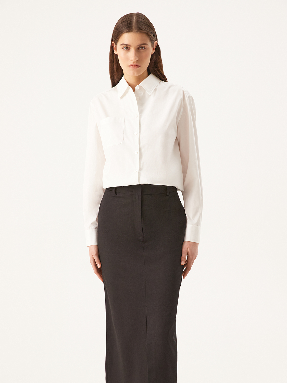Объемная лаконичная рубашка из 100% хлопка. Расслабленный силуэт, аккуратный отложной воротник, застежка на пуговицы, спущенное плечо. Накладной карман на груди и две складки на спине. Плотный натуральный материал хорошо пропускает воздух и держит форму. Сочетайте с юбками миди, брюками, денимом и шортами. На модели размер S. Параметры модели: рост 175, 80-60-90.