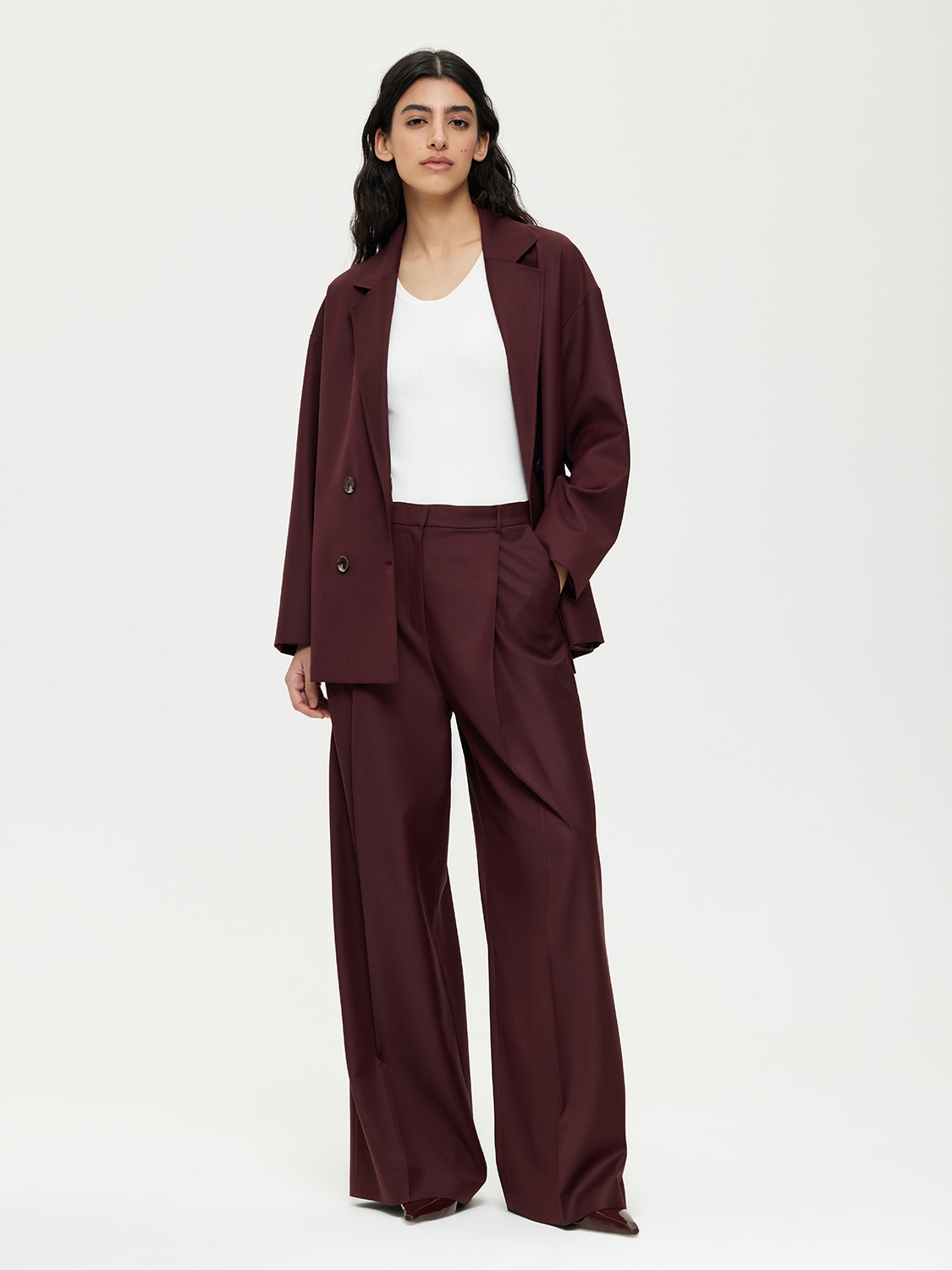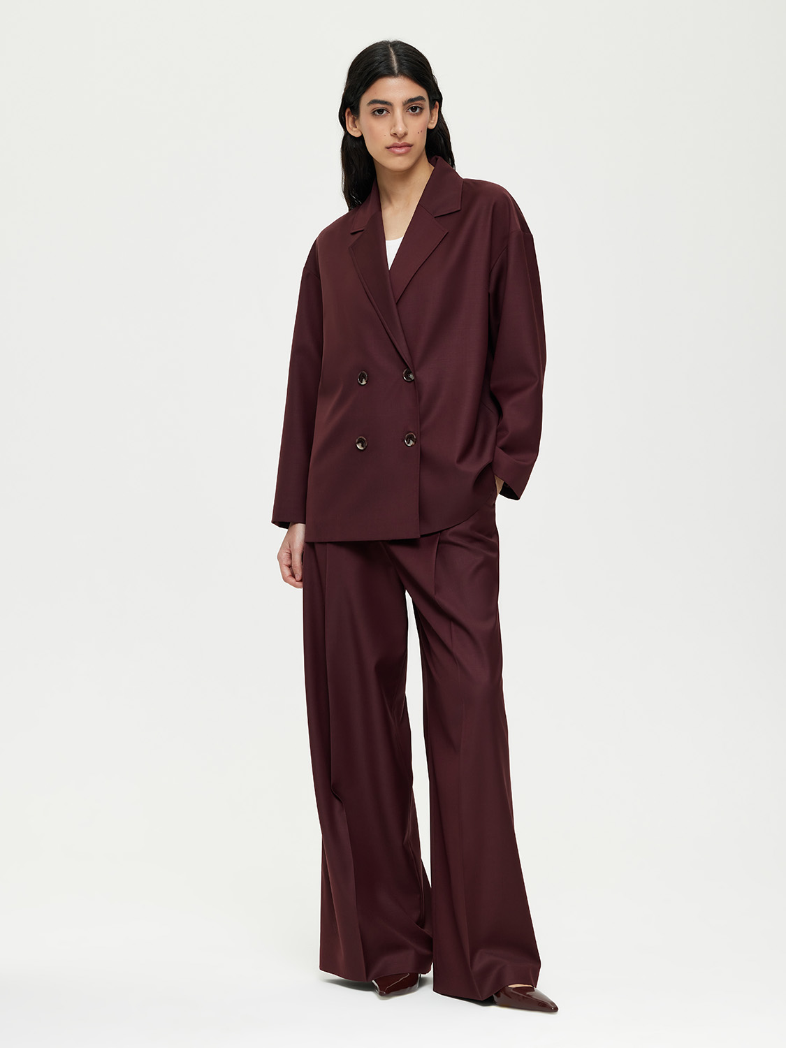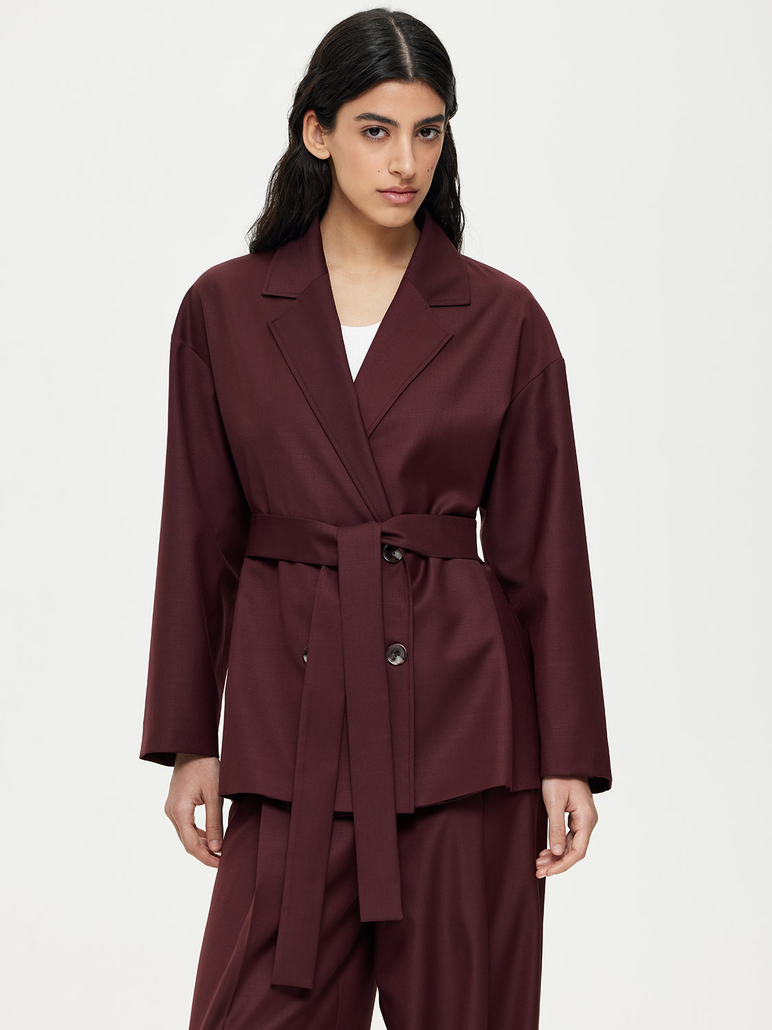 Расслабленный двубортный жакет. С опущенной линией плеча и трендовыми лацканами. В комплекте идет съемный пояс-лента, с помощью которого можно создать приталенный силуэт. Жакет выполнен из костюмной ткани с натуральной шерстью в основе. Такой материал практичный в носке, долго сохраняет презентабельный внешний вид. К тому же, шерсть обладает особым микроклиматом, благодаря которому в жакете будет комфортно находится даже в теплую погоду. Жакет на подкладке. Комбинируйте с парными брюками, джинсами и шортами. На модели размер S. Параметры модели: рост 177, 81-61-92.
