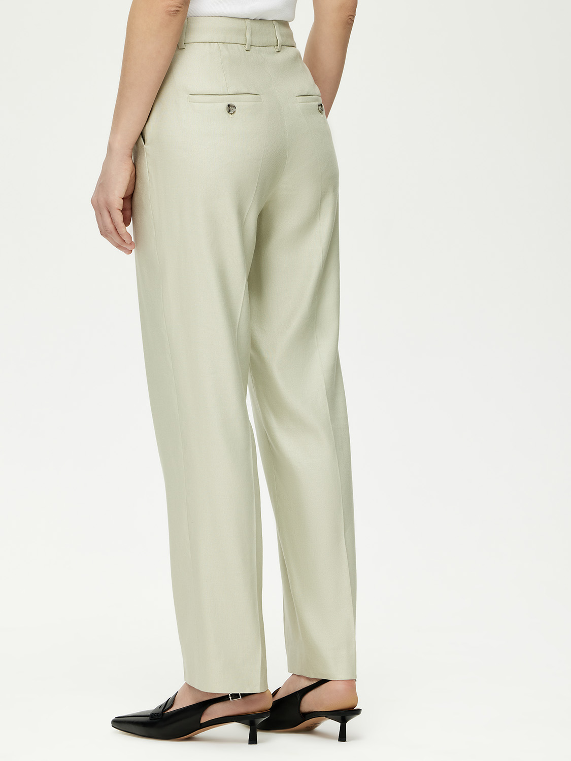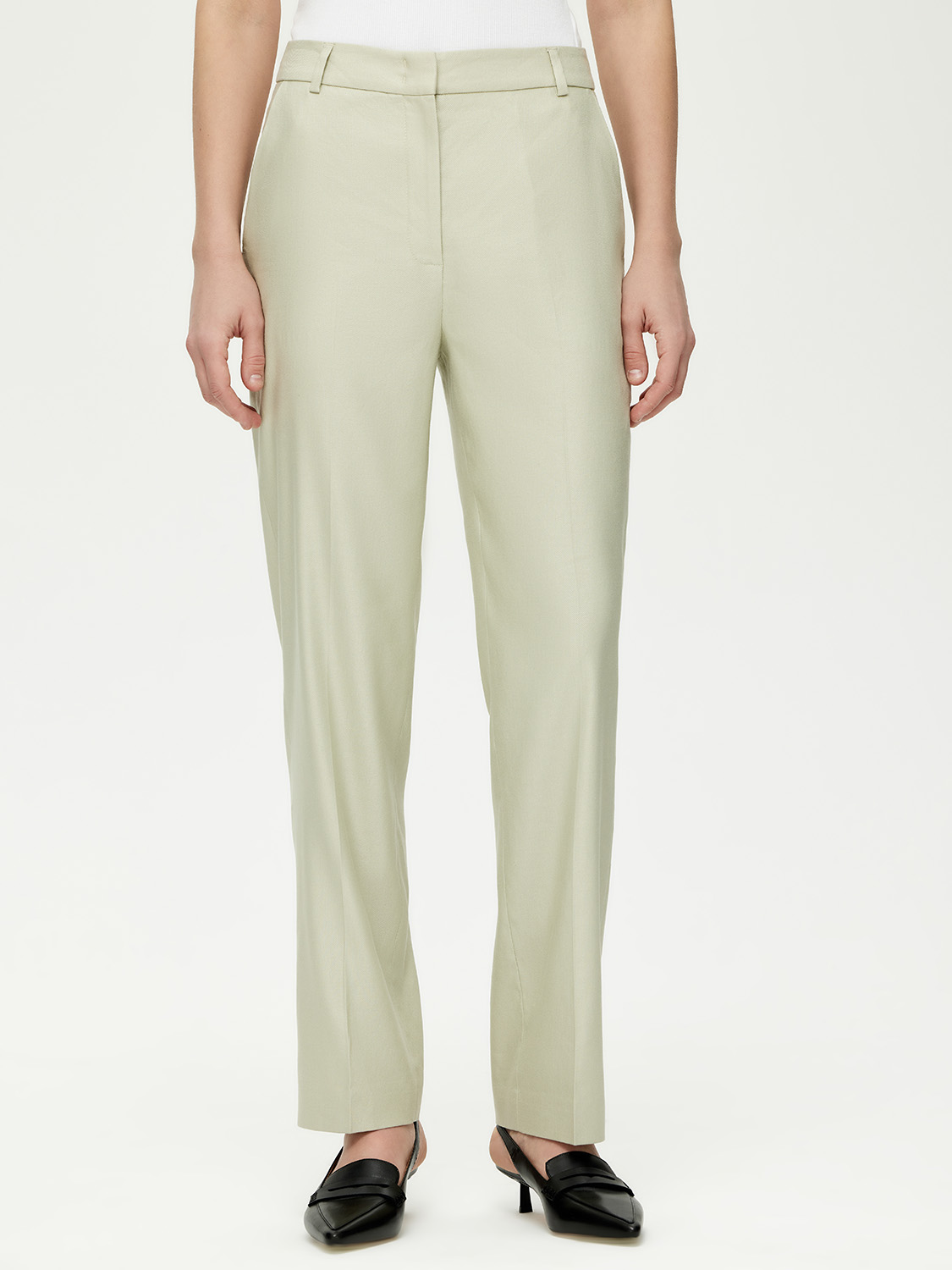 Лаконичные базовые брюки, слегка зауженные книзу, станут основой повседневных комплектов. Комфортная средняя посадка, боковые карманы и стрелки. Брюки со шлевками и на подкладке. Выполнены из смесового льняного полотна, благодаря которому брюки легкие, приятные к телу и меньше мнутся. Подойдут для разных типов фигур. Будут уместны на работе и отдыхе. Комбинируйте с парным жилетом, футболками, блузами и рубашками. На модели размер S. Параметры модели: рост 177, 80-59-89.