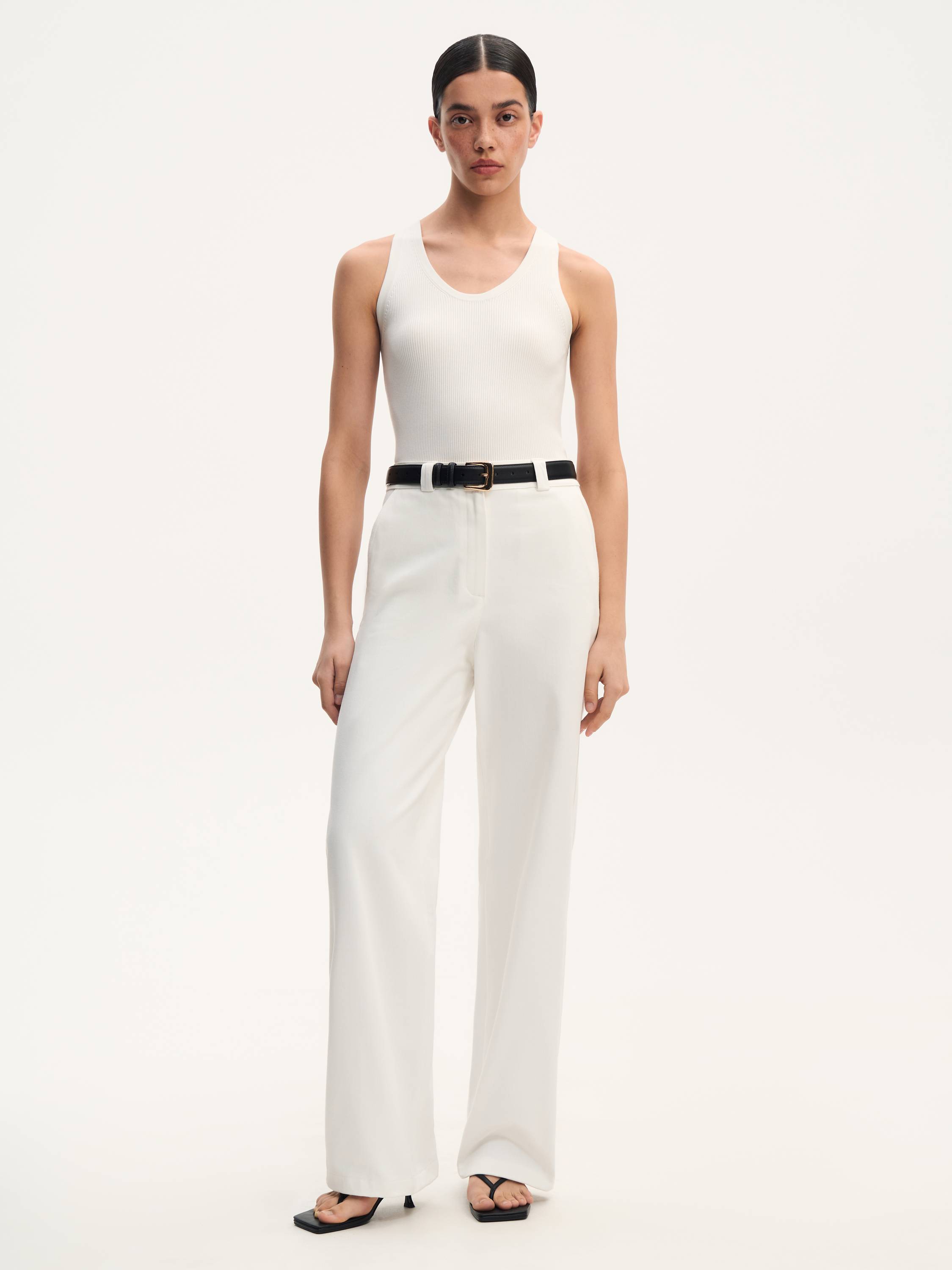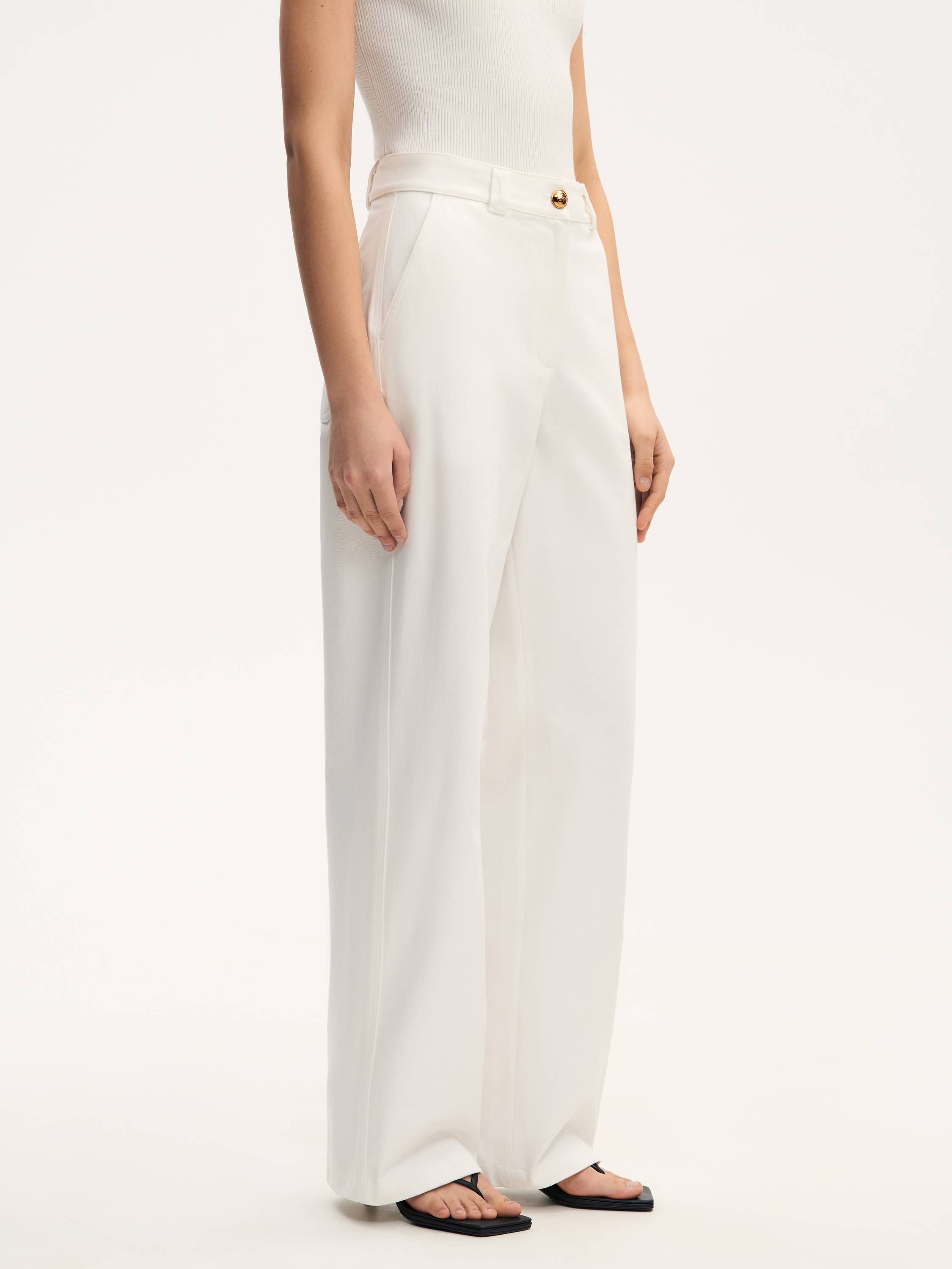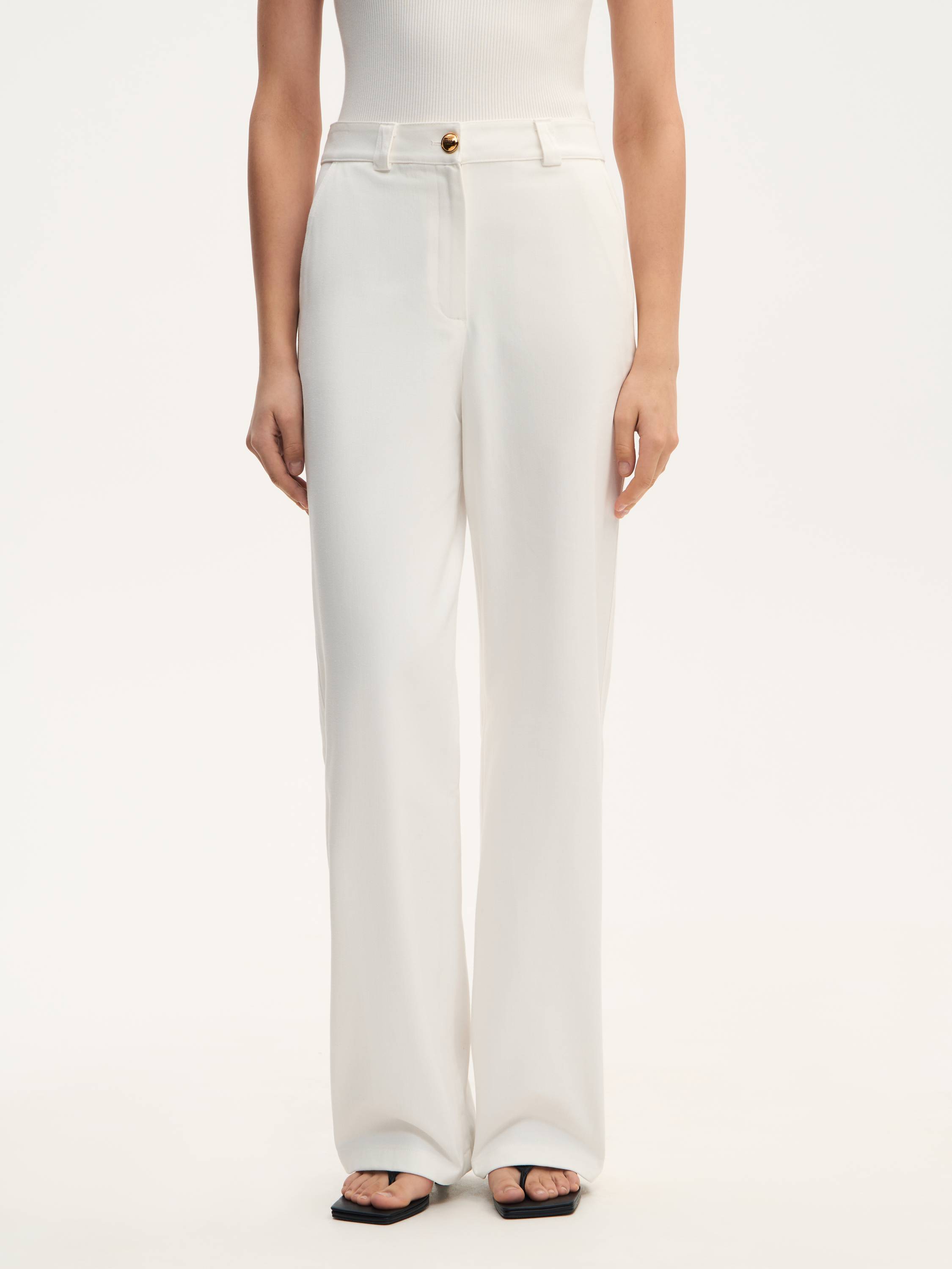 Джинсы прямого кроя выполнены из хлопкового денима плотностью 12,0 Oz с добавлением района. Натуральное волокно обеспечивает прочность и комфорт в носке, а район придает ткани мягкость и легкую струящуюся посадку. Модель с высокой посадкой, полноценной длиной и акцентной застежкой на пуговицу дополнена поясом со шлевками и накладными карманами сзади. Чистый силуэт без лишнего декора делает джинсы универсальной основой гардероба — они легко сочетаются с топами, блузами или жакетами в повседневных и более собранных образах. Посадка: High Rise. Длина: Full Length.