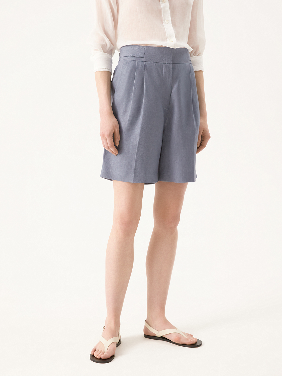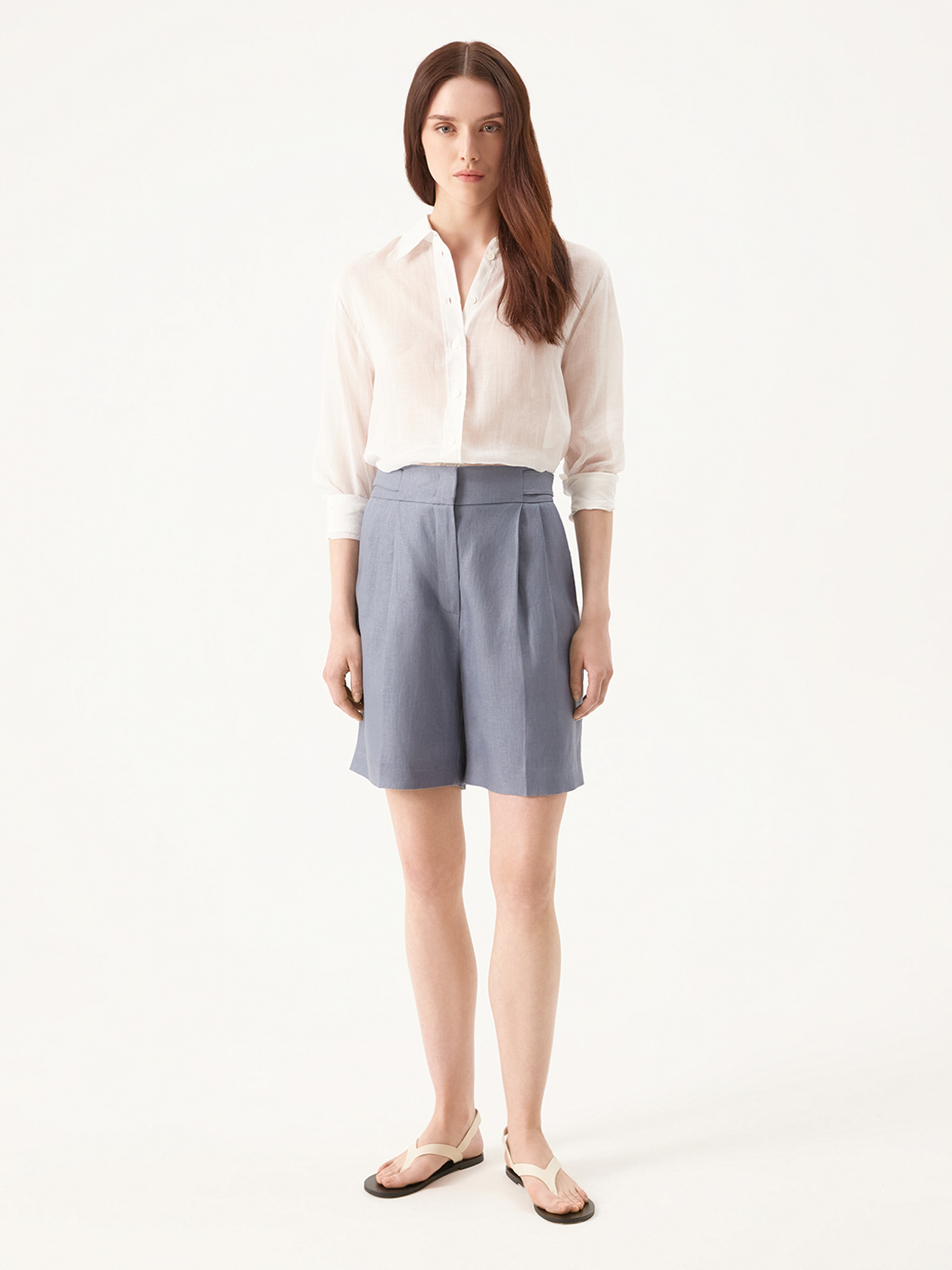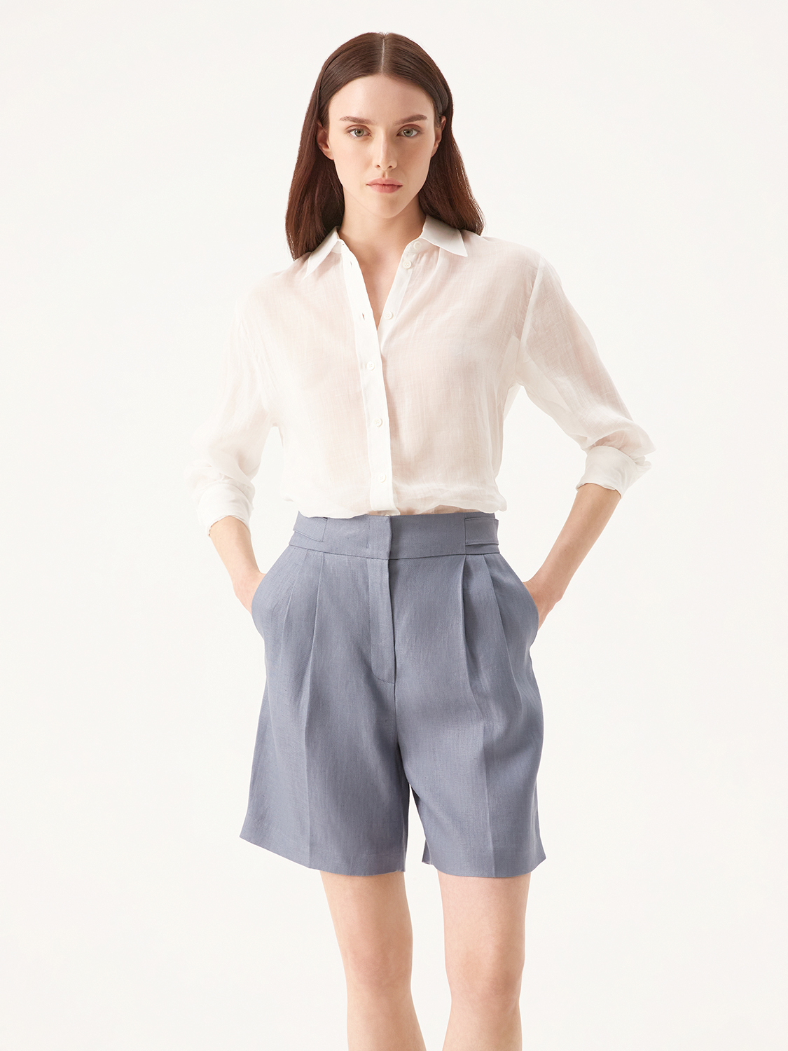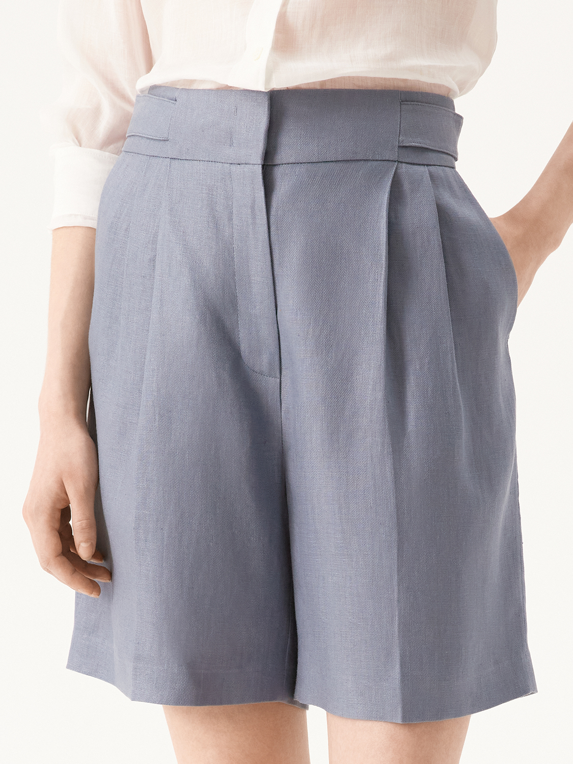 Льняные шорты со стрелками – основа для летних повседневных образов. Удобные боковые карманы, комфортная, слегка заниженная посадка и универсальная длина. Свободный крой, защипы и стрелки визуально вытягивают силуэт и делают стройнее. Выполнены из легкого, дышащего льна, который приятно охлаждает в жару и держит форму. Для удобства носки мы добавили мягкую вискозную подкладку. Комбинируйте с парным жакетом, кроп-топом, рубашкой или футболкой. На модели на рземр S. Параметры модели: рост 176, 81-63-89.