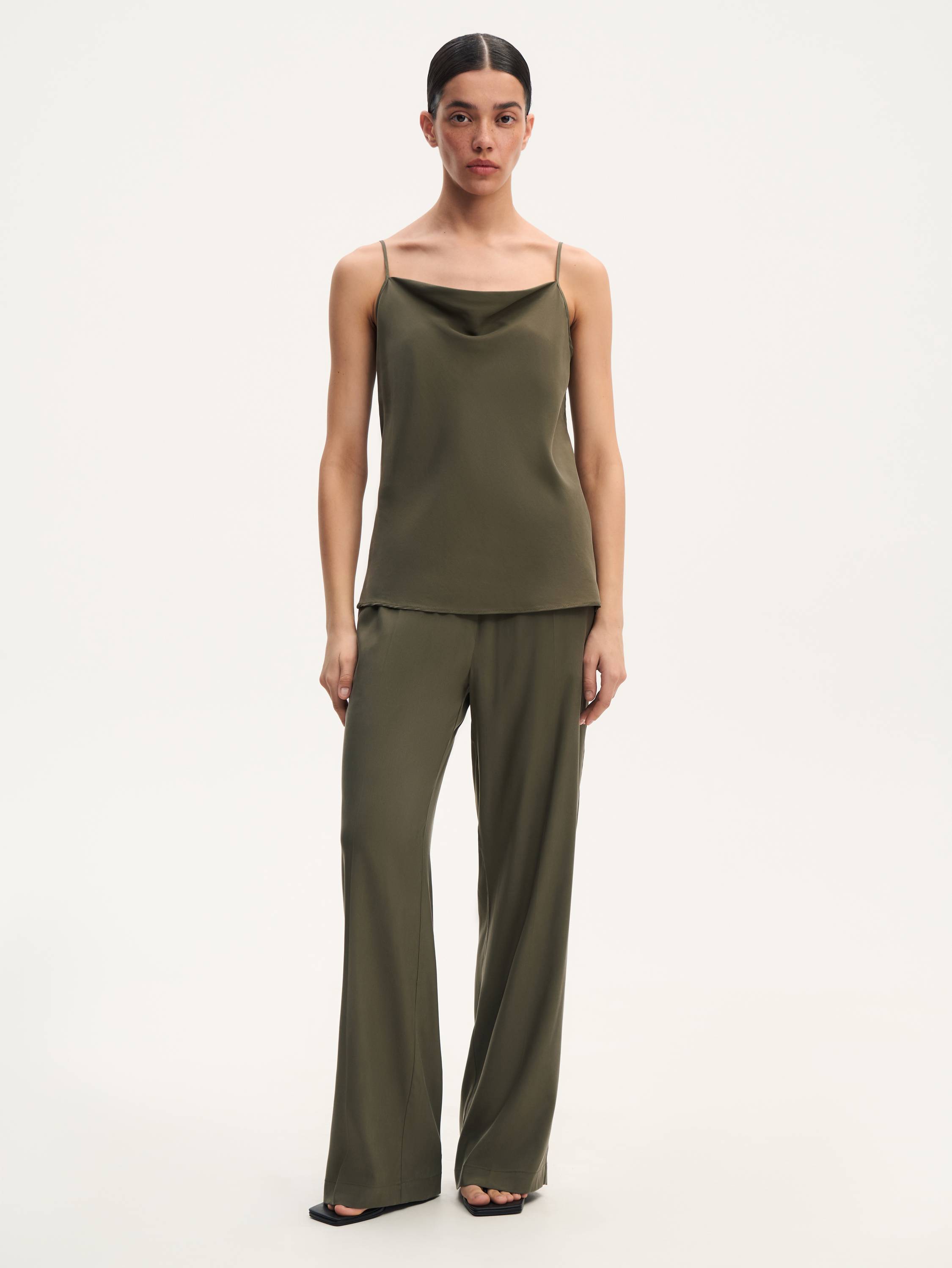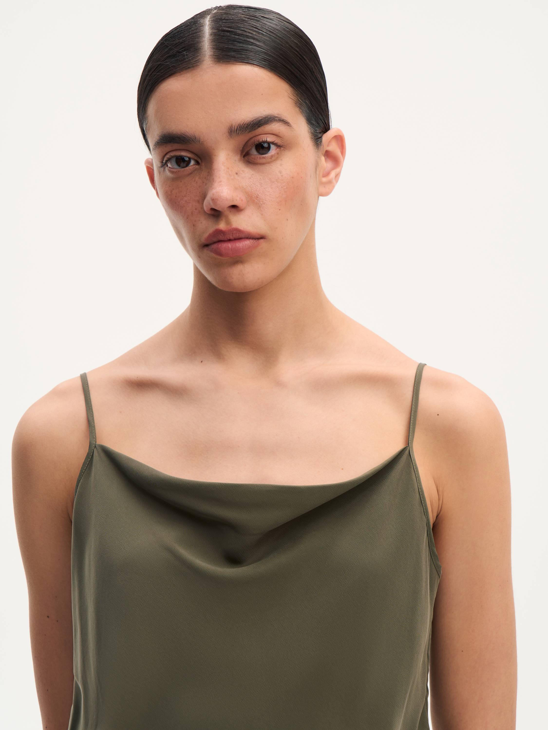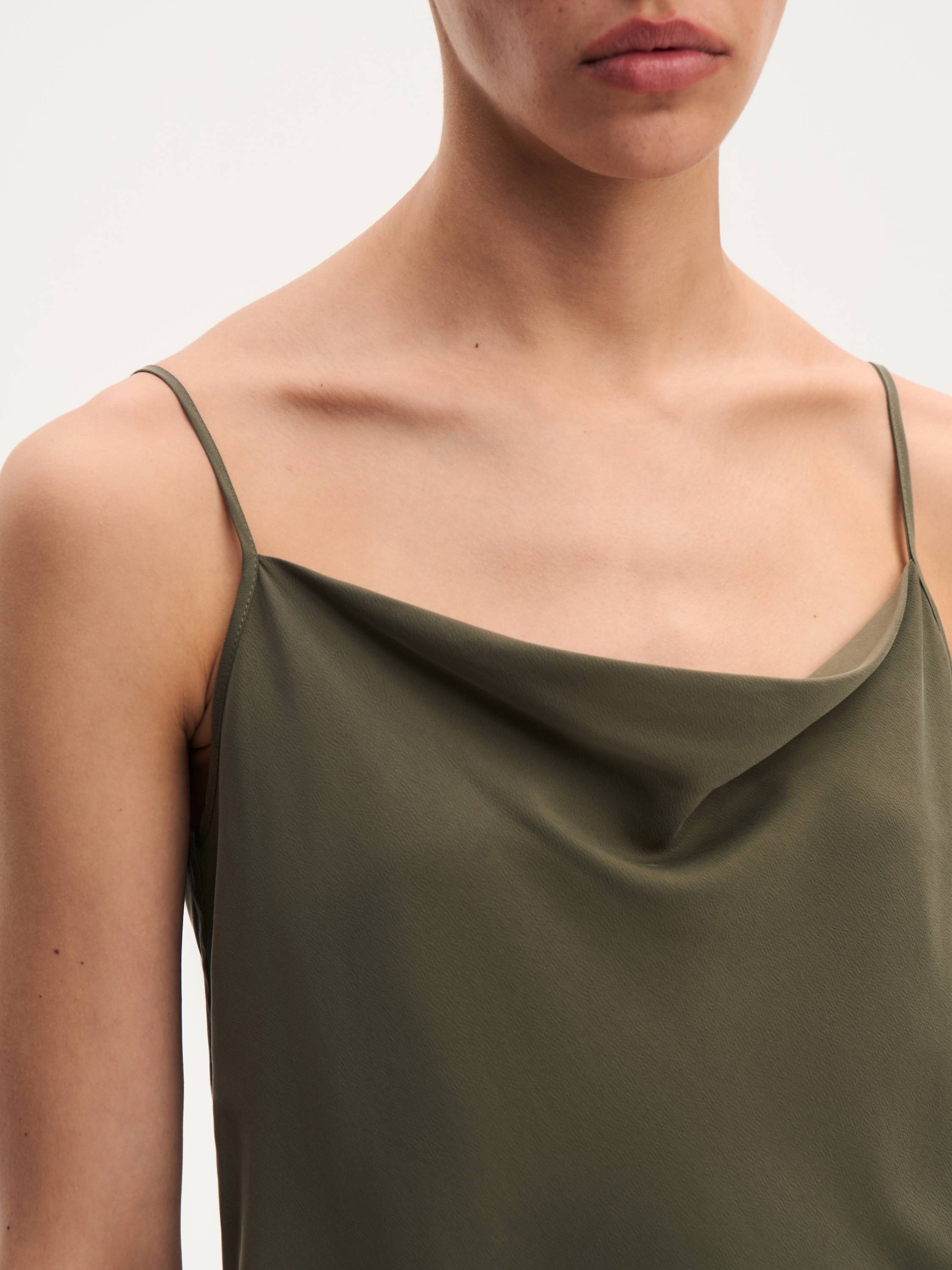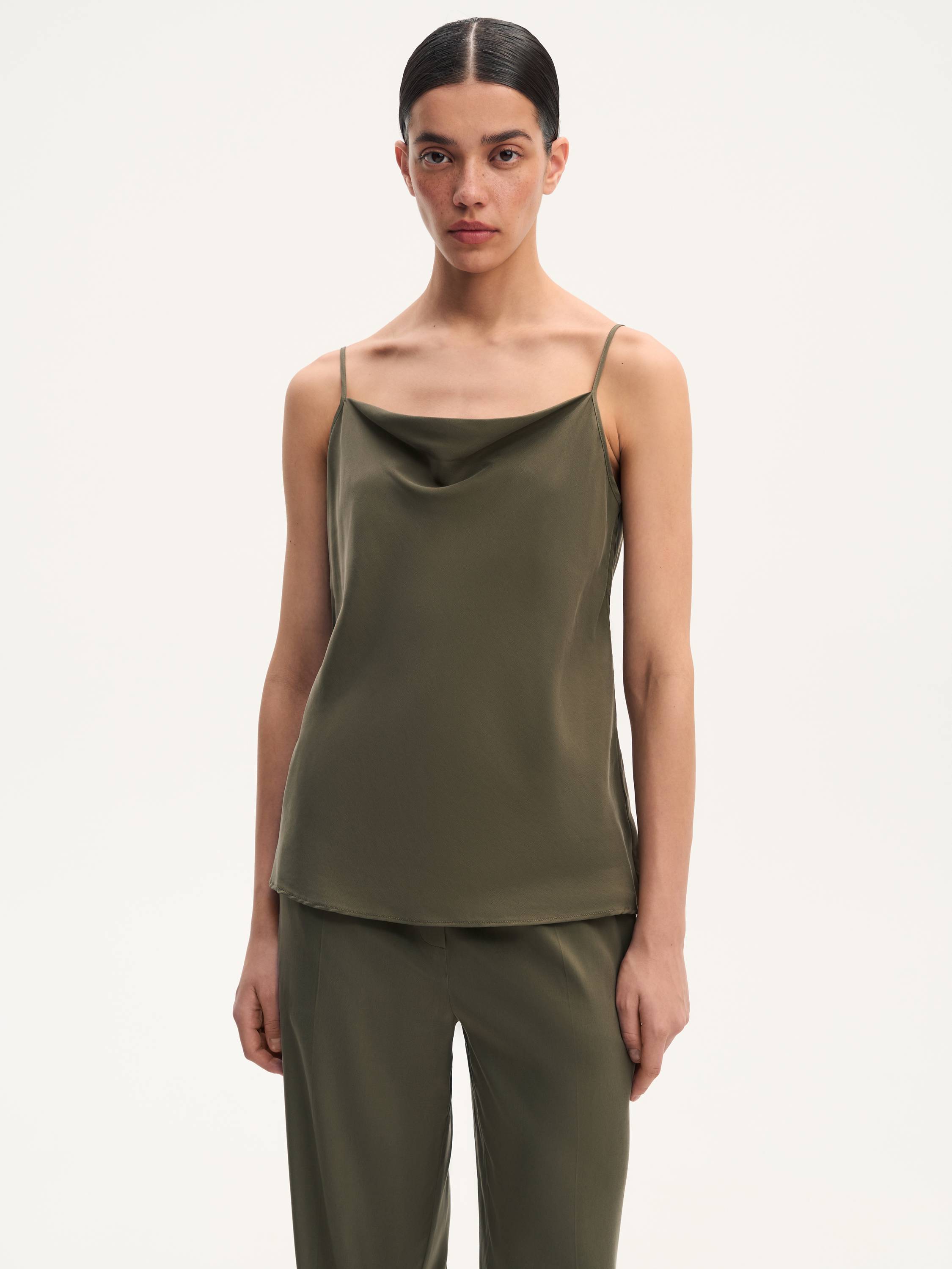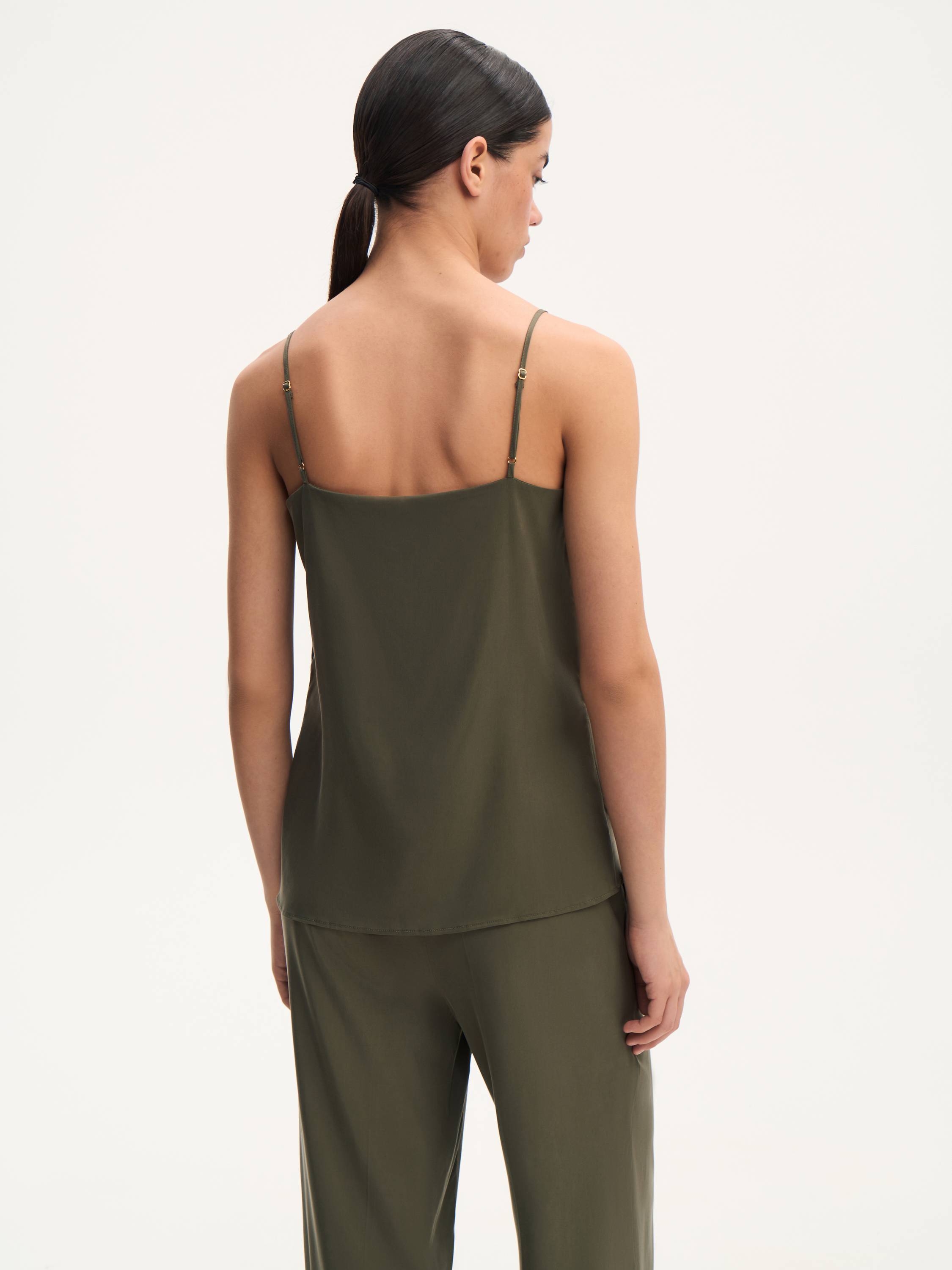 Топ на бретелях в бельевом стиле — утонченная и женственная модель, созданная для легких и элегантных образов. Лаконичный крой дополнен мягким драпированным вырезом, который придает образу изысканность. Тонкие регулируемые бретели позволяют адаптировать посадку под индивидуальный комфорт. Легкая, струящаяся ткань красиво ложится по фигуре, создавая эффект мягкого свечения. Этот топ станет универсальной основой гардероба, сочетаясь с классическими жакетами, объемными кардиганами или структурированными брюками для создания гармоничных и стильных комплектов.
