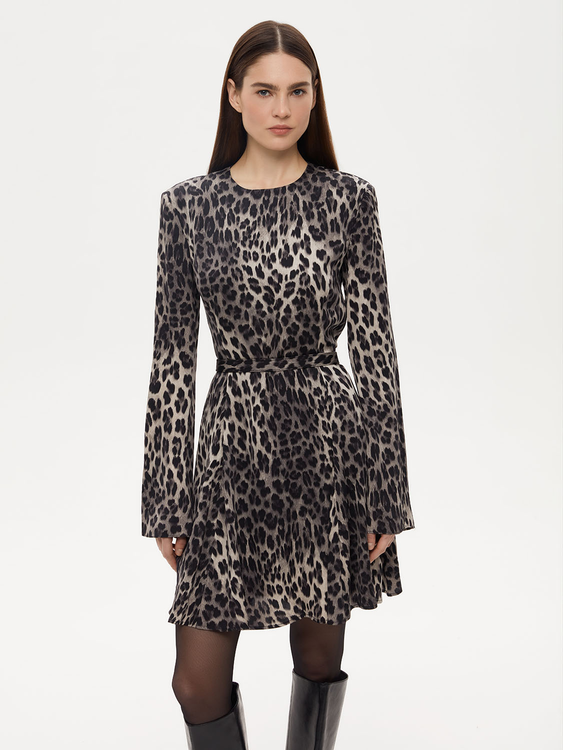 Платье мини с анималистическим принтом и открытой спинкой. Длинные рукава и пояс на талии подчеркивают женственность и утонченность фигуры, ткань из 100% бамбуковой ткани гипоаллергенна, обладает антибактериальными свойствами и позволяет коже дышать. Платье станет отличным выбором как для вечернего выхода, так и для повседневной носки. Сочетается с туфлями на каблуке или босоножками, а также может быть дополнено аксессуарами, например, клатчем или украшениями. На модели размер S. Параметры модели: рост 176, 84-60-89.
