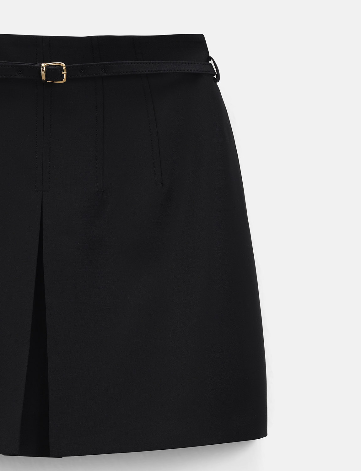 Юбка мини из натуральной шерсти со складками. Классический крой трапеция, шлевки с тонким ремнем, изящные складки. Ткань из шерсти приятна телу, в ней будет тепло и комфортно в демисезон. Дополнить образ можно трикотажным топом или блузкой, жакетом, лоферами или ботильонами. Юбка подойдет для работы и офиса, дополнит повседневные образы. На модели размер S. Параметры модели: рост 179, 75-59-87.