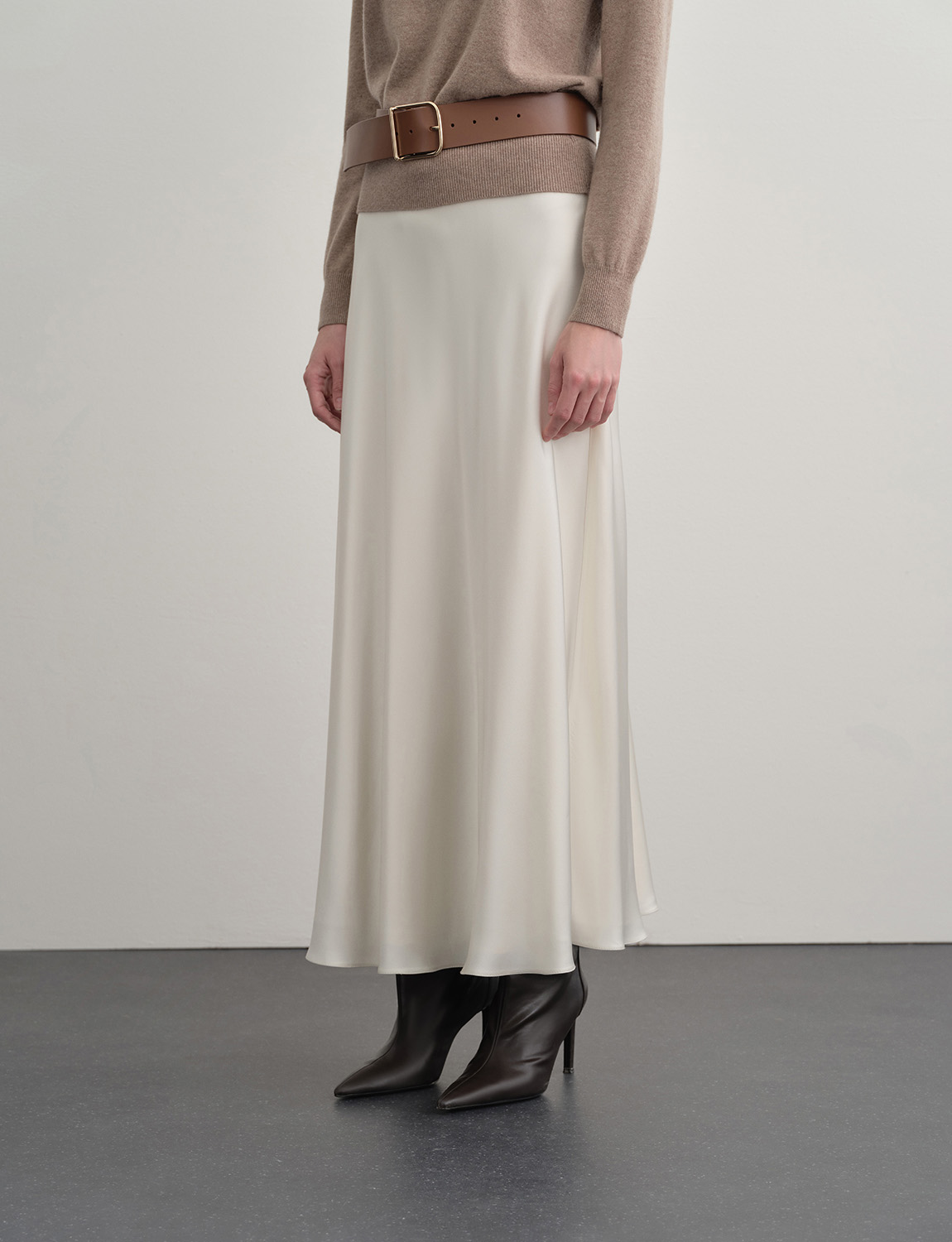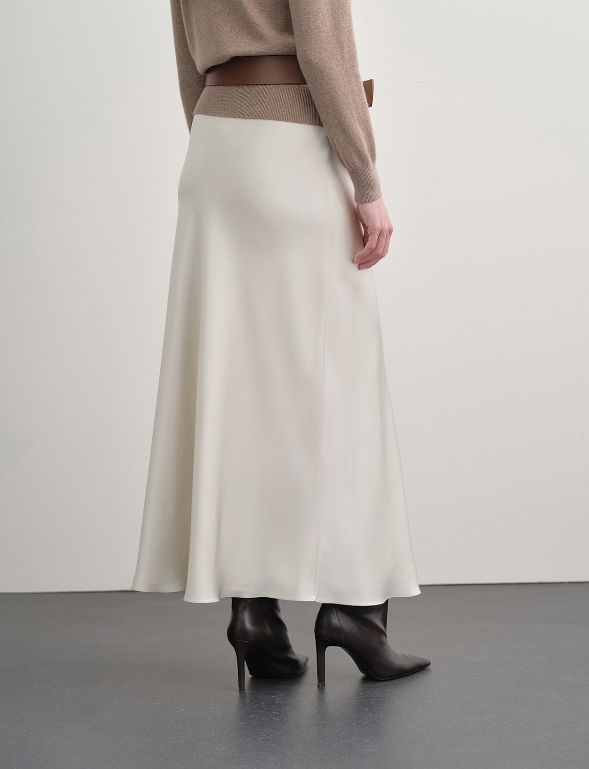 Струящаяся юбка макси из атласной вискозы. У юбки свободный крой, гладкая ткань с деликатным сиянием, внутри дышащая подкладка. Юбка миди сочетается с различными верхами - блузками и топами, свитерами и кардиганами. Ее можно носить на работу, на торжественные и вечерние мероприятия, дополнив туфлями на каблуке или сапогами, а также любимыми аксессуарами и украшениями. На модели размер S. Параметры модели: рост 174, 86-63-90.