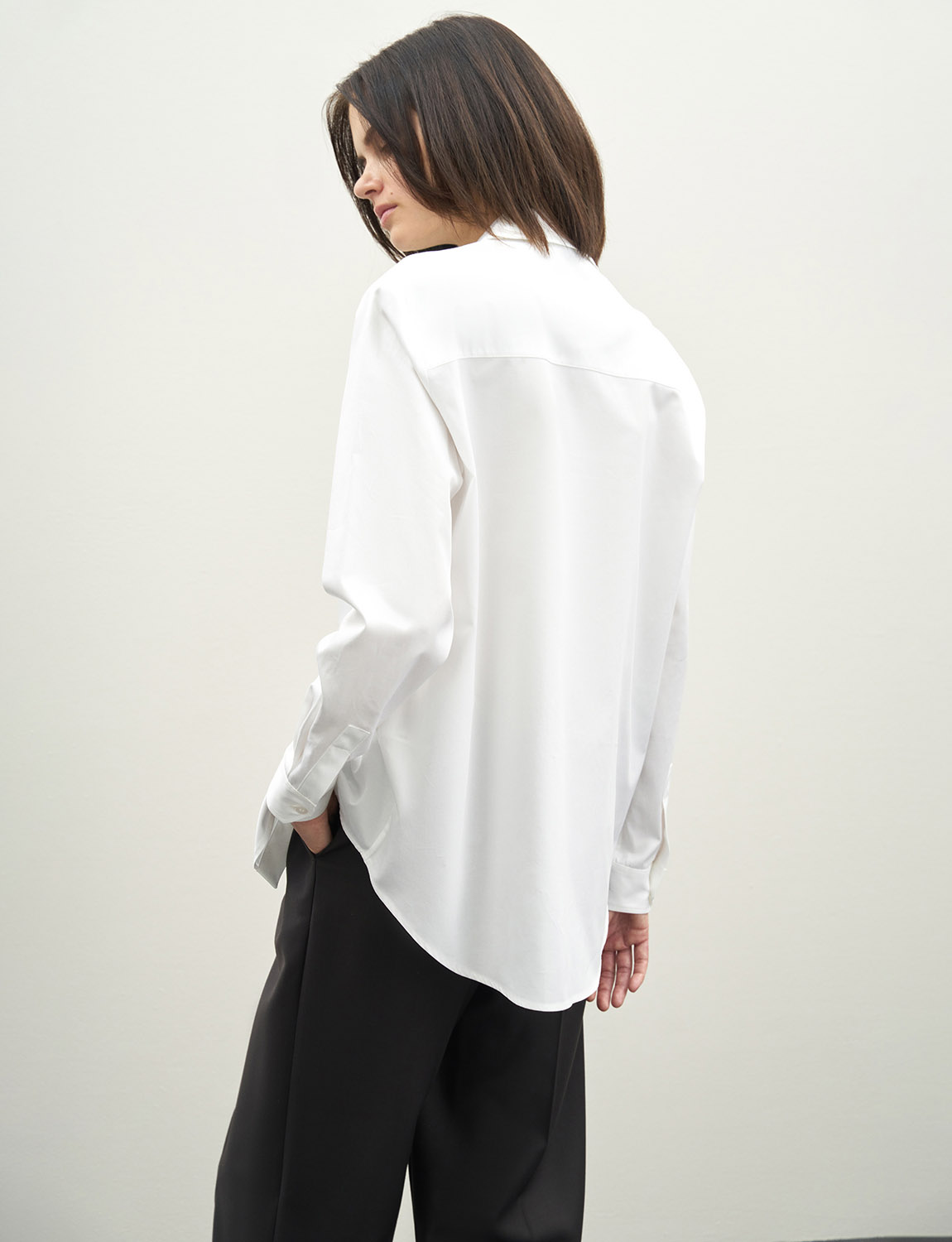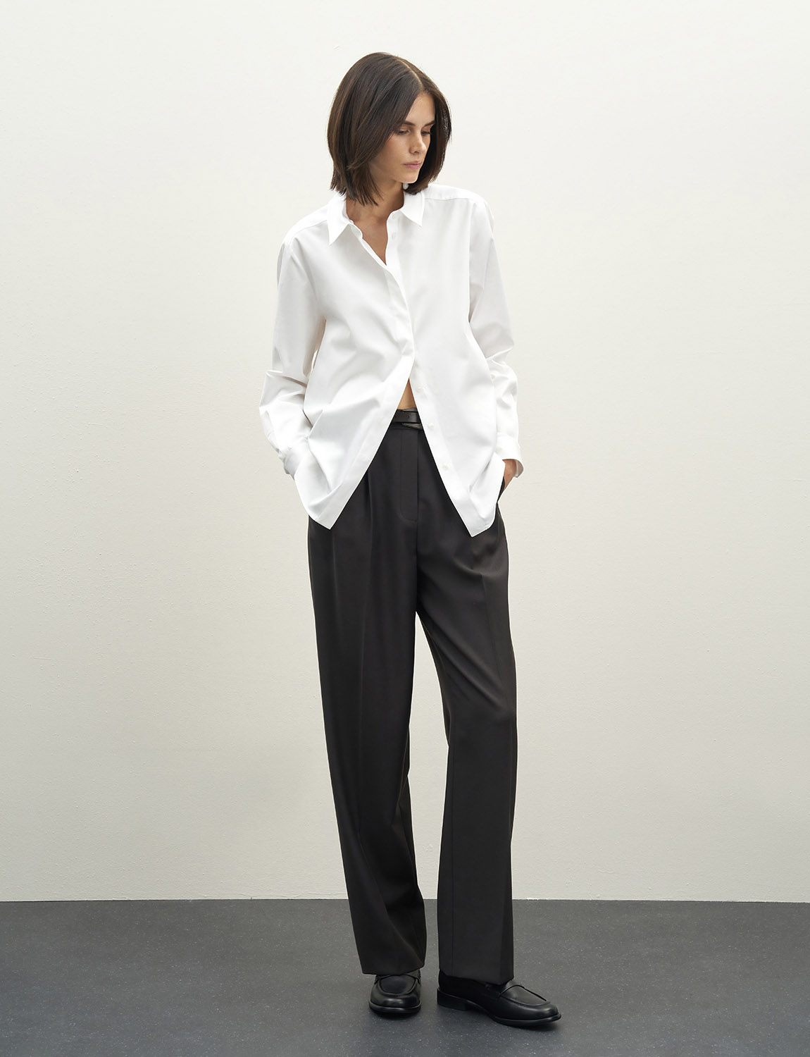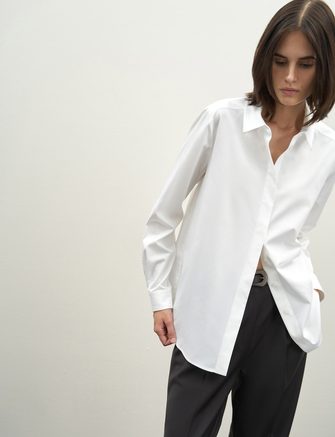 Базовая хлопковая рубашка оверсайз. Классический ворот, застежка на пуговицы со скрытой планкой, манжеты на рукавах. Благодаря натуральному составу ткани, рубашка приятна телу, свободно сидит по фигуре и подойдет под любой её тип. Стильно сочетается с кэжуал образами - джинсами, лоферами или кедами, а также с классическими брюками, юбками и жакетами. Универсальный и незаменимый вариант для работы и офиса, деловых встреч и повседневной жизни. На модели размер S. Параметры модели: рост 179, 75-59-87.