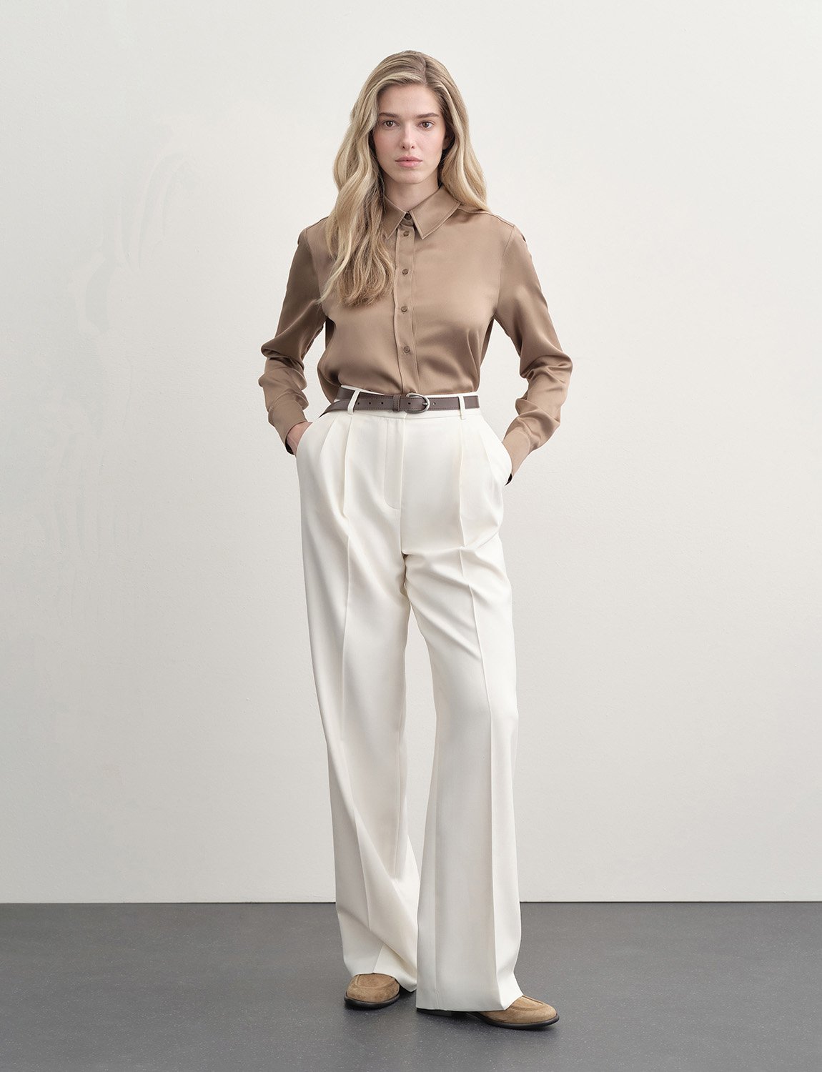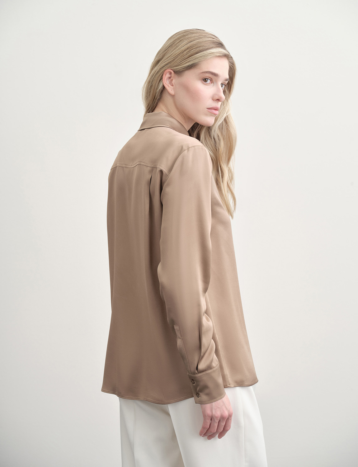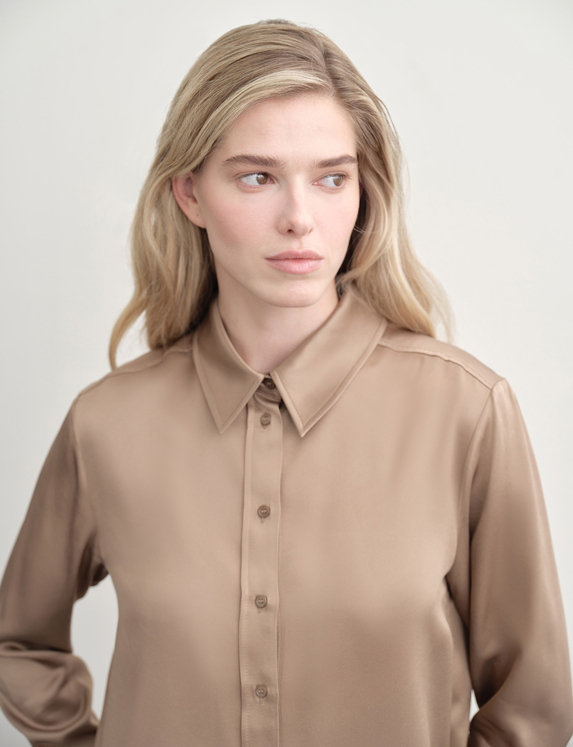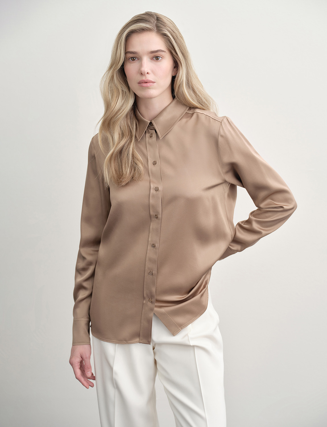 Элегантная атласная рубашка с гладким, сияющим материалом, прямого покроя. Подойдет как для официальных мероприятий, так и для повседневной носки. Ее можно сочетать с различными предметами гардероба: классическими брюками, джинсами, юбками. Рубашка будет отлично смотреться как заправленная, так и навыпуск. Ее можно носить на работу, на свидание, на прогулку или на вечеринку - она всегда будет выглядеть уместно и женственно. На модели размер S. Параметры модели: рост 179, 75-59-87.