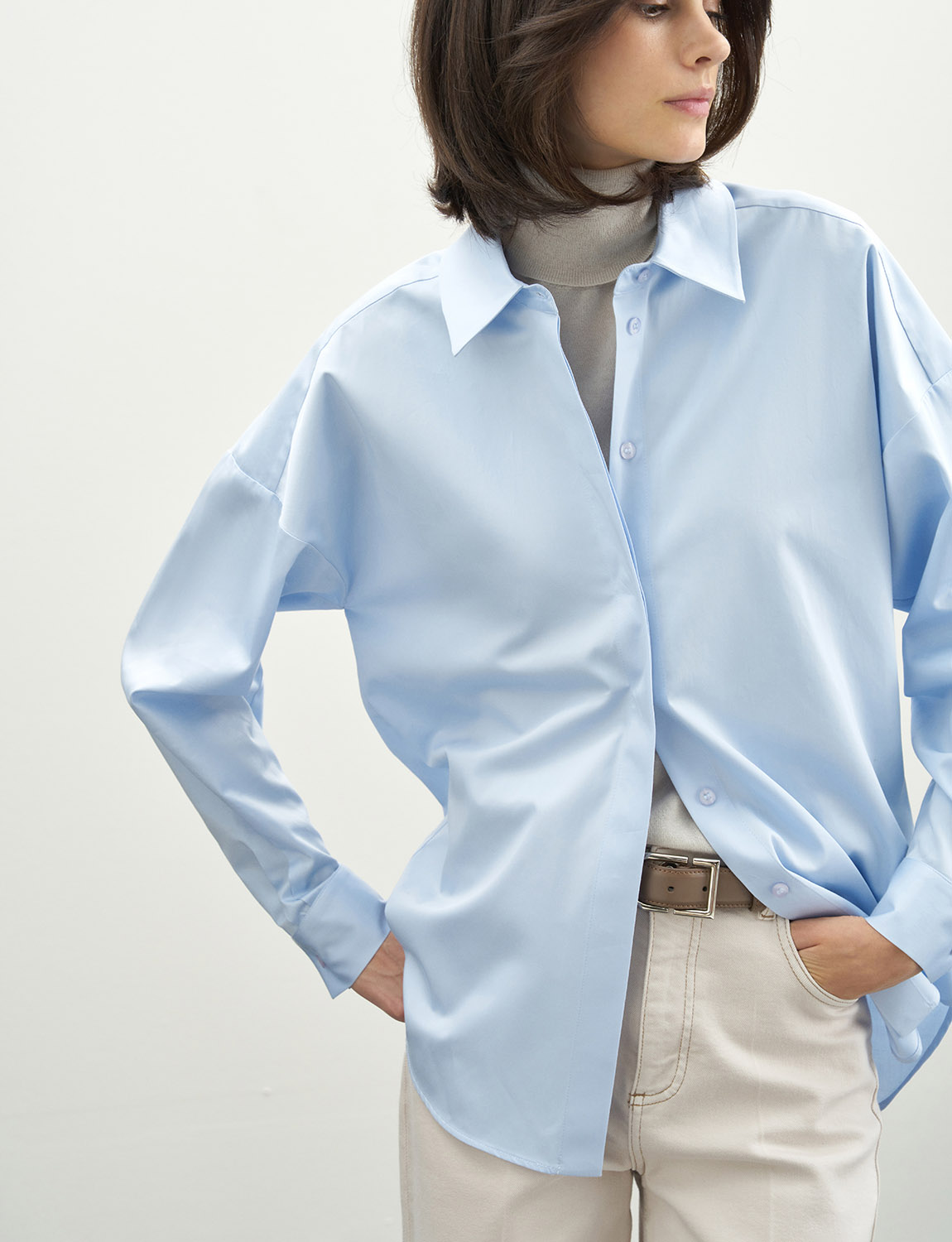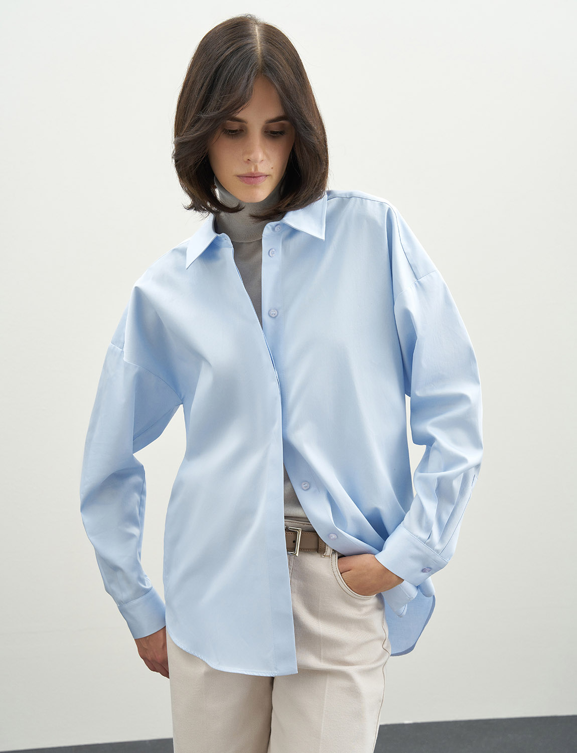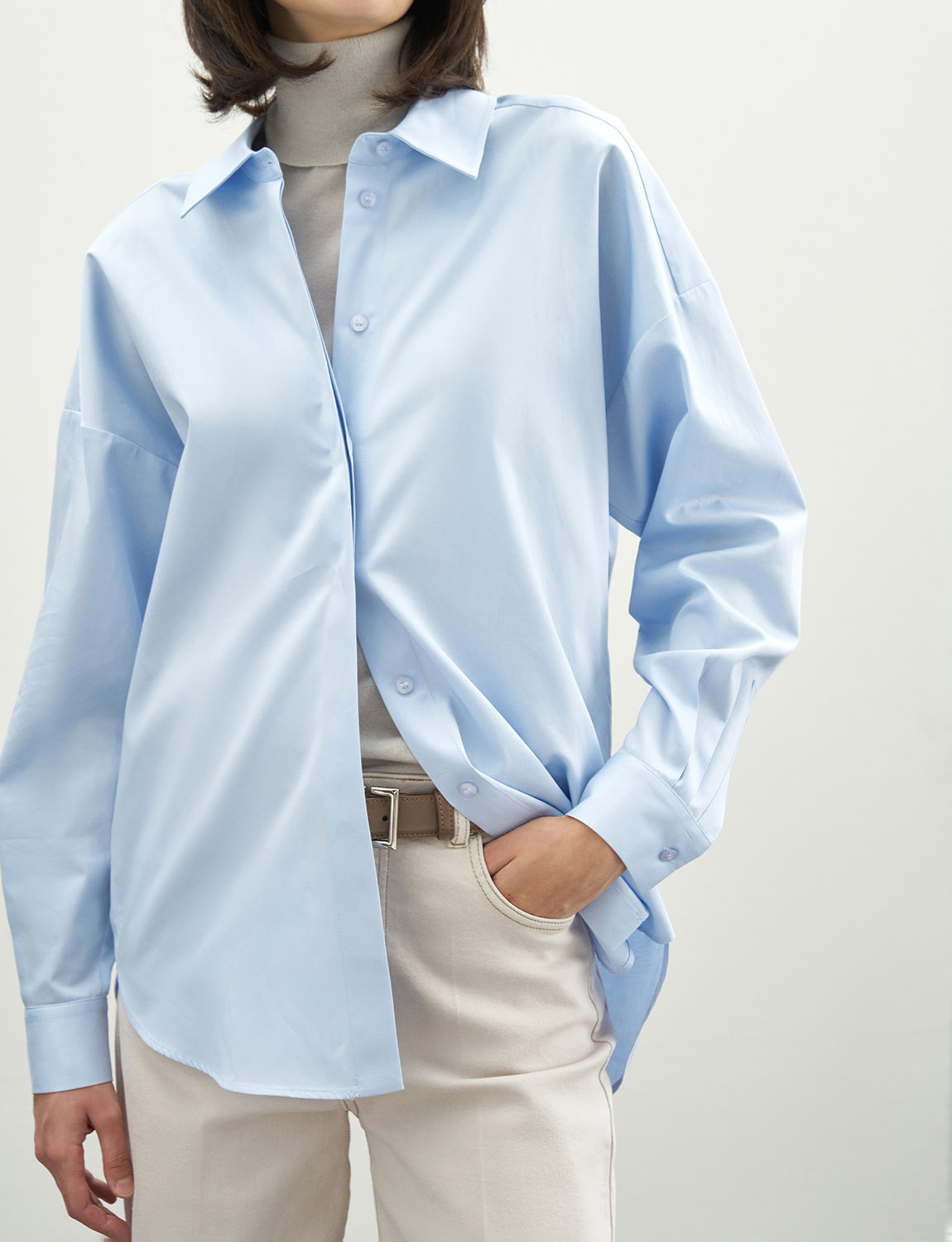 Базовая хлопковая рубашка свободного кроя. Классический ворот, застежка и манжеты на пуговицах. Благодаря натуральному составу ткани, рубашка приятна телу, свободно сидит по фигуре. Легко сочетается как с кэжуал образами - джинсами, водолазками, джемперами и кедами, так и с классическими брюками и лоферами. Универсальный и незаменимый вариант для работы и офиса, деловых встреч и повседневной жизни. На модели размер S. Параметры модели: рост 179, 75-59-87.