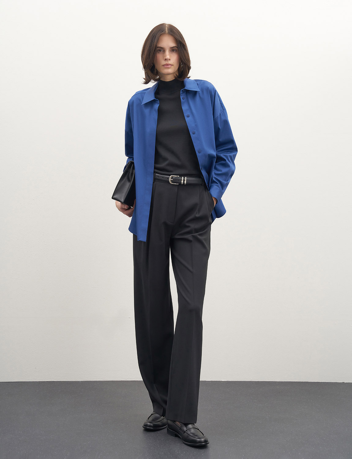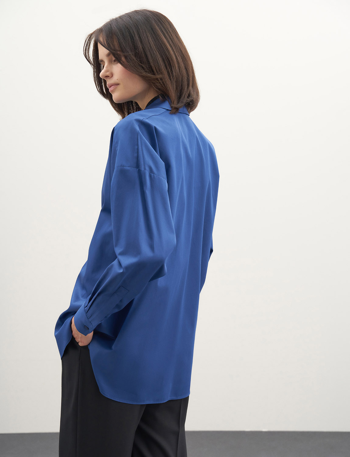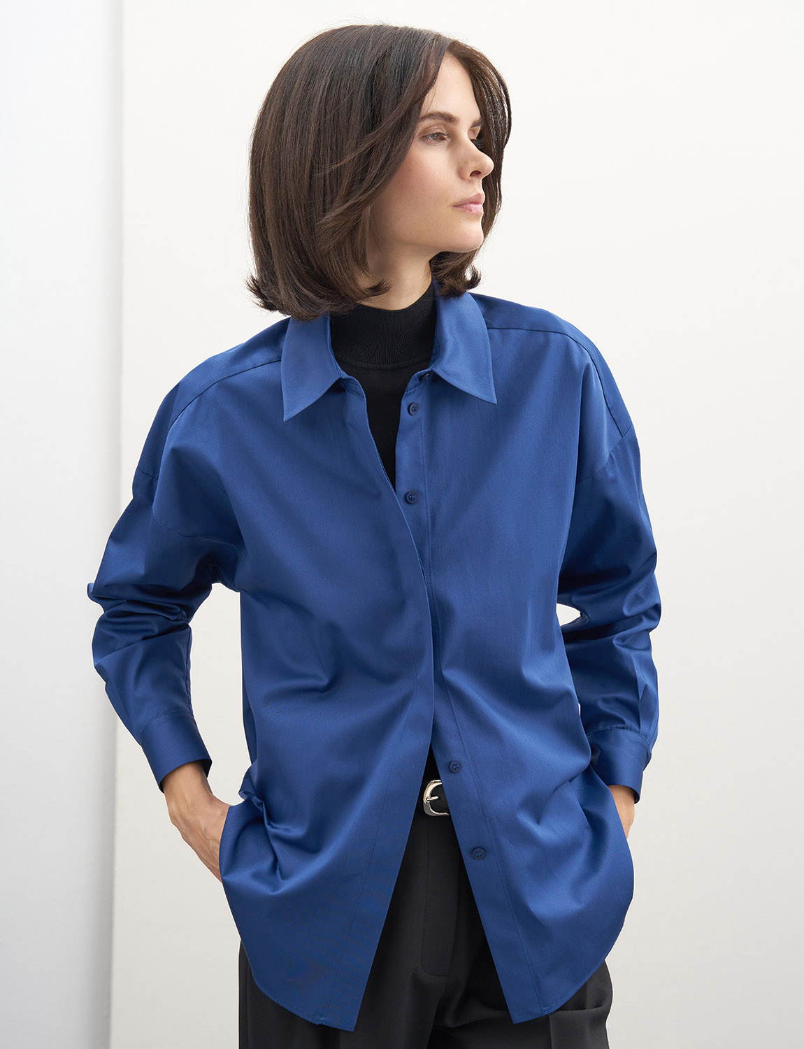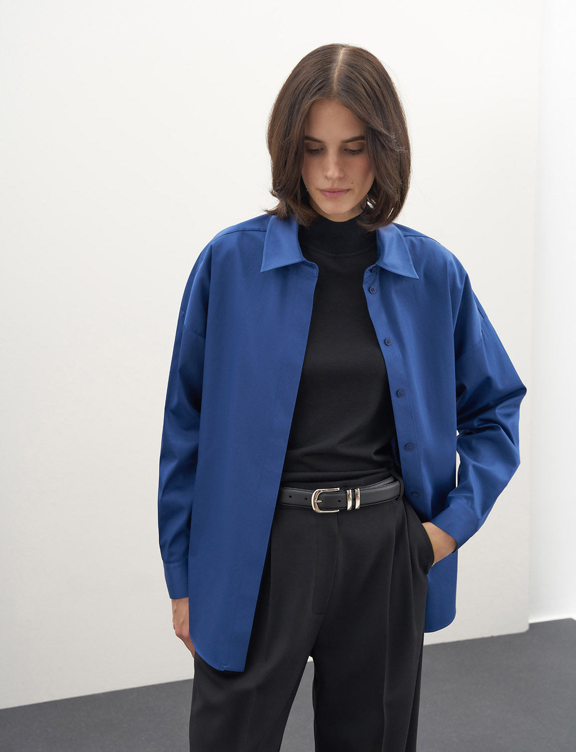 Базовая хлопковая рубашка свободного кроя. Классический ворот, застежка и манжеты на пуговицах. Благодаря натуральному составу ткани, рубашка приятна телу, свободно сидит по фигуре. Легко сочетается как с кэжуал образами - джинсами, водолазками, джемперами и кедами, так и с классическими брюками и лоферами. Универсальный и незаменимый вариант для работы и офиса, деловых встреч и повседневной жизни. На модели размер S. Параметры модели: рост 179, 75-59-87.