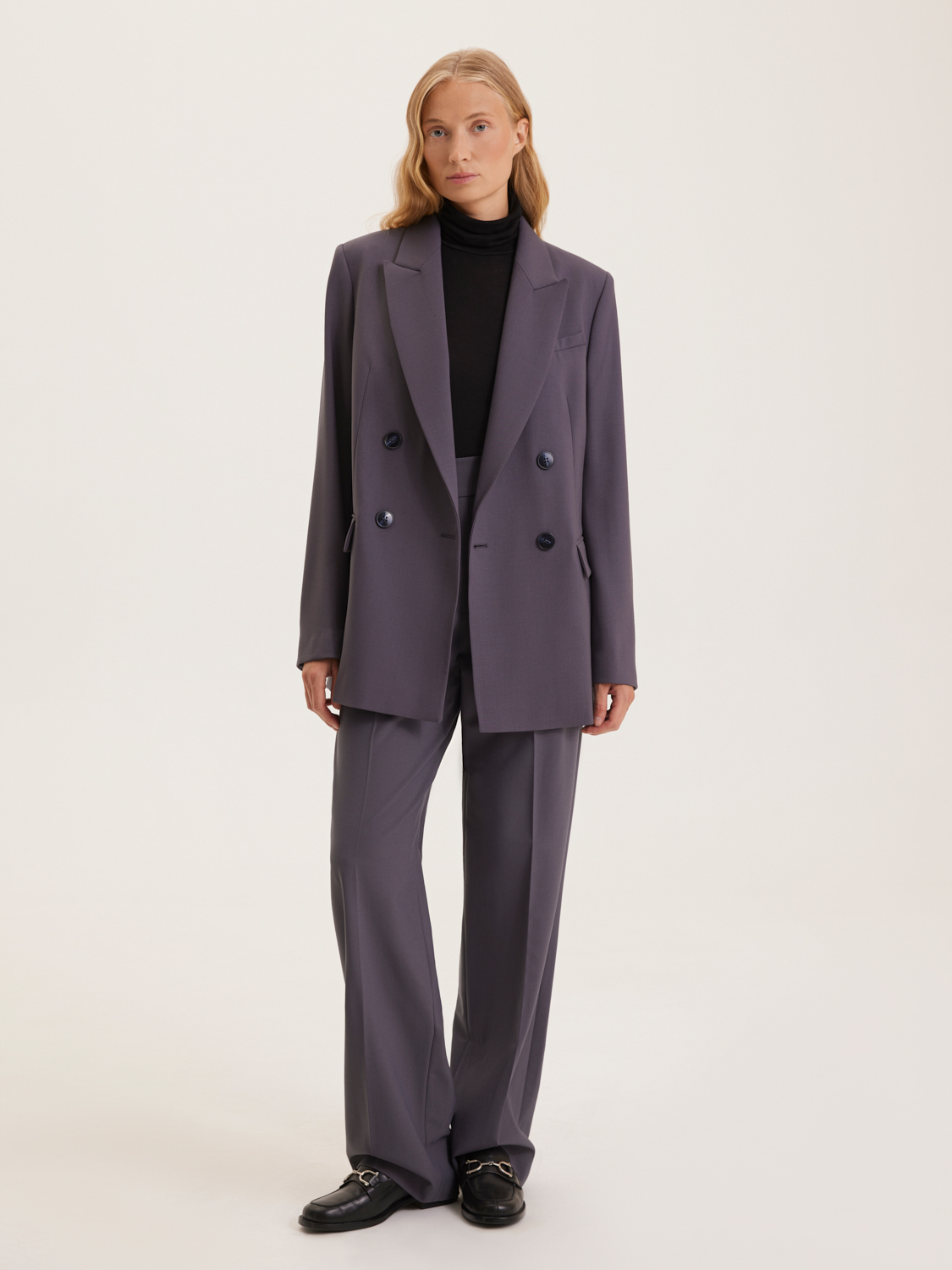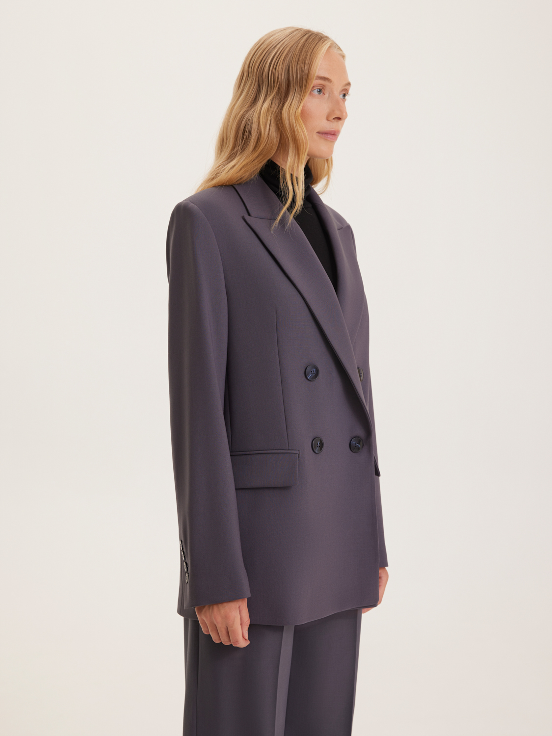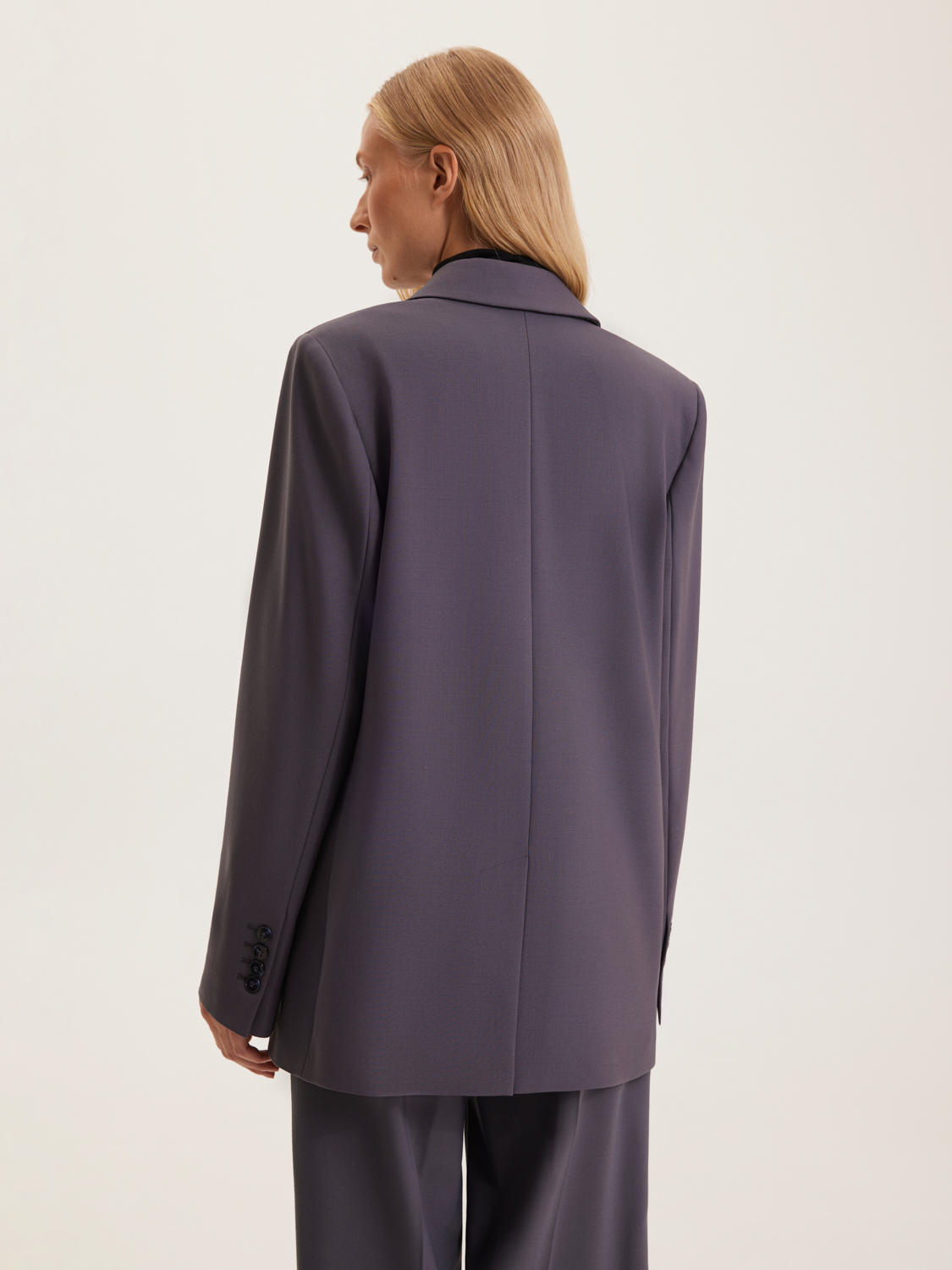 Жакет, выполненный из прочного смесового материала с добавлением шерсти, воплощает в себе элегантность и современный стиль. Модель на двухпуговичной застежке имеет классический крой с прямыми линиями, что делает ее идеальной для создания как деловых, так и повседневных образов. Жакет дополнен аккуратными лацканами и клапанами, что придает ему изысканный вид. Линия плеч слегка спущена, создавая эффект легкости и непринужденности, при этом сохраняя строгий силуэт. Длина жакета до середины бедра позволяет носить его как с брюками, так и с юбками, создавая гармоничные и стильные комплекты. На модели размер S. Параметры модели: рост 172, 84-62-91.