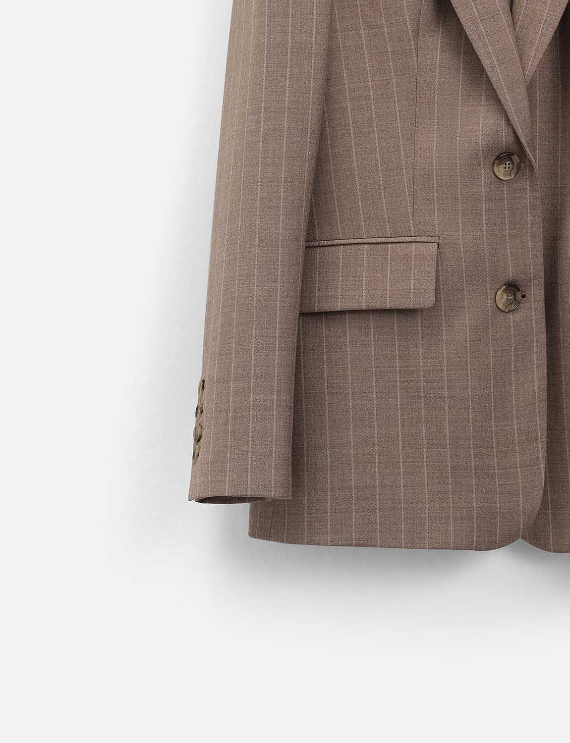 Однобортный жакет прямого кроя из натуральной шерсти. Актуальный узор в вертикальную полоску, декоративные пуговицы на рукавах, клапаны, дышащая подкладка из вискозы. Жакет в полоску универсален и подойдет для работы и офиса, деловых встреч. Удачно будет сочетаться с брюками из шерсти в полоску, юбками, денимом и водолазками. На модели размер S. Параметры модели: рост 179, 75-59-87.
