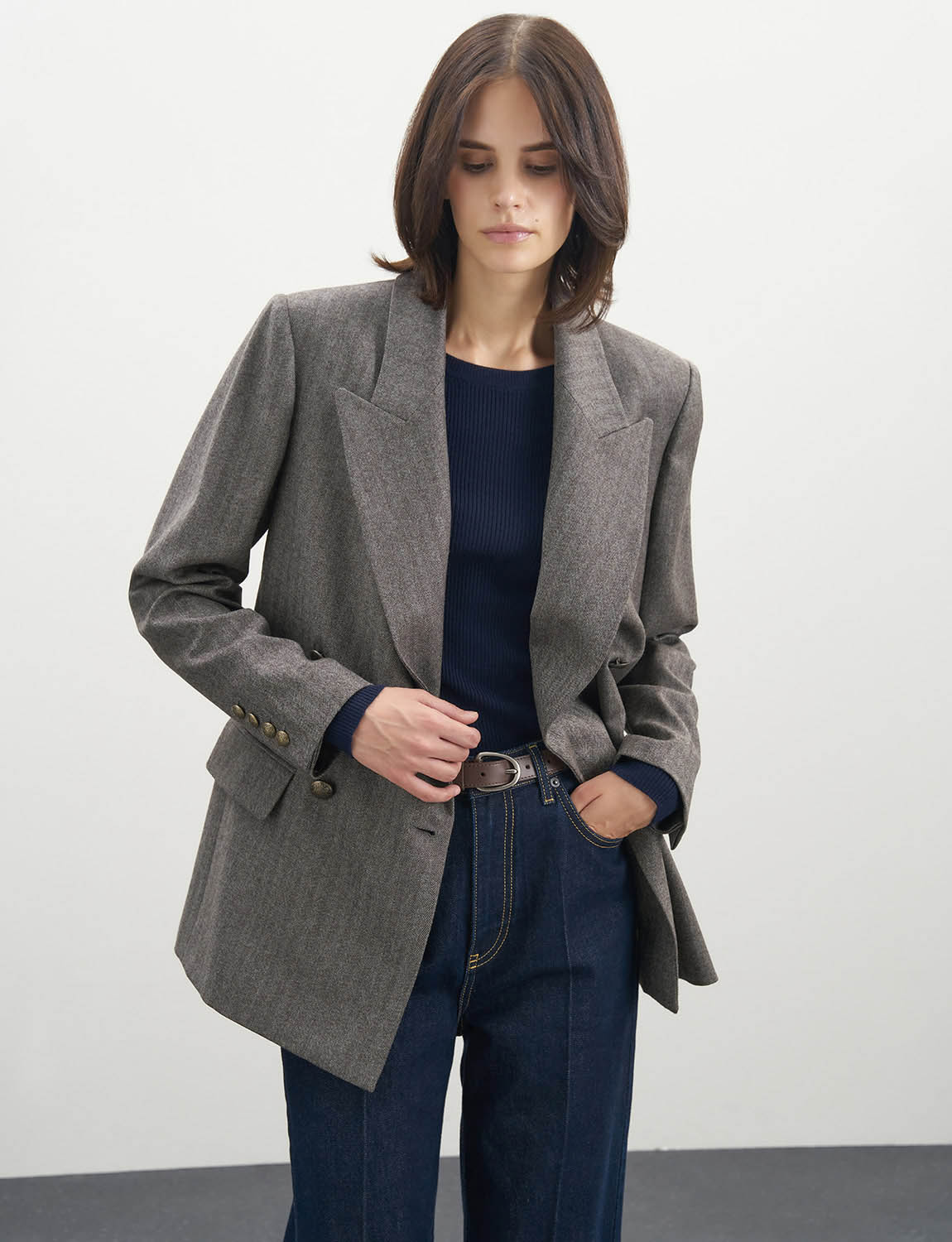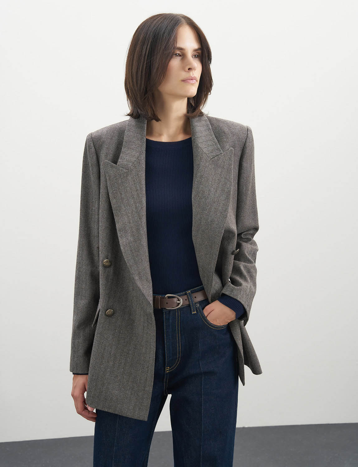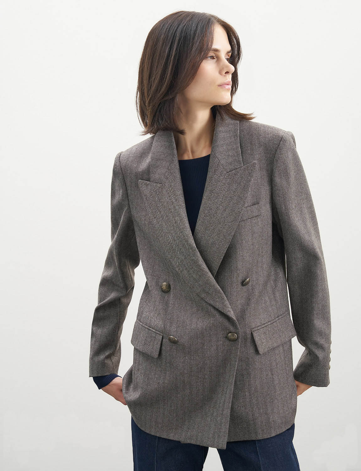 Двубортный жакет из 100% натуральной шерсти. Прямой крой жакета подходит для создания элегантного образа, а двубортная застежка добавляет нотку классики. Лацканы и декоративные клапаны – также базовые элементы жакета, а дышащая подкладка и удобные плечики обеспечивают комфорт при носке. Сочетайте жакет с классическими брюками из шерсти, с юбками, джинсами, трикотажными водолазками и топами. Жакет подойдет для работы, деловых встреч и официальных мероприятий. Наденьте его поверх блузки или рубашки для создания в меру строгого образа, или с джинсами и удобной обувью для более расслабленного лука. На модели размер S. Параметры модели: рост 179, 75-59-87.