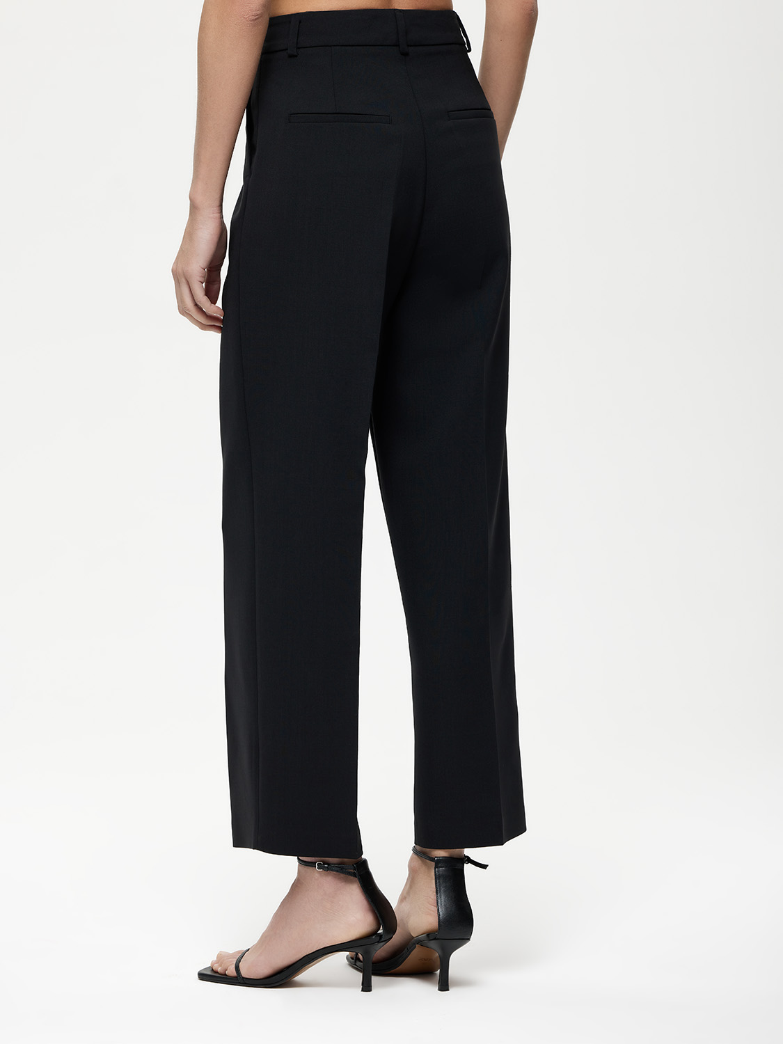 Шерстяные брюки прямого кроя с классическими стрелками. Костюмно-шерстяная ткань отличается прочностью, воздухопроницаемостью, способностью сохранять форму. У брюк шлевки для ремня, боковые карманы. Брюки сочетаются с классическими рубашками, свитерами, пиджаками и топами. Брюки подойдут для создания элегантного и сдержанного образа для деловых встреч, а также для яркого вечернего в сочетании с топами из пайеток. На модели размер S. Параметры модели: рост 177, 83-61-89.