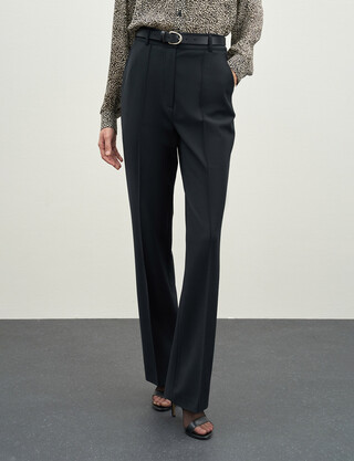 Элегантные костюмные брюки прямого кроя, слегка расклешенные книзу. Комфортная посадка, застежка на молнию, боковые карманы, классические стрелки и шлевки для ремня. Смесовая ткань с натуральной шерстью плотная и дышащая, брюки хорошо сохраняют форму при должном уходе, не сковывают движения и приятны на ощупь и коже. Подойдут для любого события и повода - будь то работа, офис, деловая встреча или вечернее мероприятие. Образ дополнит жакет, водолазка или блуза, лоферы или ботильоны. На модели размер S. Параметры модели: 179, 75-59-87.