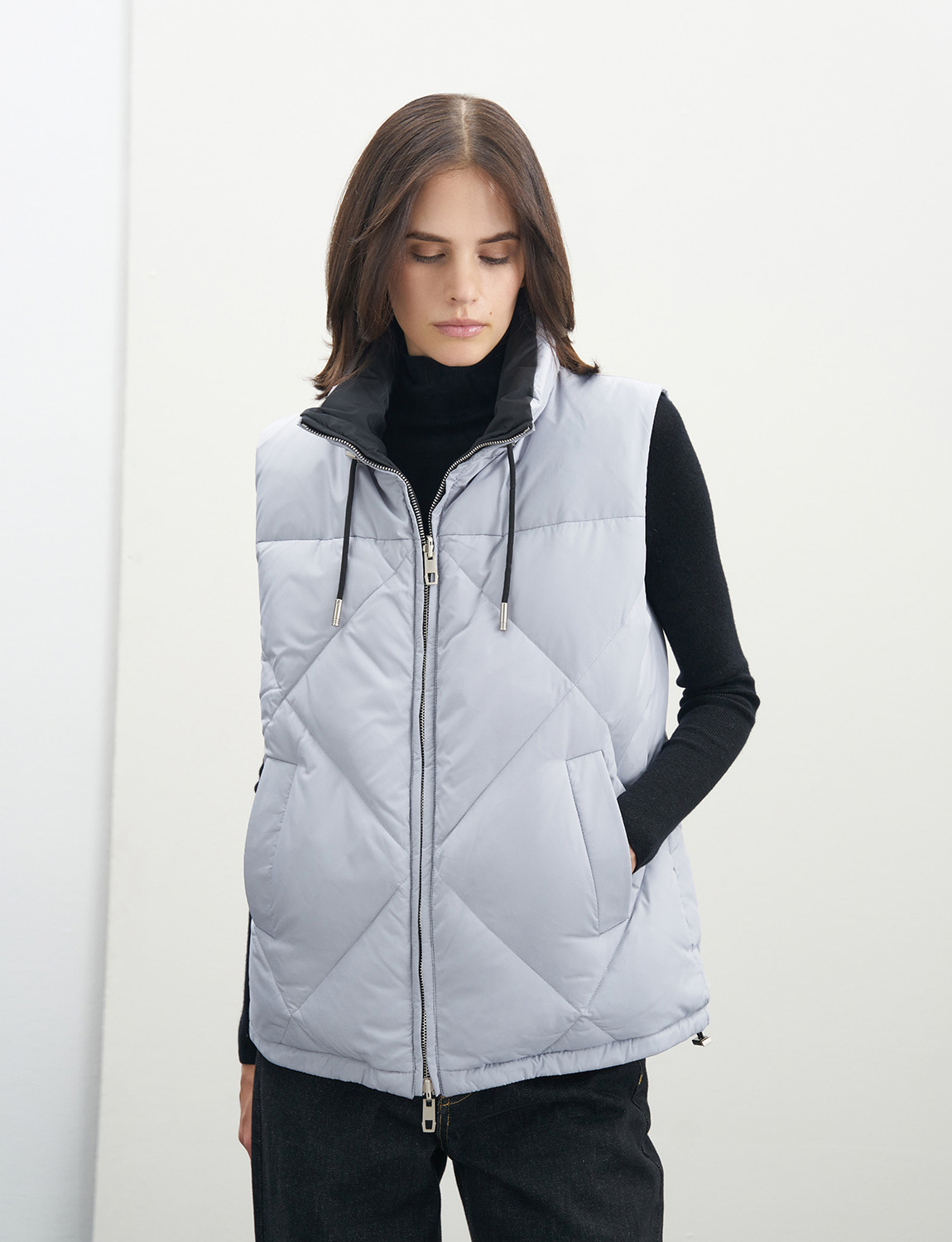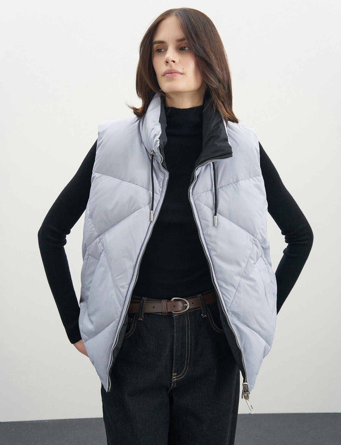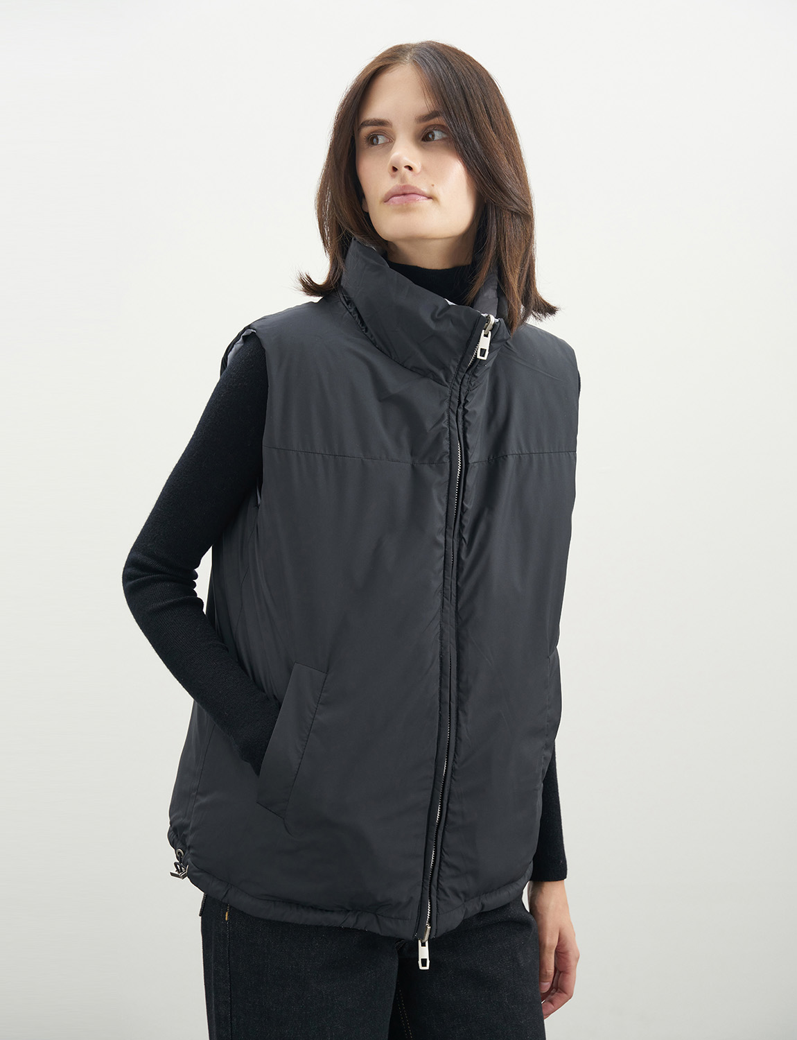 Двусторонняя утепленная жилетка с наполнителем из пуха и пера белой утки гарантирует превосходное тепло и комфорт. Наполнитель обладает уникальными свойствами, которые позволяют сохранять тепло даже при самых низких температурах. Особенностью этой жилетки является двойная молния, которая обеспечивает удобство при надевании и снимании. Отсутствие капюшона делает жилетку более универсальной и подходящей для разных образов. Высокий ворот и кулиска по низу жилетки обеспечивают дополнительную защиту от холода. Прорезные карманы по бокам жилетки добавляют функциональности и удобства. Жилетку можно сочетать с любыми брюками, джинсами, джемперами и водолазками. Дополните свой образ аксессуарами, такими как шапка, шарф и перчатки, чтобы создать уютный образ и чувствовать себя комфортно в холодное время года. На модели размер S. Параметры модели: рост 179, 75-59-87.