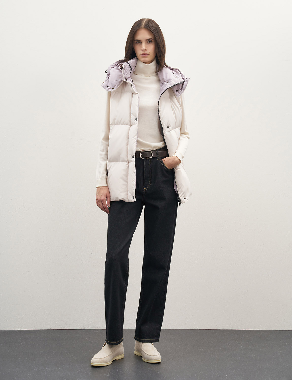 Утепленная жилетка с наполнителем из утиного пуха и пера. Съемный капюшон на кулиске, регулирующей прилегание, защищает от ветра и дождя. Вместительные карманы на молнии позволяют хранить необходимые мелочи, а застежка на молнию и кнопки с планкой надежно защищают от продувания. Наполнитель из утиного пуха обладает теплоизоляционными свойствами, обеспечивая комфортное тепло даже при низких температурах. Кроме того, пух и перо белой утки обладают гипоаллергенными свойствами, что делает жилетку подходящей для людей с чувствительной кожей или аллергией на пух. Водонепроницаемая ткань жилетки обеспечивает дополнительную защиту от непогоды, а удлиненный крой позволяет носить ее как с повседневной одеждой, так и со спортивной. Жилетка сочетается с джинсами, брюками или леггинсами, а также с теплыми свитерами, водолазками или толстовками. На модели размер S. Параметры модели: рост 179, 75-59-87.