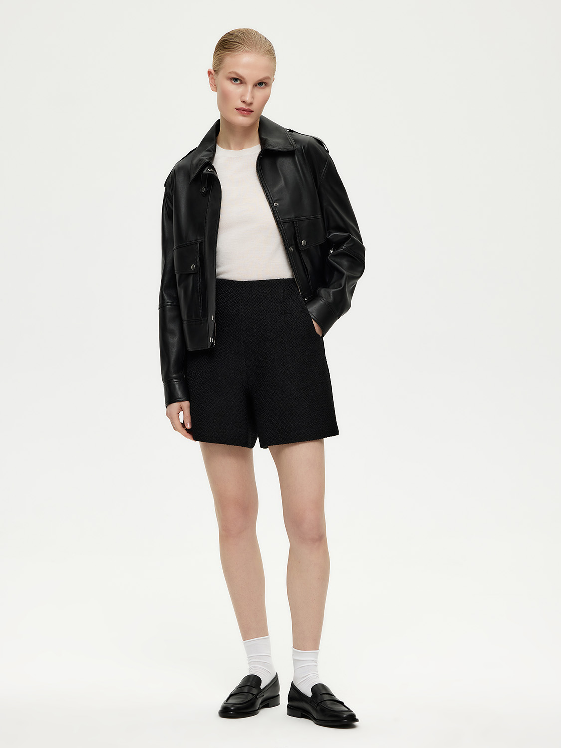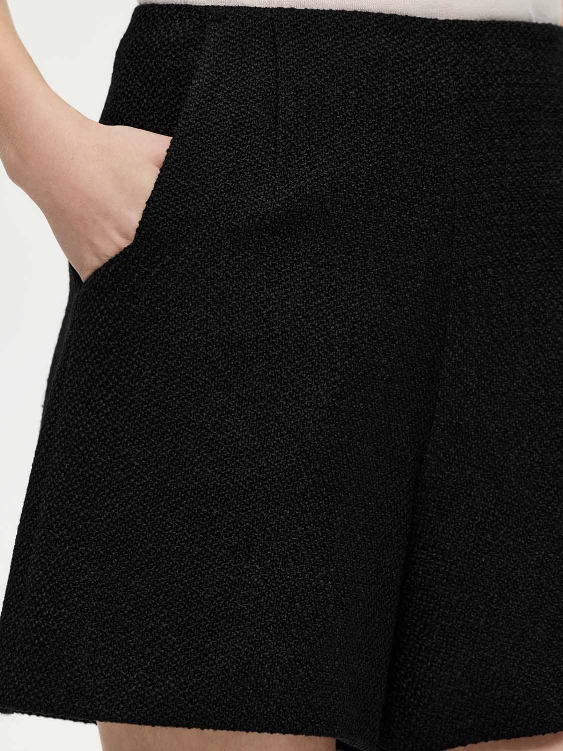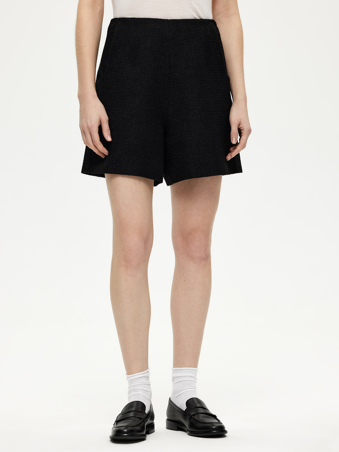 Лаконичные шорты из фактурной костюмной ткани с натуральной шерстью. Посадка на талии и слегка расклешенный крой эффектно подчеркивают фигуру и делают ноги стройнее. Шорты на подкладке, с карманами и застежкой на потайную молнию. Минималистичный дизайн позволяет сочетать с различными верхами: футболками, рубашками, блузами и жакетами. В качестве обуви выбирайте лоферы или высокие сапоги для повседневных образов и изящные босоножки для вечернего выхода. На модели размер S. параметры модели: рост 175, 80-63-89.