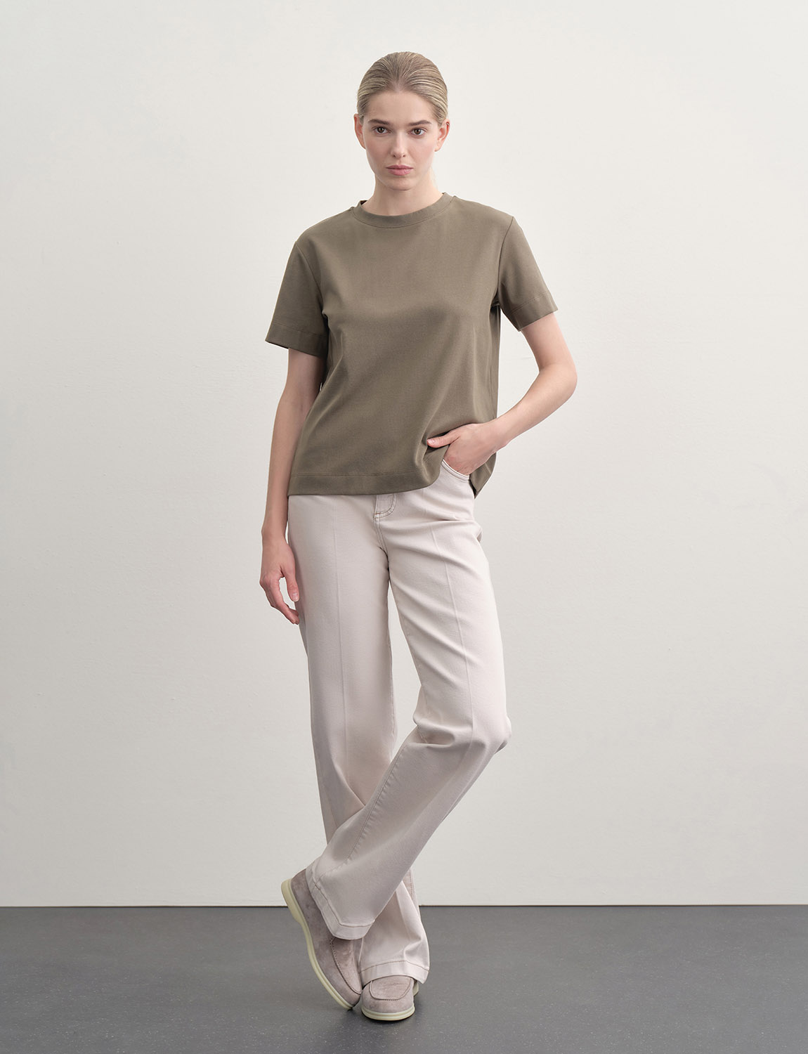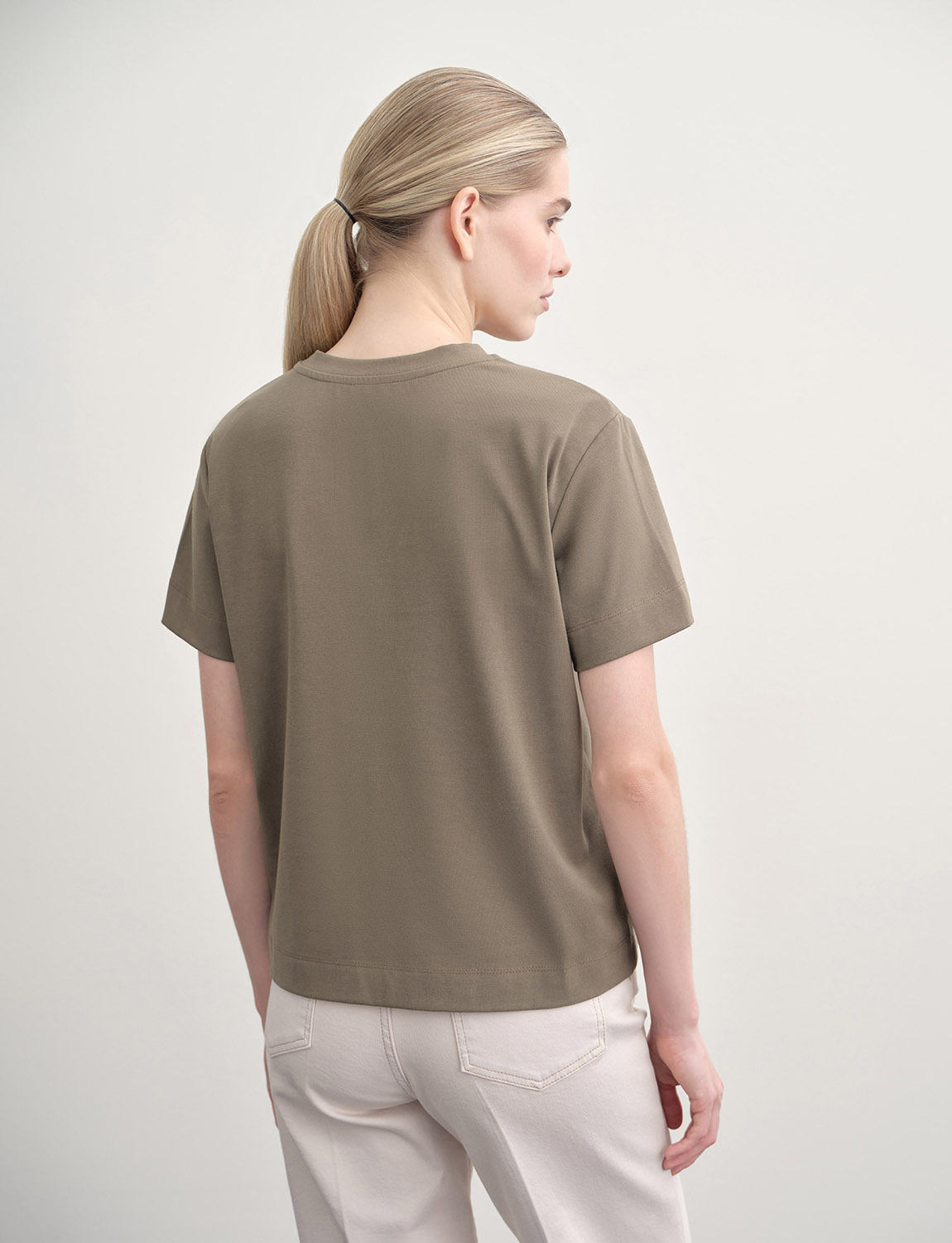 Футболка прямого силуэта из смеси вискозы и натурального хлопка. Округлый вырез и свободный крой обеспечивают комфортную посадку по фигуре. Ткань прочная и устойчива к износу, сохраняет при этом легкость и дышащие свойства. Благодаря содержанию вискозы, материал отводит влагу от кожи, а эластан в составе помогает сохранить форму. Футболка подойдет для кэжуал образов с джинсами или леггинсами, а также дополнит строгие брюки или юбку для более формального образа. Носить футболку можно в любое время года, сочетая с куртками, пальто или жакетами в зависимости от погодных условий. Она подойдет для работы, учебы, прогулок, встреч с друзьями и других мероприятий. На модели размер S. Параметры модели: рост 176, 84-60-89.