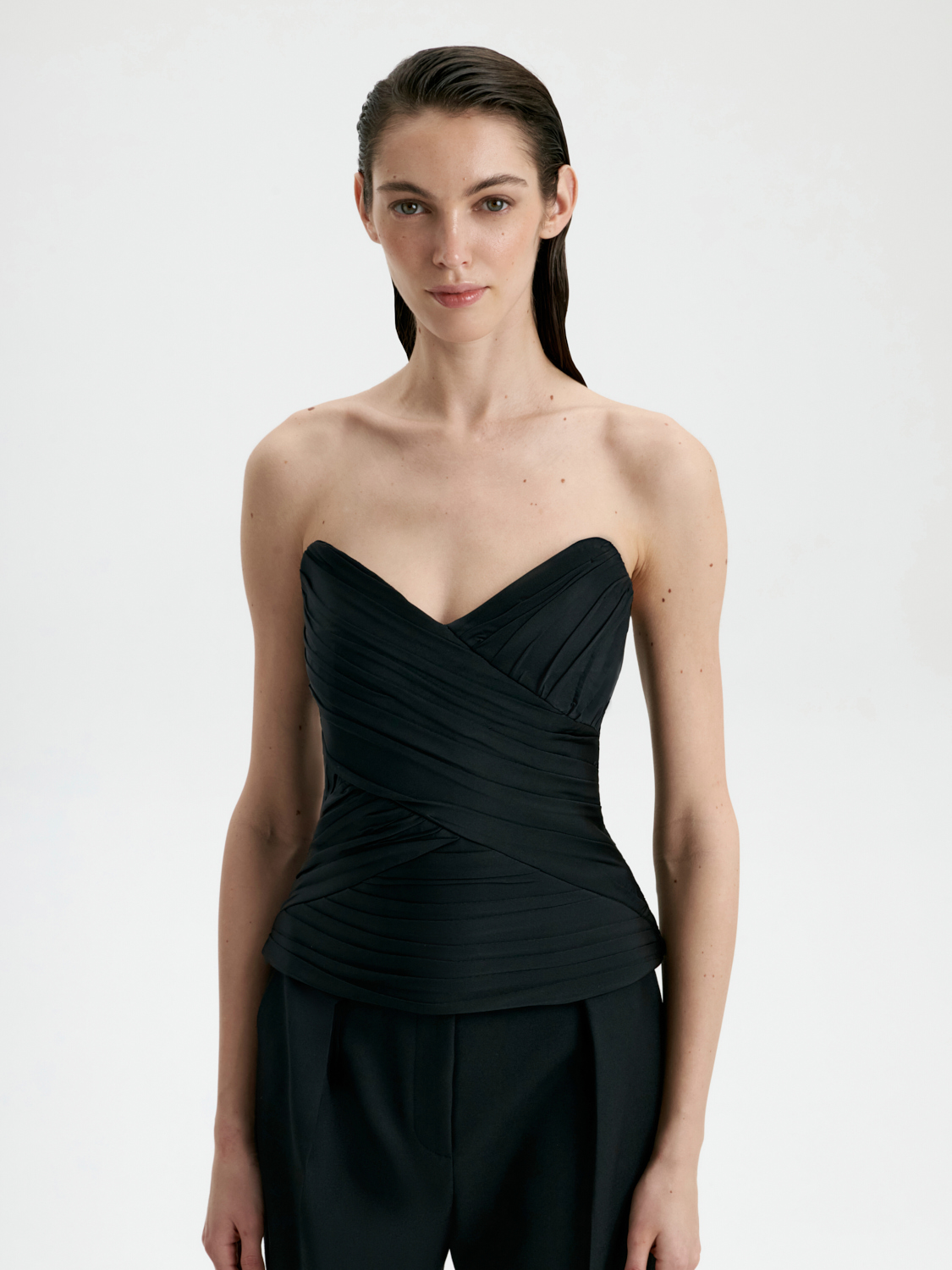 Топ-корсет на молнии — стильная модель, подчеркивающая женственность и утонченность образа. Выполненный из плотного, но эластичного материала, он идеально облегает фигуру, создавая эффектный силуэт. Молния на передней части добавляет практичности и легкости в использовании, а элегантный оттенок делает топ универсальным элементом гардероба. Его можно сочетать с широкими брюками для современных образов или с юбками для вечернего выхода. Этот топ-корсет станет эффектным акцентом вашего аутфита, объединяя в себе смелость и изящество.
