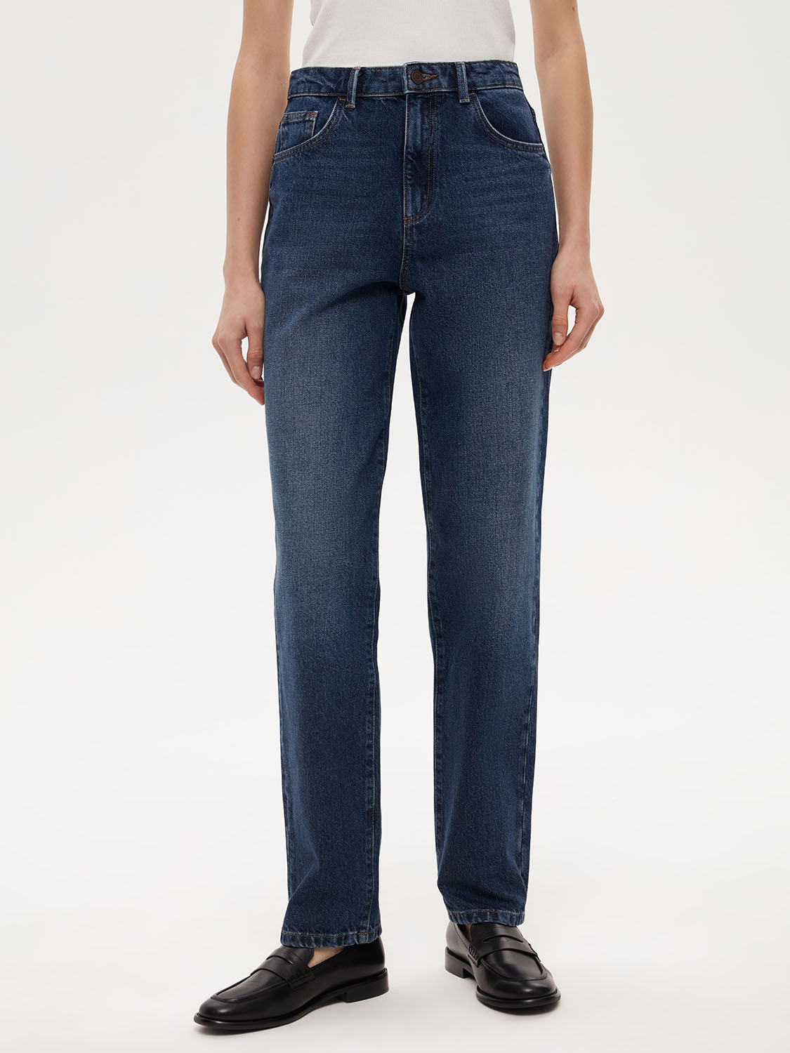 Базовые джинсы прямого кроя из 100% натурального хлопка. Удобные карманы по бокам и на бедрах, шлевки для ремня. Натуральный хлопок обеспечивает воздухопроницаемость и комфорт. Сочетайте джинсы с любимой футболкой, рубашкой или свитером для создания образов на работу, учебу или прогулку. На модели размер 26. Параметры модели: рост 178, 80-59-89.