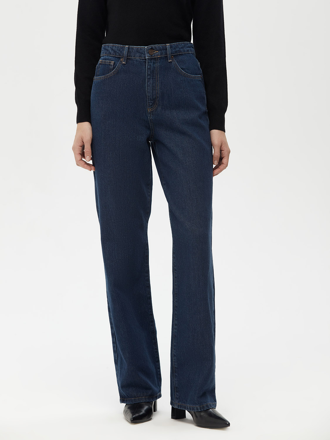 Эти джинсы прямого кроя — идеальный выбор для тех, кто ценит классический стиль и комфорт. Средняя посадка и прямой силуэт создают универсальный образ, который подходит для любого случая. Темно-синий оттенок подчеркивает их элегантность и делает джинсы отличным вариантом как для повседневных, так и для более формальных образов. Высококачественный деним обеспечивает долговечность и комфорт при носке, а классические карманы и застежка на пуговице и молнии добавляют практичности. Носите эти джинсы с рубашками, свитерами или жакетами — они станут базовой вещью в вашем гардеробе, которую легко сочетать с разными элементами одежды. Параметры модели: рост 174 см, размер S.
