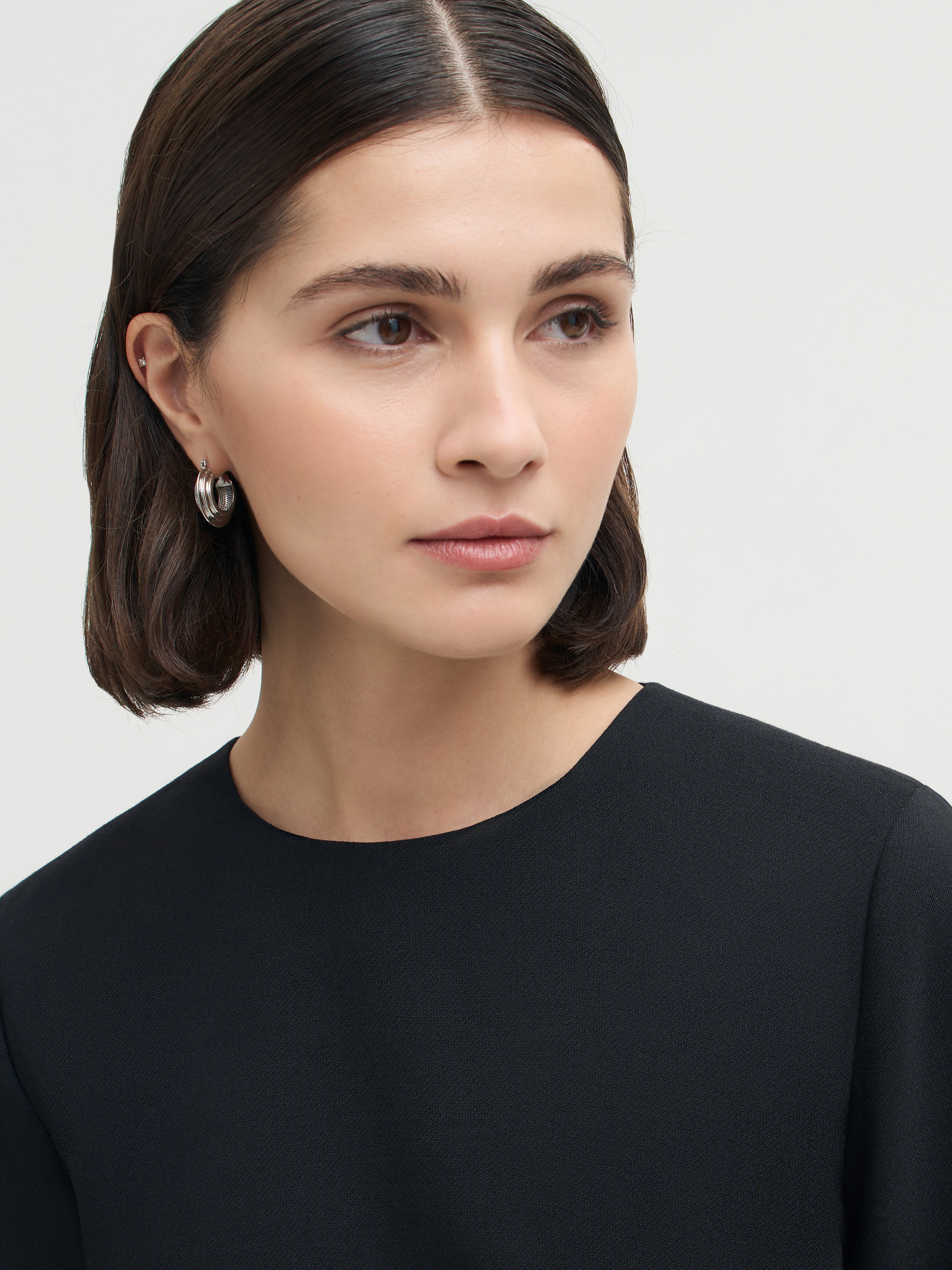 Платье мини из плотной шерстяной ткани — сдержанная и выверенная модель на каждый день. Лаконичный силуэт с длиной выше колена, округлой горловиной и длинными рукавами считывается строго и современно. Плотная, но мягкая ткань держит форму и подходит для прохладного сезона, оставаясь комфортной в носке. В зависимости от стилизации работает как самостоятельная единица или как база в многослойных образах с жакетом, пальто, сапогами или ботинками.