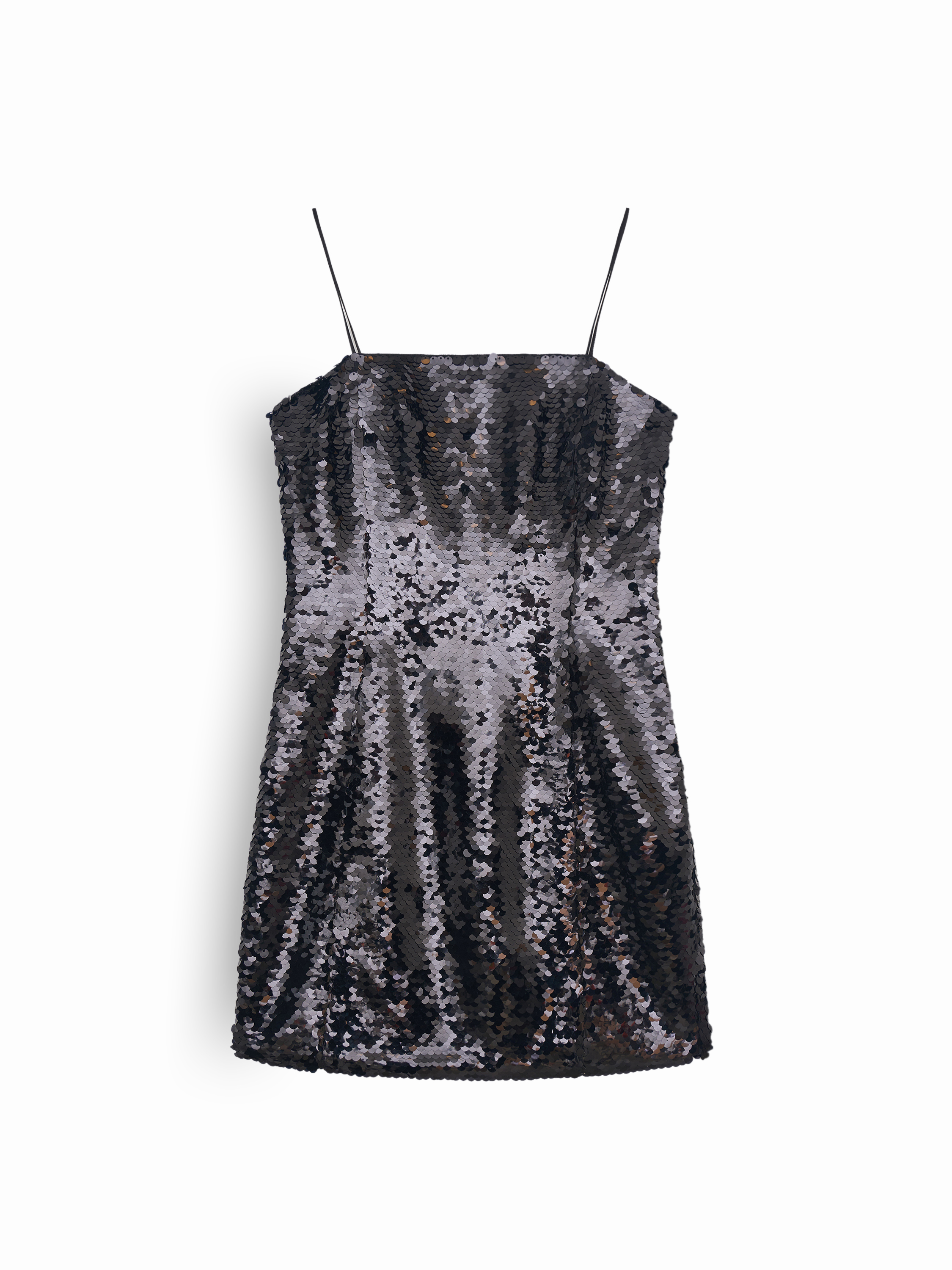 Платье мини с полной вышивкой пайетками — акцентная модель с прямым силуэтом и чистой линией верха. Поверхность создает выразительную игру блеска при движении, при этом полотно остается гибким и комфортным. Посадка мягко повторяет контур фигуры без излишней жесткости. Тонкие бретели формируют лаконичный верхний контур и визуально вытягивают силуэт. Длина мини делает модель уместной для вечерних выходов и праздничных комплектов, сочетаясь с лодочками, босоножками и строгими жакетами.