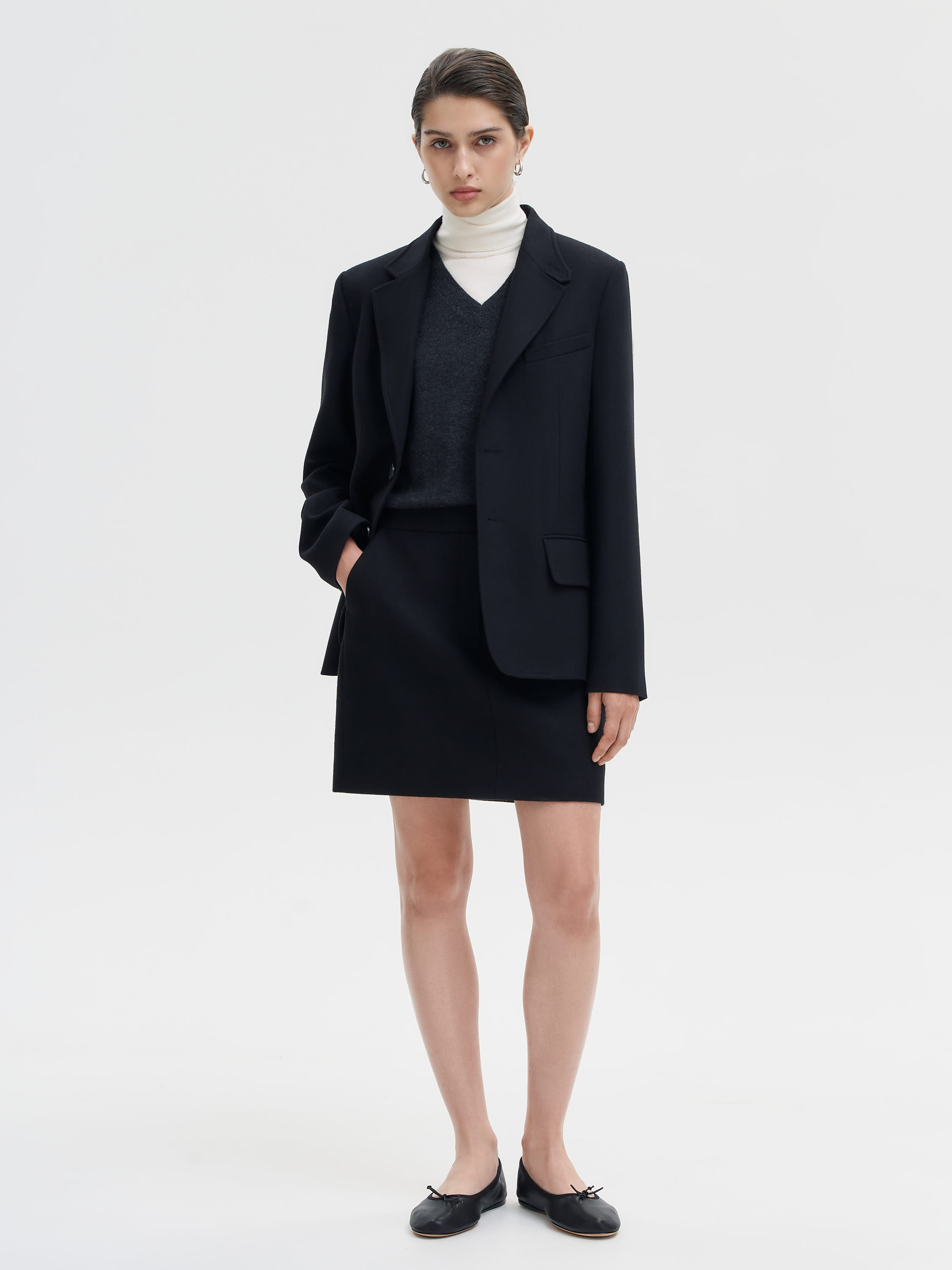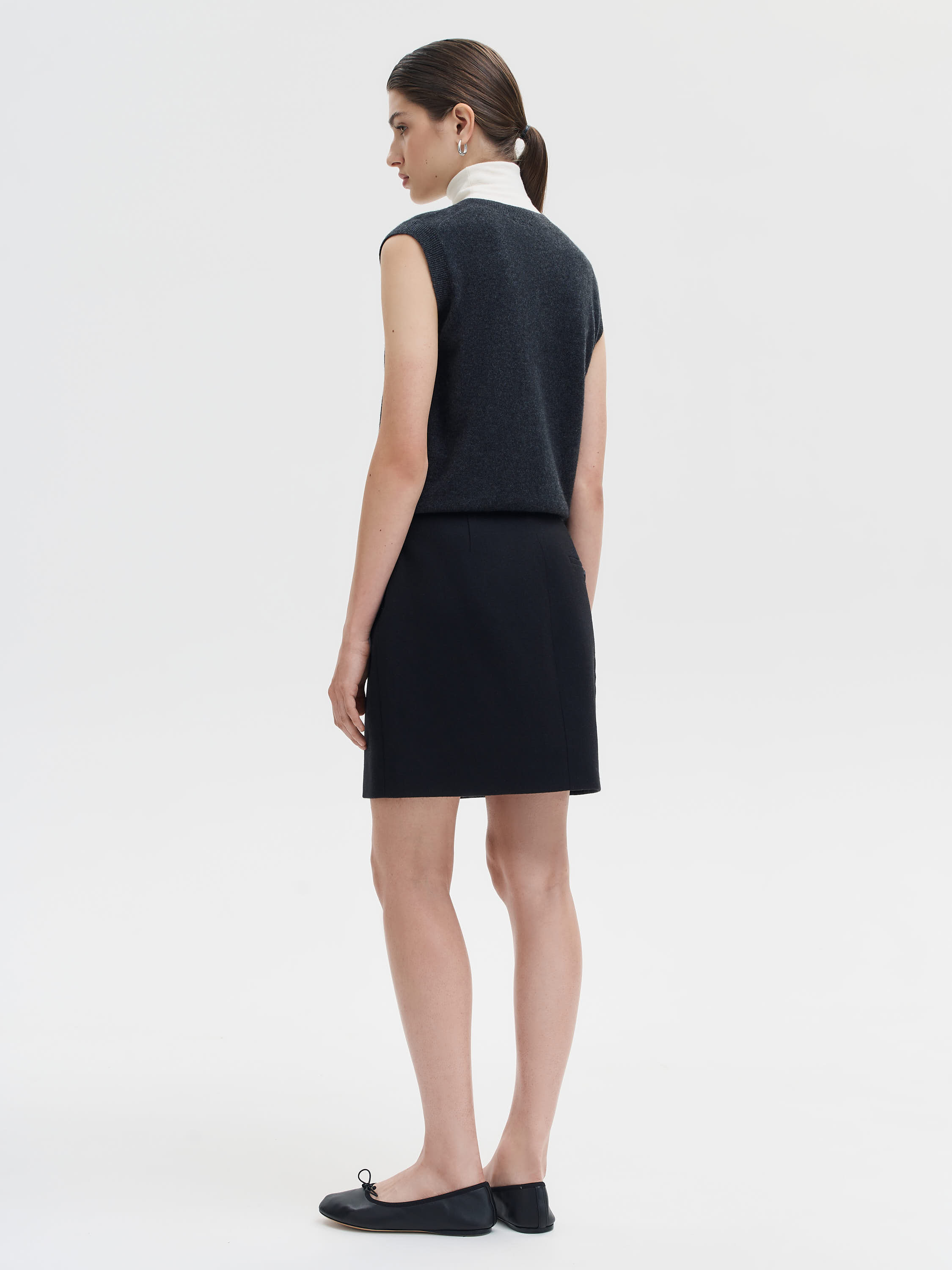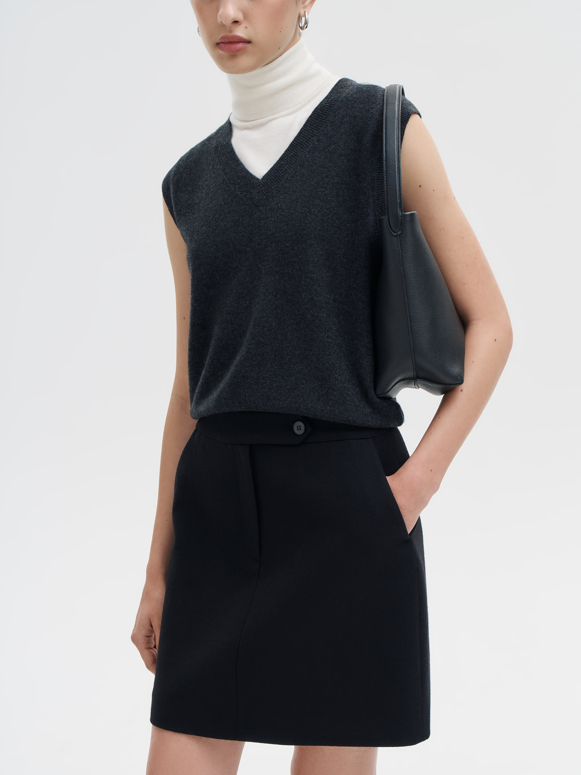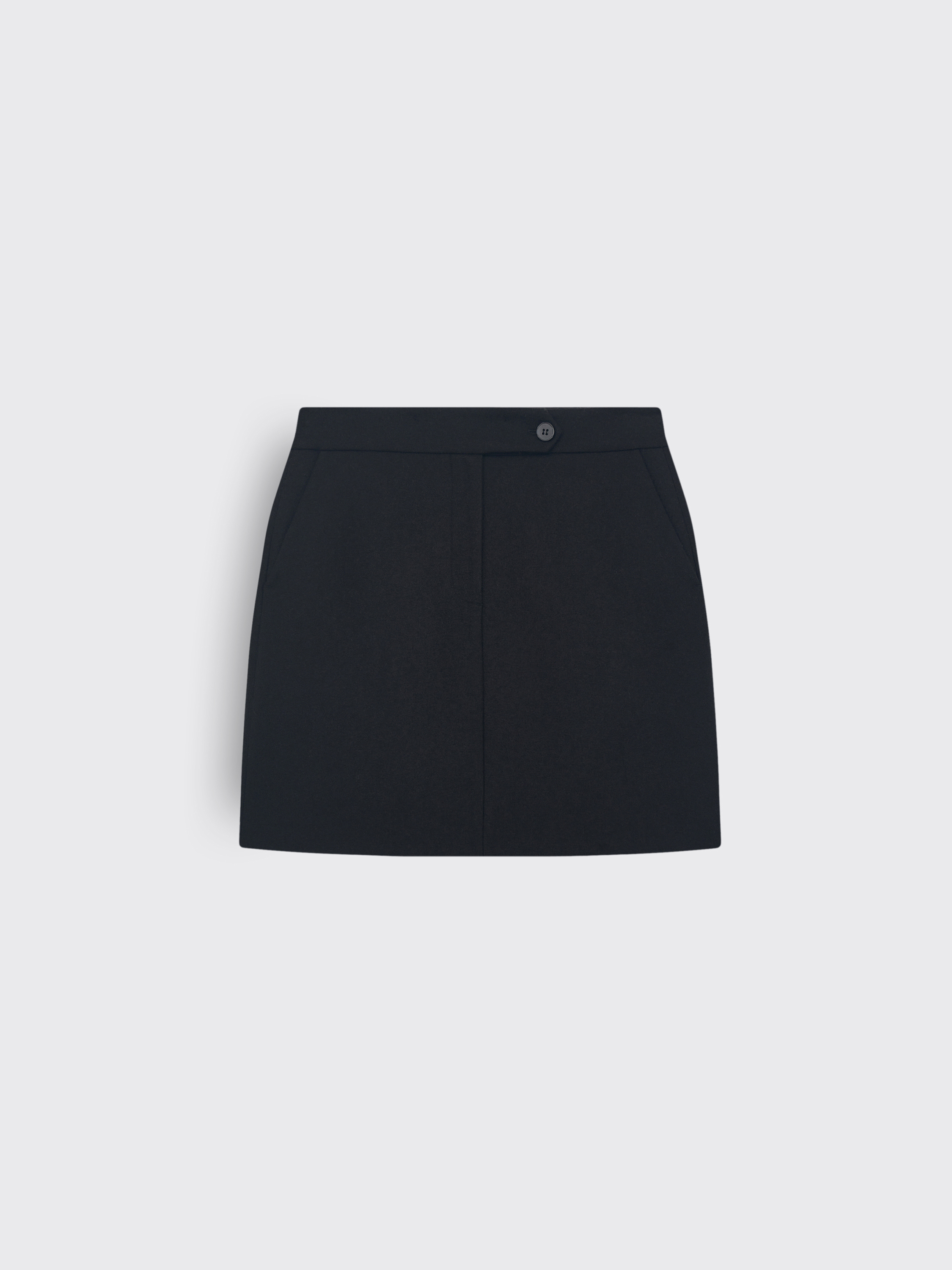 Мини-юбка прямого силуэта, выполненная из мягкой костюмной ткани с высоким содержанием шерсти и добавлением модала. Ткань гладкая, плотная, с матовой фактурой и приятным на ощупь внутренним слоем. Посадка четкая, по талии, с застежкой на пуговицу и молнию. Детали: боковые карманы в швах, вытачки и лаконичный пояс без декора. Оттенок сложный, густой, ближе к ночному синему. Носится как самостоятельно, так и в паре с жакетом, плотным трикотажем или рубашкой. Подходит для прохладного сезона, актуальна в офисных и повседневных образах.