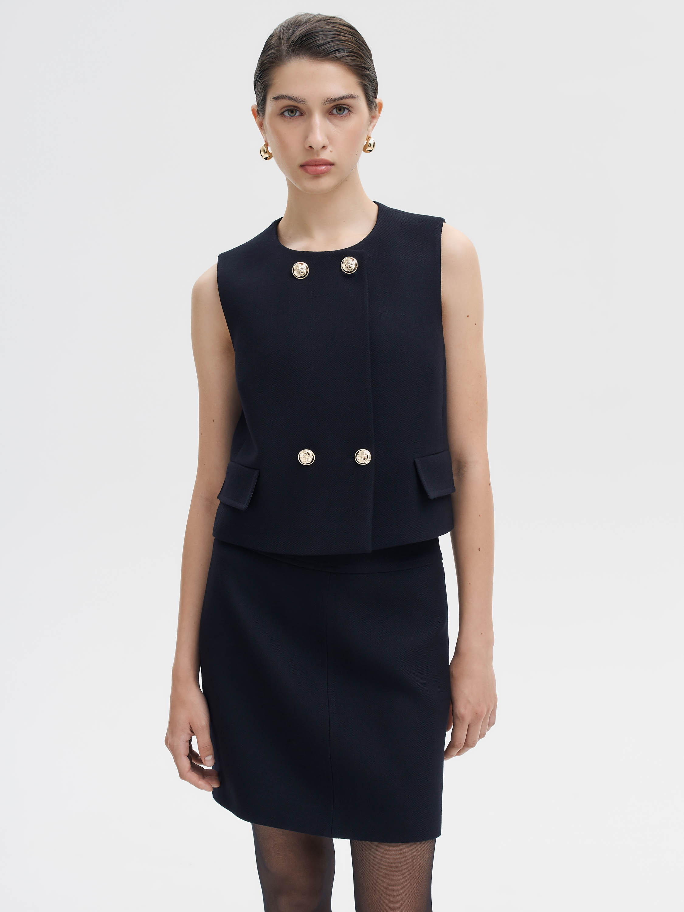 Мини-юбка прямого кроя из 100% шерсти в насыщенном темно-синем оттенке. Плотное костюмное полотно держит форму, дышит и комфортно ощущается в течение дня. Лаконичный силуэт с притачным поясом и центральным швом спереди подчеркивает чистоту линии. Модель выполнена на подкладке, что обеспечивает дополнительный комфорт и долговечность. Юбка легко вписывается в деловые и повседневные образы, гармонично сочетаясь с жакетами, жилетами и трикотажем.