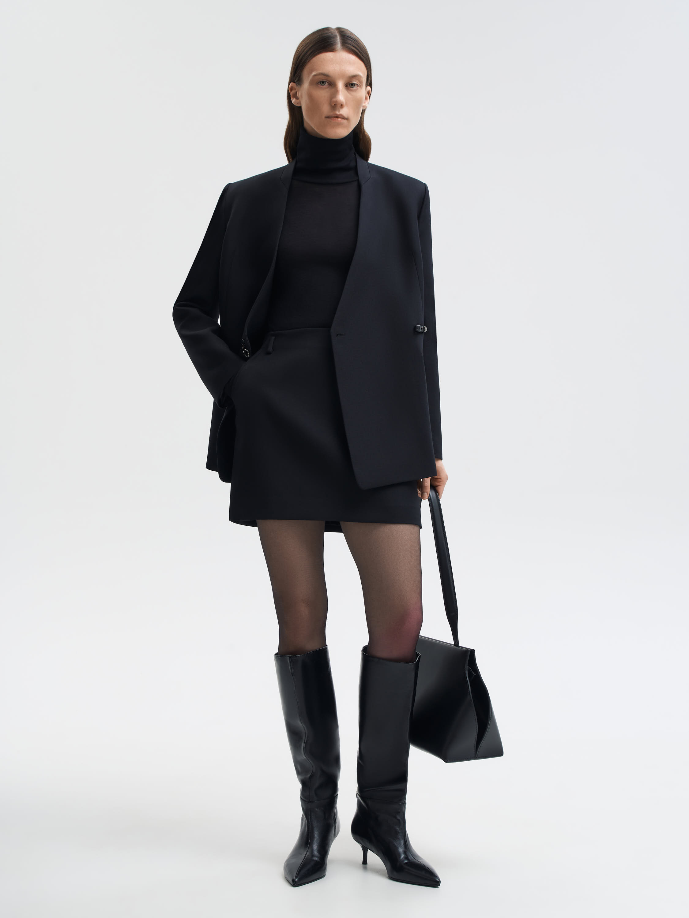 Юбка выполнена из костюмной ткани с содержанием шерсти — материал плотный, держит форму и сохраняет аккуратный вид в течение дня. Минималистичный крой и лаконичная длина делают модель универсальной для разных образов. Посадка комфортная, пояс со шлёвками позволяет добавить ремень. Боковые карманы подчеркивают практичность, а чистые линии — современный силуэт. Юбка уместна в офисных и повседневных комплектах: с рубашками, водолазками, жакетами или объемными свитерами.