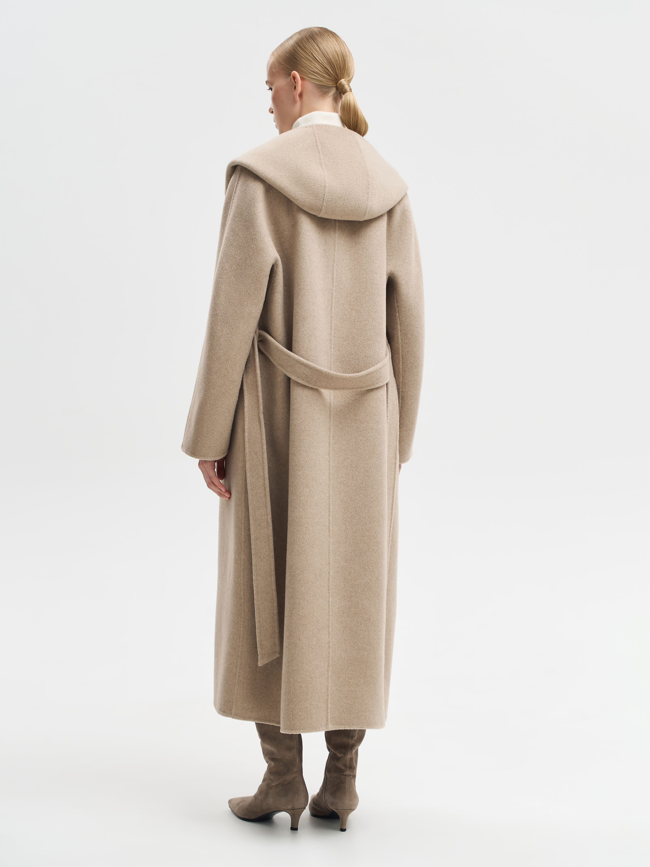 Пальто с капюшоном из 100% кашемира отличается мягкостью и пластичностью полотна, которое дарит деликатное тепло и остается комфортным в холодный сезон. Материал дышащий, легкий и в то же время достаточно плотный, хорошо держит форму и выглядит благородно. Прямой крой с поясом позволяет регулировать посадку, а капюшон придает модели функциональность и завершенность. Такое пальто легко сочетается с платьями, юбками и брюками разных фасонов, гармонично вписывается в многослойные комплекты с трикотажем и верхней одеждой.