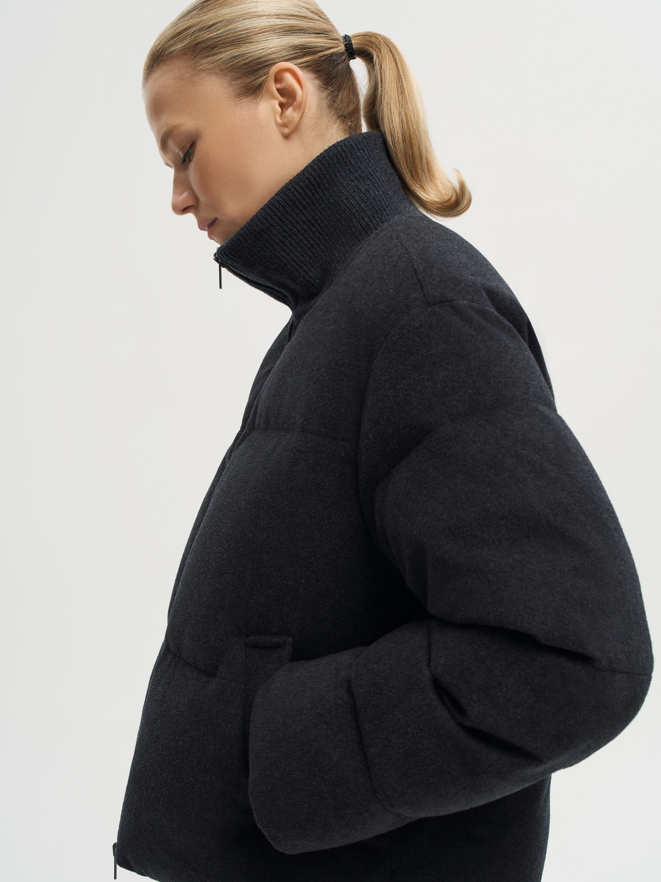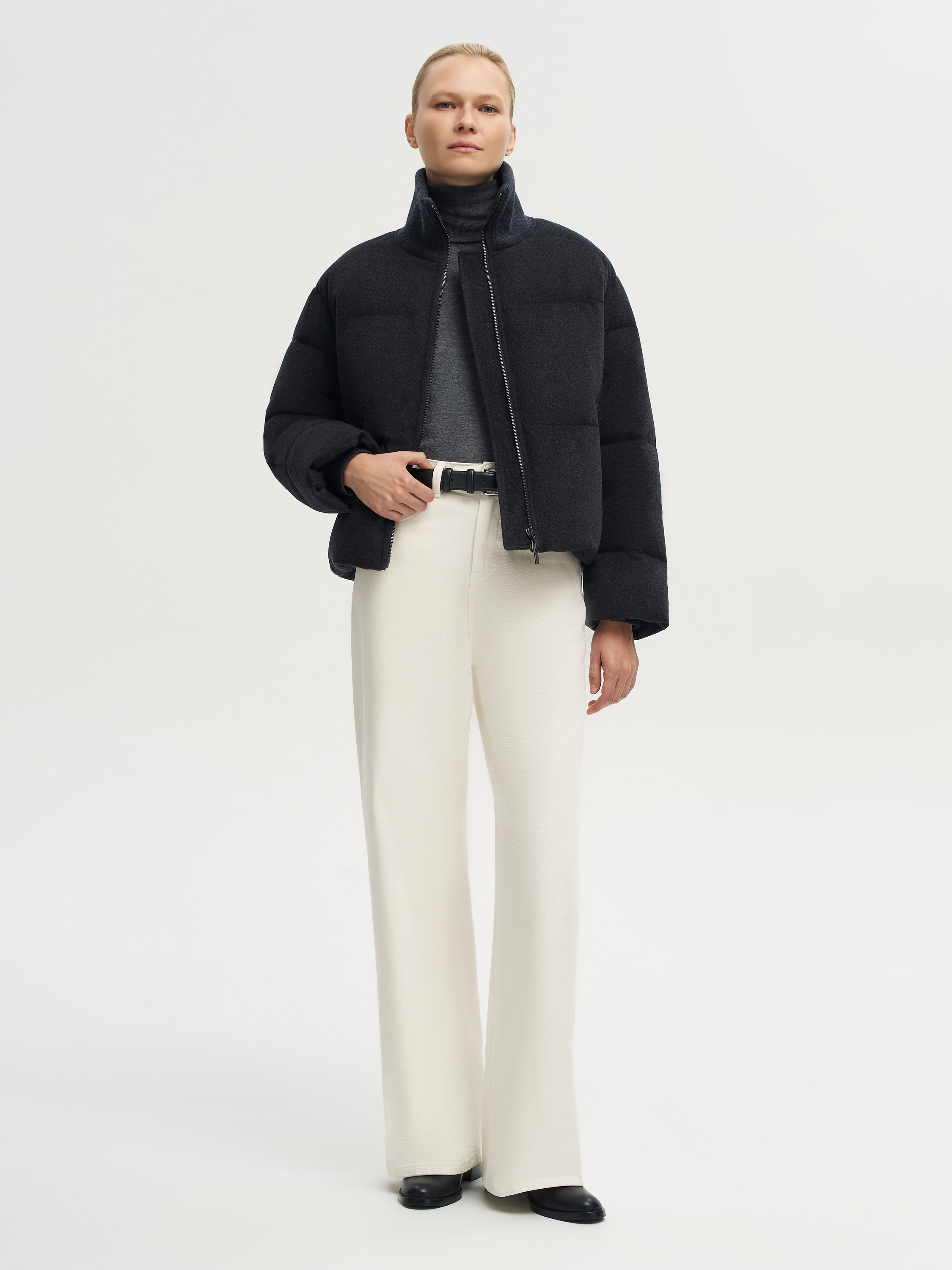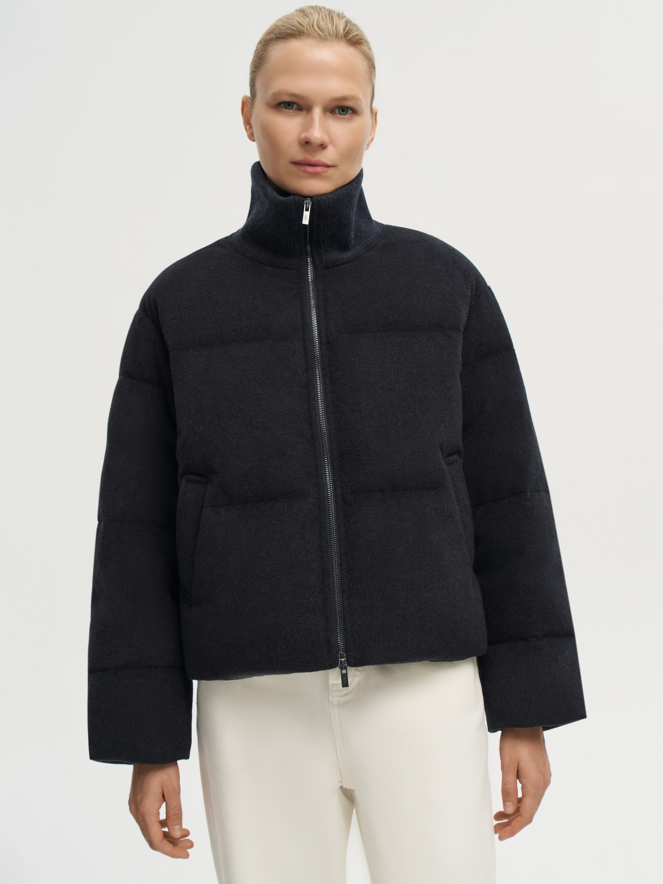 Пуховик из шерсти мериноса с добавлением шелка сочетает выразительную фактуру и легкость в носке. Верх изготовлен из смеси 90% шерсти и 10% шелка: ткань отличается мягкостью, естественным блеском и устойчива к образованию складок. Для защиты от ветра и влаги применяется мембранная технология Storm System. В качестве наполнителя использован пух белой утки, который обеспечивает высокую теплоизоляцию без утяжеления. Высокий воротник надежно защищает от ветра и придает образу завершенность. Прямой крой и боковые карманы подчеркивают функциональность модели, а лаконичный силуэт позволяет вписать ее и в повседневные, и в более собранные образы.