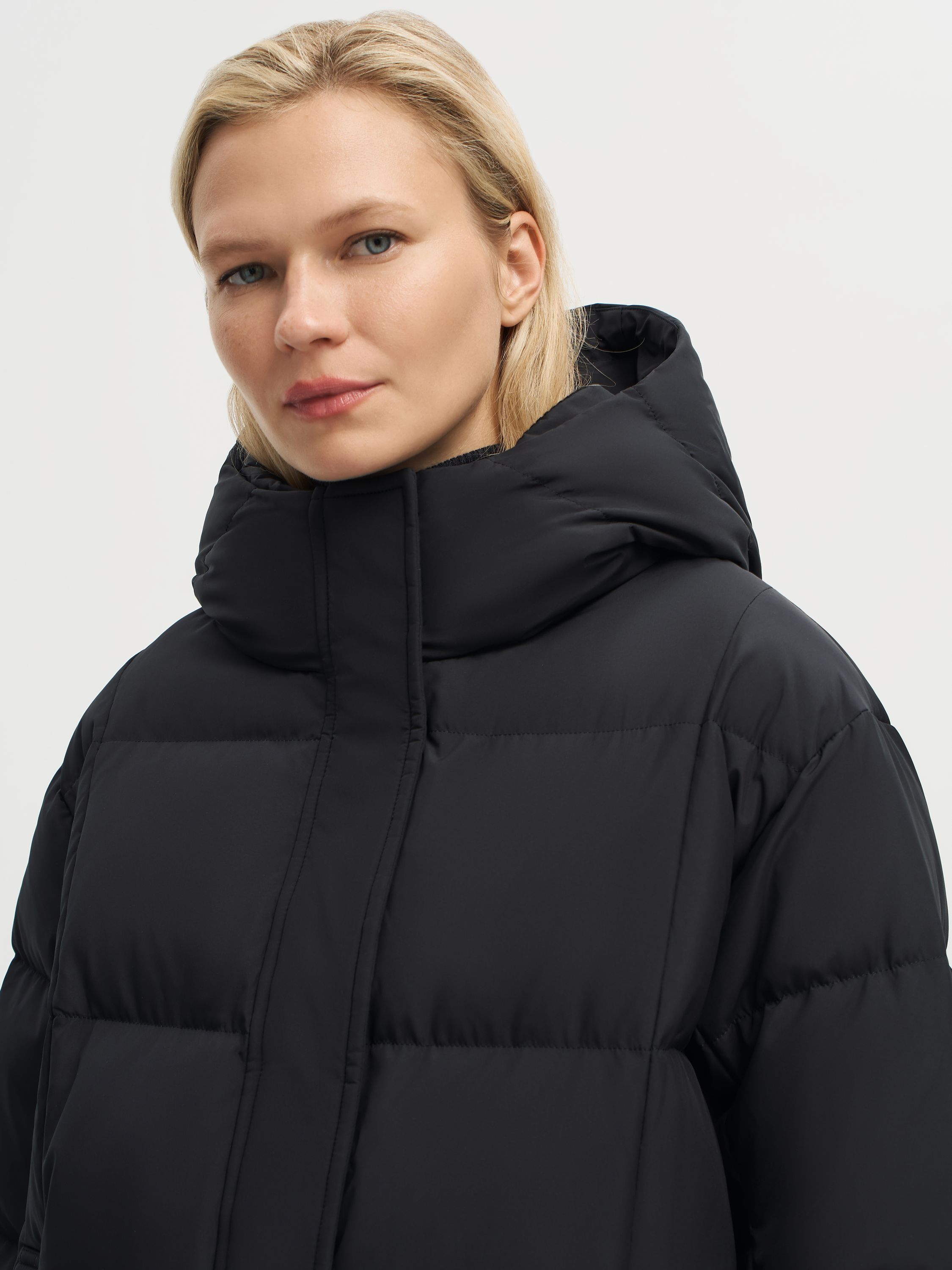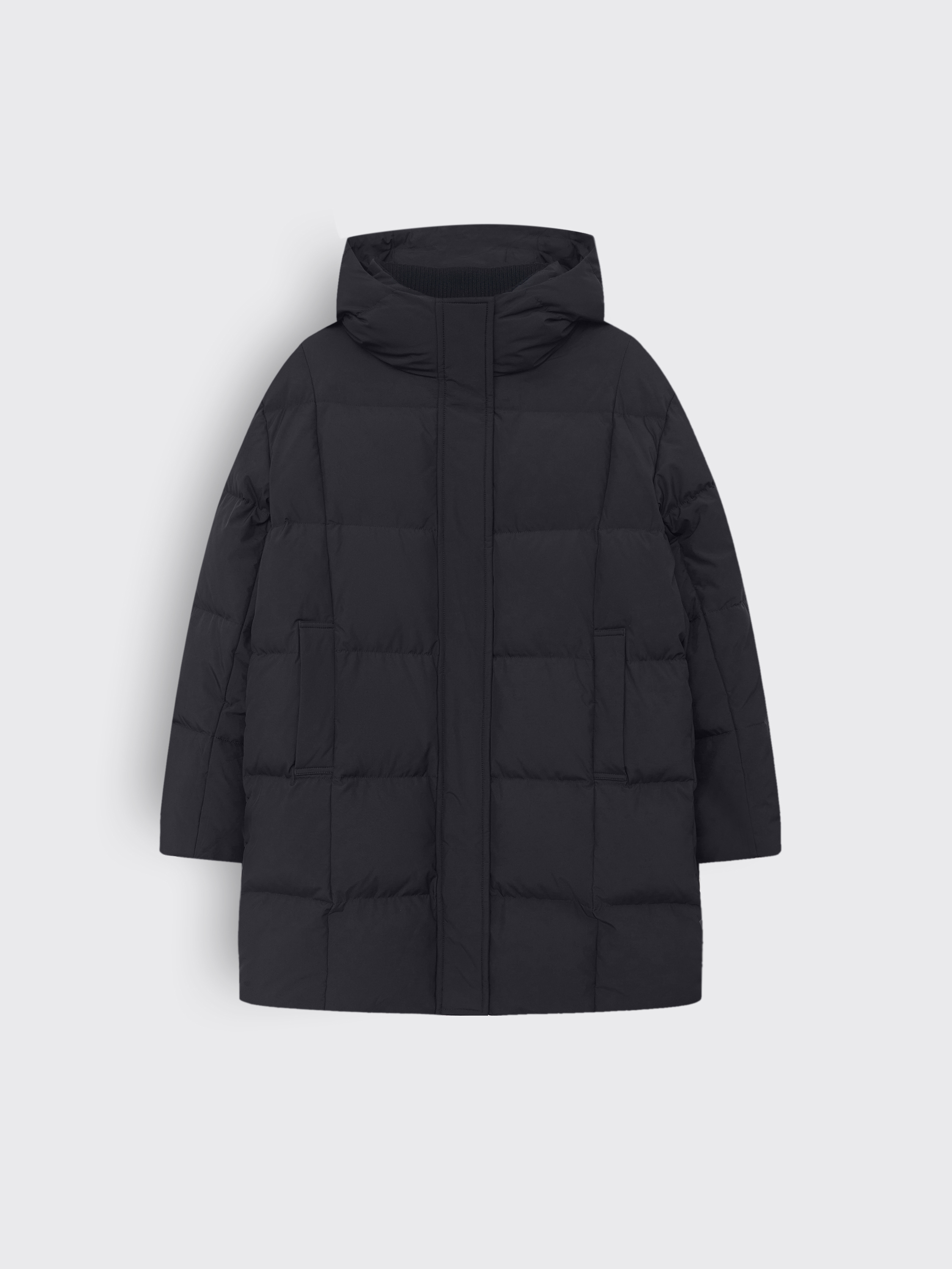 Пуховик с капюшоном и прямым силуэтом выполнен из полиэстера с использованием технологии пуховых пакетов, которые препятствуют миграции наполнителя и усиливают защиту от влаги и ветра. В качестве утеплителя используется пух и перо белой утки с высоким индексом Fill Power 750 — комбинация, которая сочетает легкость, объем и надежное сохранение тепла даже в мороз. Высокий воротник из шерсти мериноса мягко прилегает к шее, создавая дополнительный комфорт. Лаконичный крой и продуманные детали делают модель универсальной: она гармонично вписывается в повседневные ансамбли и городские образы.