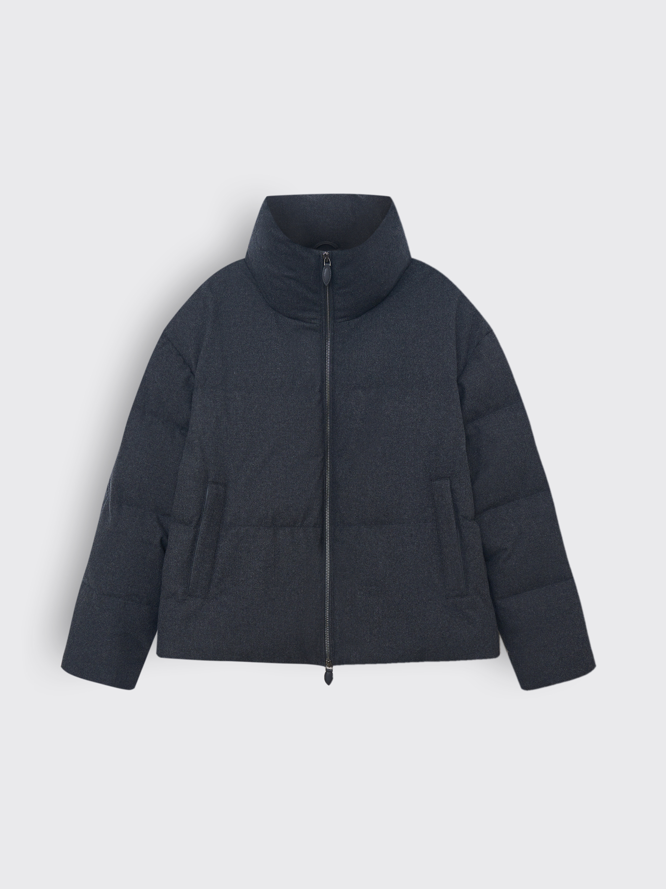Пуховик выполнен из ткани с высоким содержанием шерсти мериноса (94%) и кашемира (6%). Смесь придает верхнему слою мягкость и изысканный внешний вид, а кашемировые волокна усиливают теплоизоляционные свойства. Технология Storm System с мембраной делает ткань водо- и ветронепроницаемой, сохраняя воздухопроницаемость. Наполнитель из пуха и пера белой утки (Fill Power 750) обеспечивает легкость и надежное тепло. Прямой укороченный силуэт дополнен высоким воротником-стойкой, подчеркивающим чистоту линии. Универсальная модель вписывается и в повседневные, и в городские ансамбли.