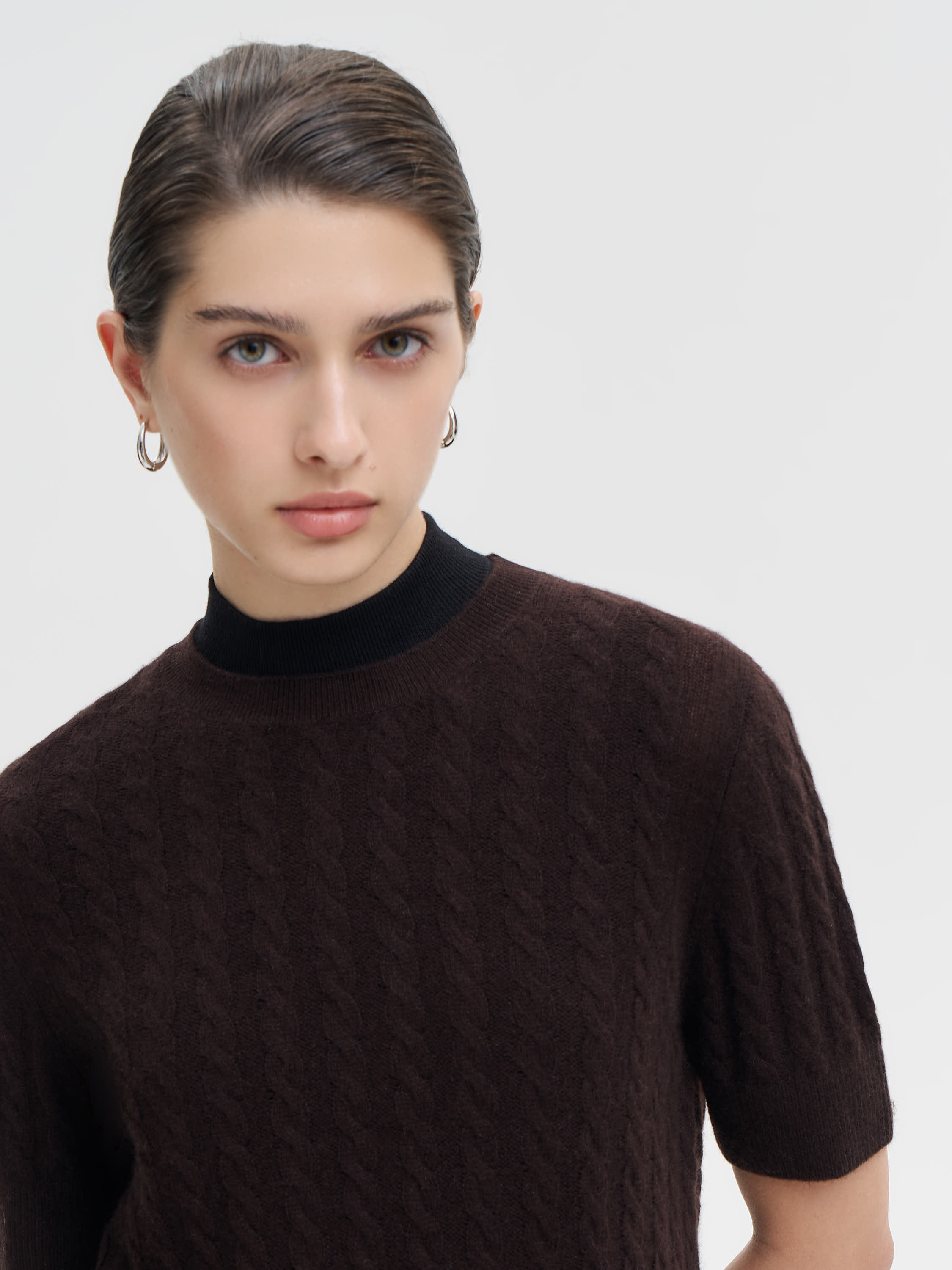 Этот лаконичный, но выразительный топ работает на контрастах. Яркий, насыщенный оттенок задает тон, а спокойная форма уравновешивает композицию. Круглая горловина с мягкой окантовкой задает ритм, короткий рукав и прямой крой придают структуру. Фактурная вязка с деликатным рельефом сохраняет интерес даже в монохроме. Состав на основе мериносовой шерсти и кашемира держит форму, деликатно прилегает к телу, не перегревает. Вписывается в городские образы на каждый день: с широкими брюками, костюмной юбкой или под жакет для многослойных сочетаний.