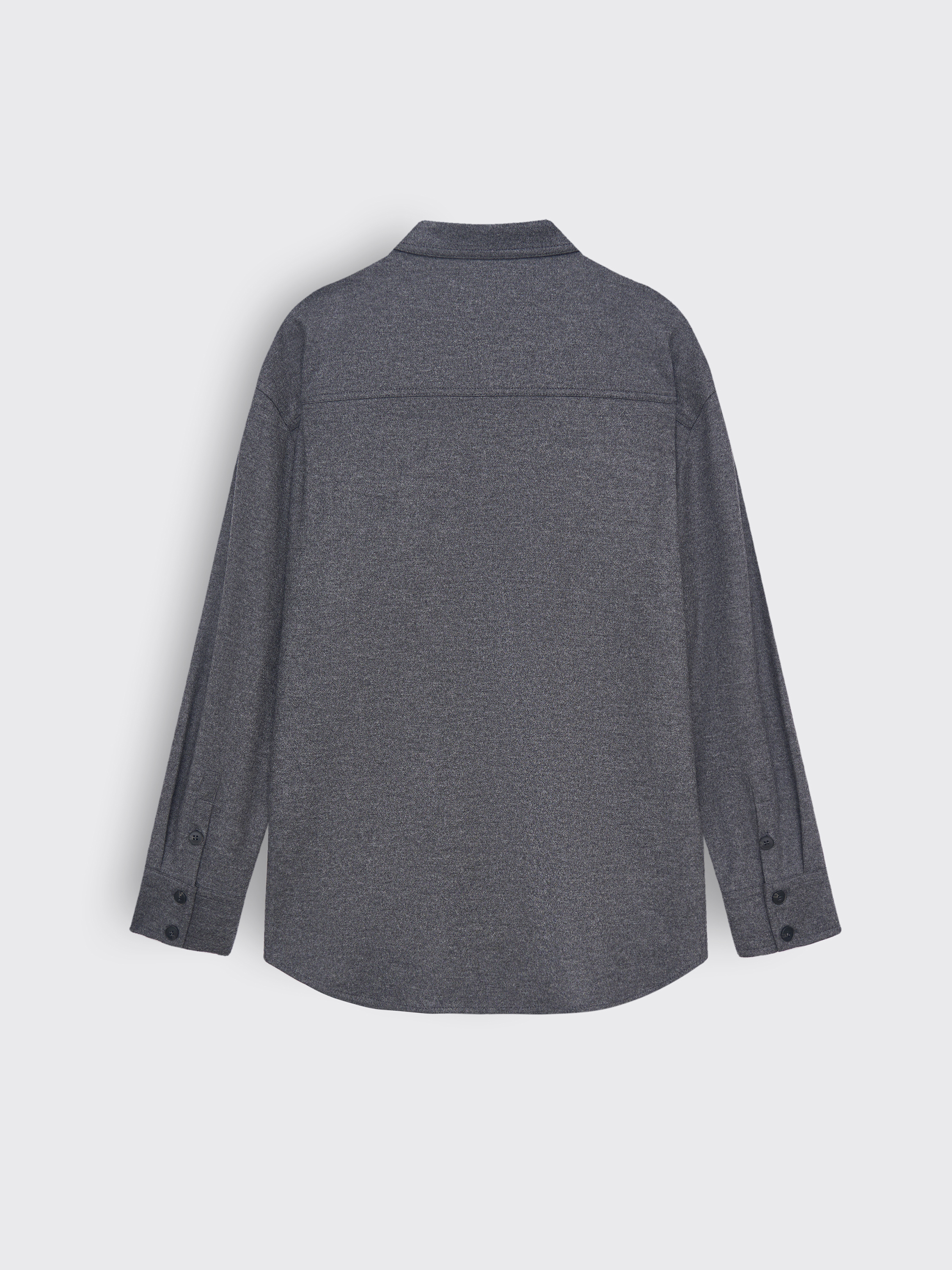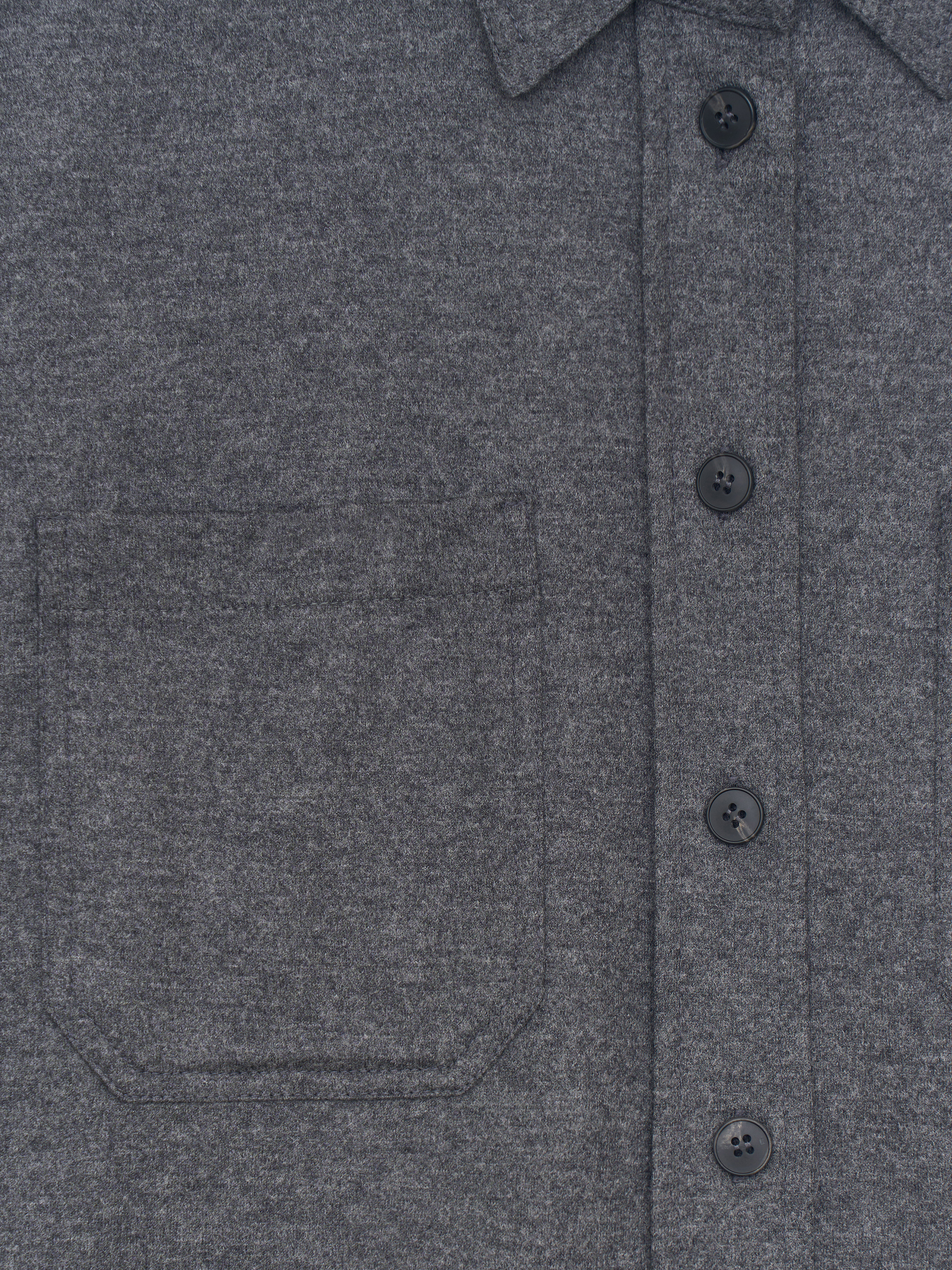 Рубашка выполнена из мягкой костюмной ткани с высоким содержанием шерсти. Материал приятен на ощупь, сохраняет тепло и форму, а небольшая доля нейлона добавляет износостойкости. Прямой крой с накладными карманами и плавной линией плеч делает модель универсальной — ее можно носить как самостоятельный слой или поверх футболки и водолазки. Продуманная структура ткани делает вещь комфортной в повседневной носке и подходящей для многослойных образов в холодный сезон.