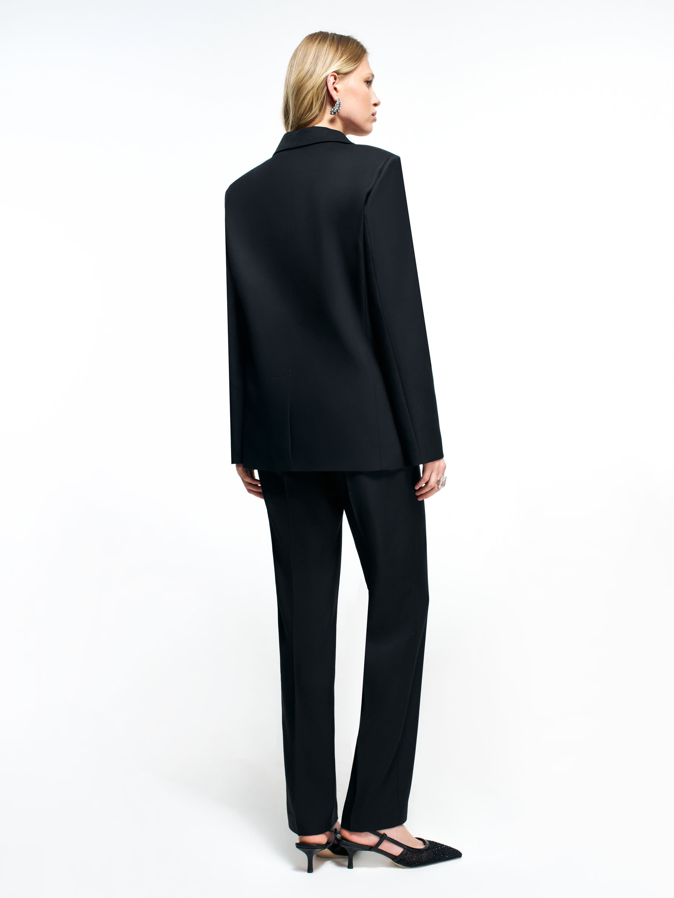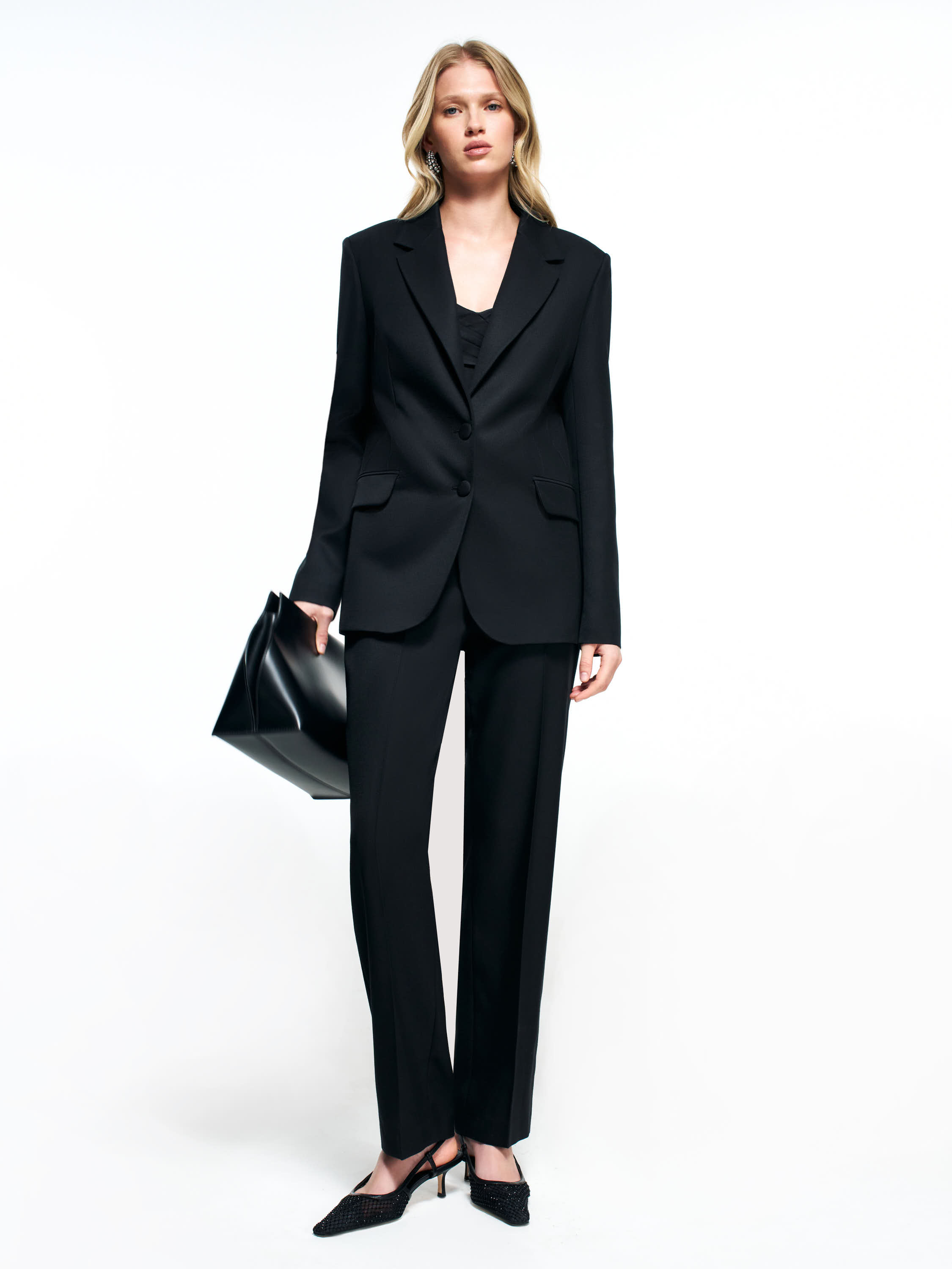 Жакет из шерсти и ацетата — структурная модель с чистыми линиями и аккуратным силуэтом. Полотно сочетает плотность шерсти и мягкую пластику ацетата, поэтому жакет держит форму и остается комфортным в течение дня. Посадка прямая, слегка расслабленная; плечи оформлены ровно, без лишнего объема. Классические лацканы и застежка на две пуговицы формируют собранный контур. Карманы с клапанами добавляют архитектурный акцент и не утяжеляют композицию. Длина позволяет сочетать модель с прямыми брюками, юбками и базовыми топами. Жакет подходит как для деловых комплектов, так и для более повседневных образов.