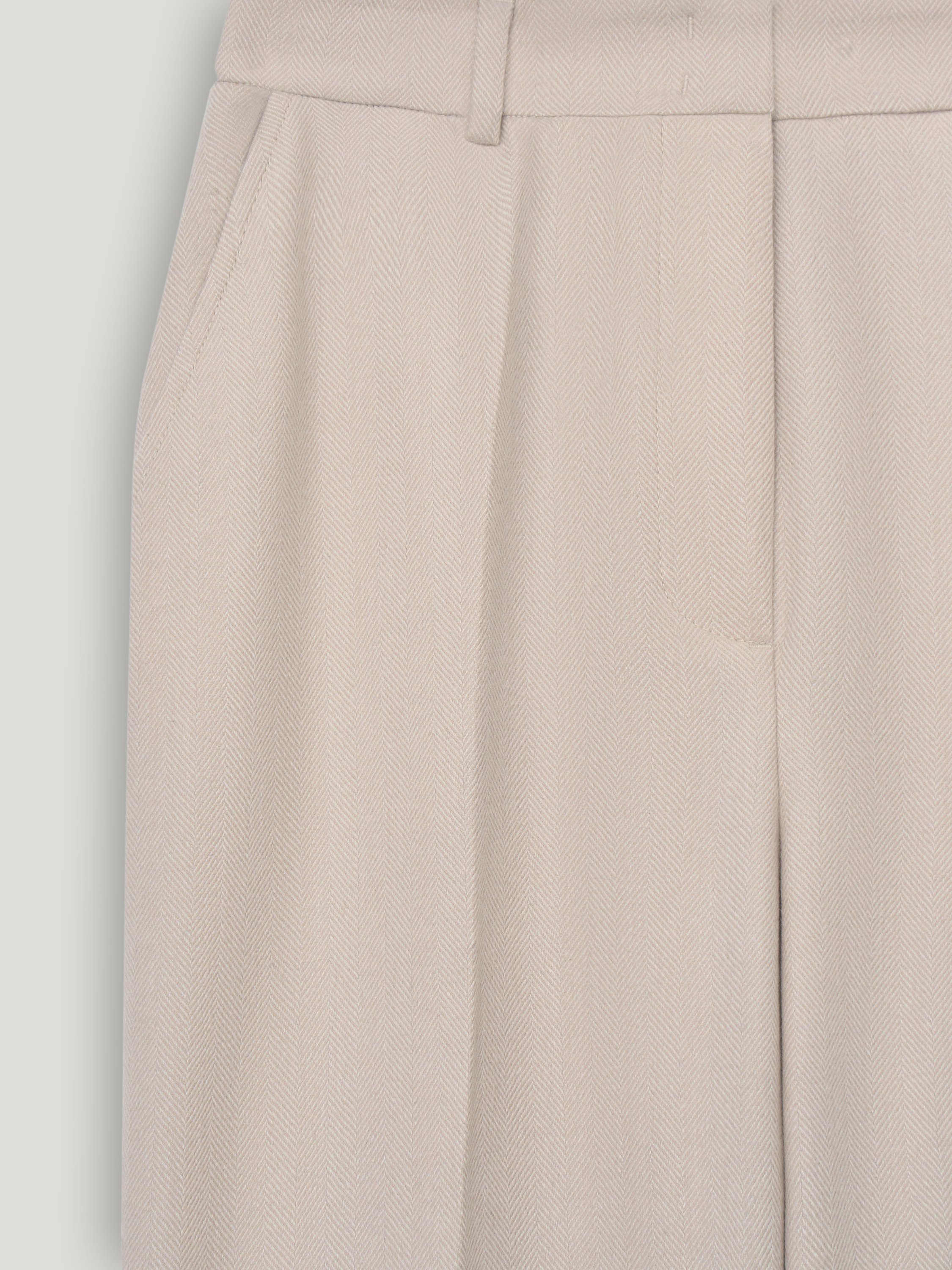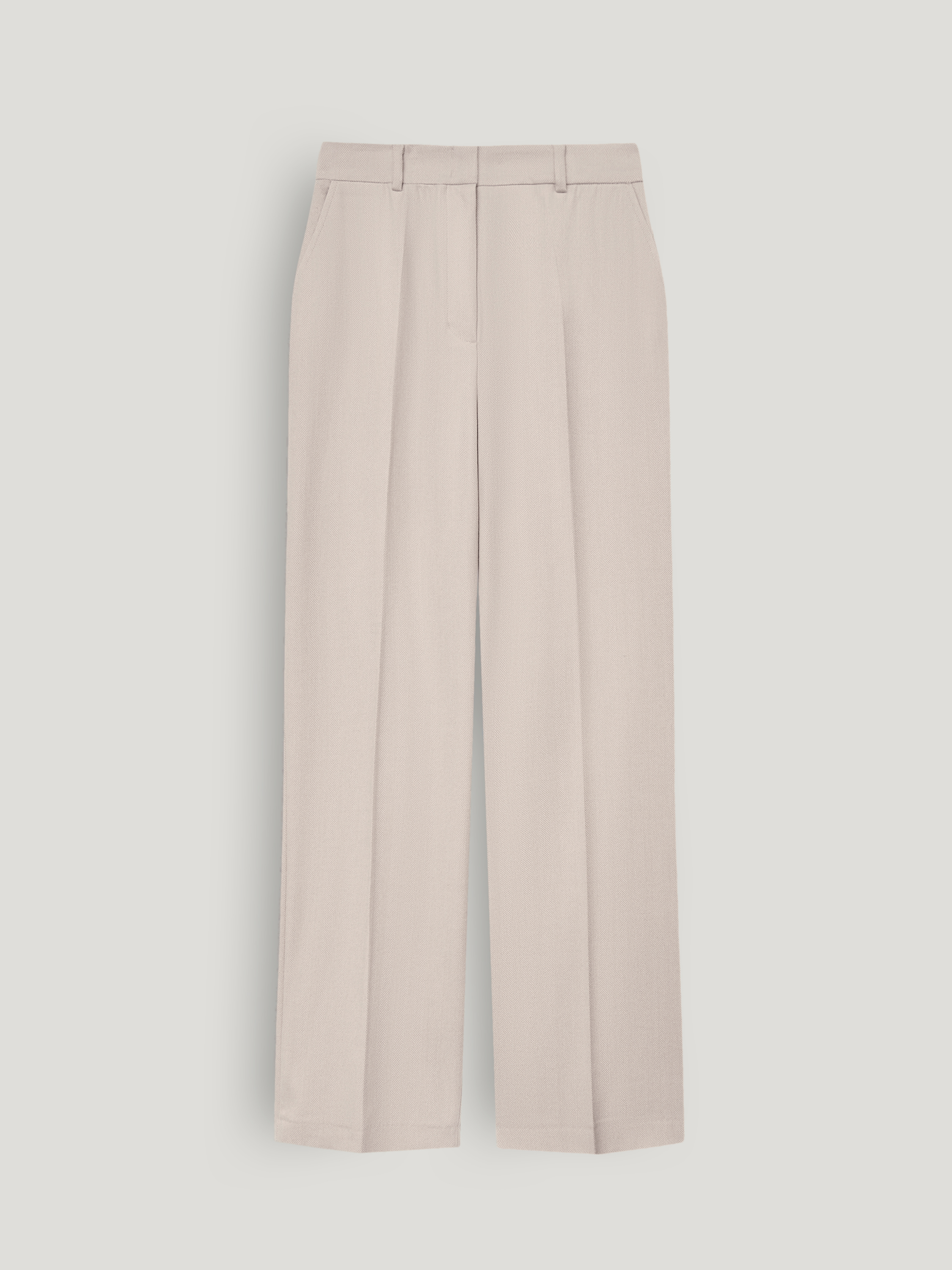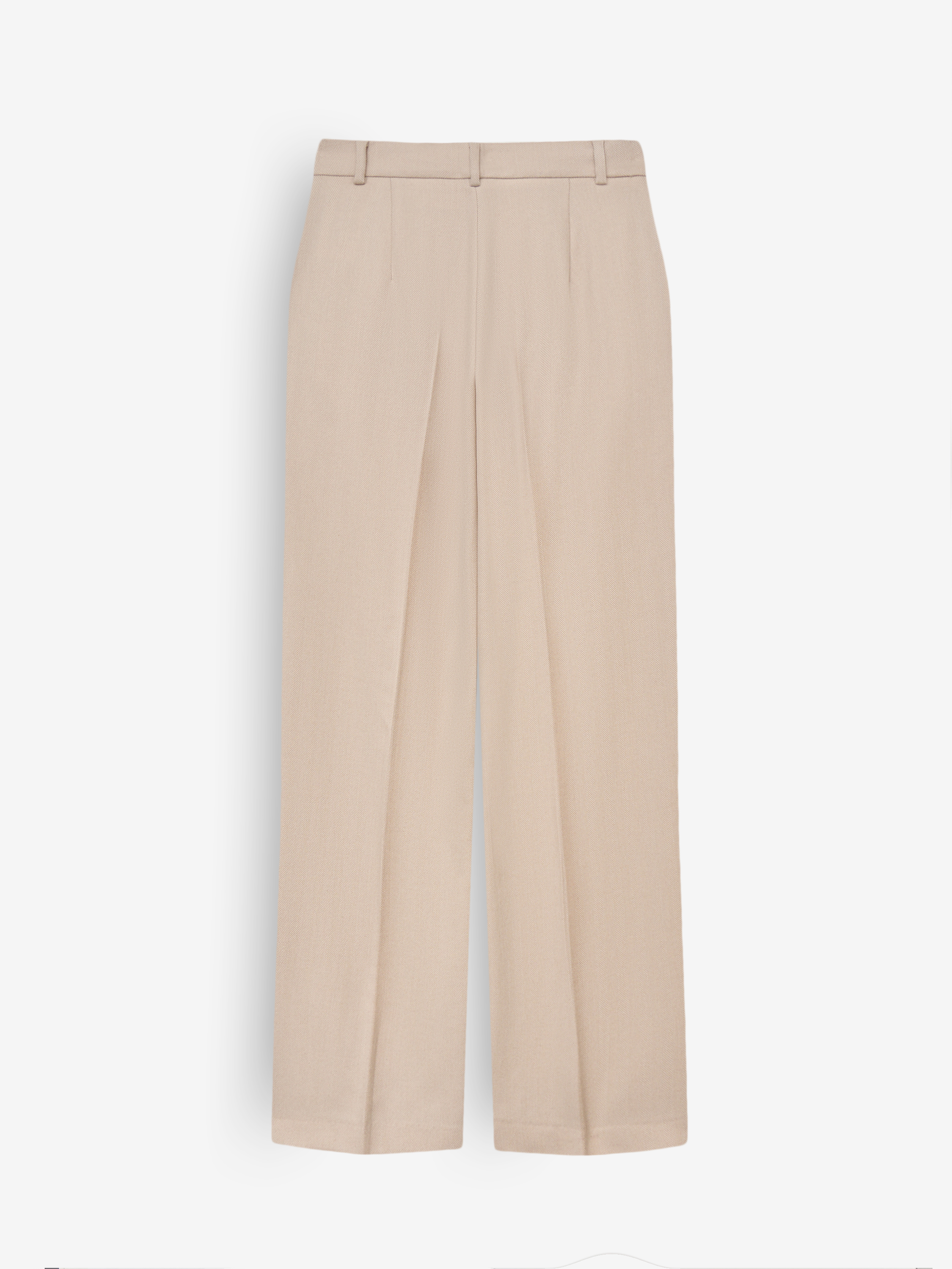 Брюки выполнены в прямом силуэте с легким расширением к линии низа и аккуратной посадкой по талии. Материал с добавлением шерсти, кашемира и шелка отличается мягкостью, пластичностью и устойчивостью к деформации, поэтому изделие сохраняет ровный, аккуратный контур в течение дня. Стрелки формируют четкую вертикаль и визуально вытягивают силуэт, а пояс со шлевками позволяет дополнить образ ремнем при необходимости. Длина брюк подходит для разных вариантов обуви и делает модель универсальной в современном гардеробе. Они органично сочетаются с рубашками, жакетами, трикотажем и лаконичными топами, составляя собранные, элегантные комплекты для повседневных и деловых ситуаций.