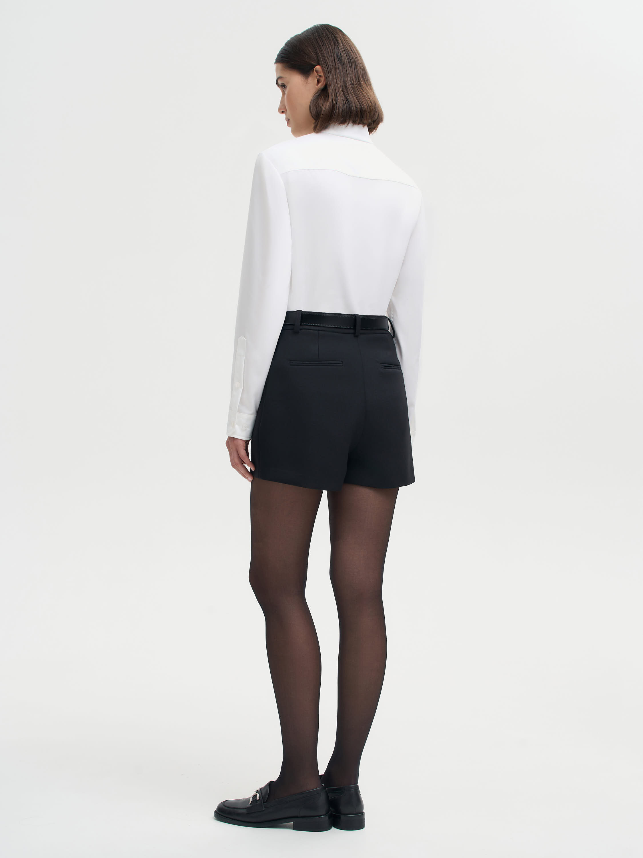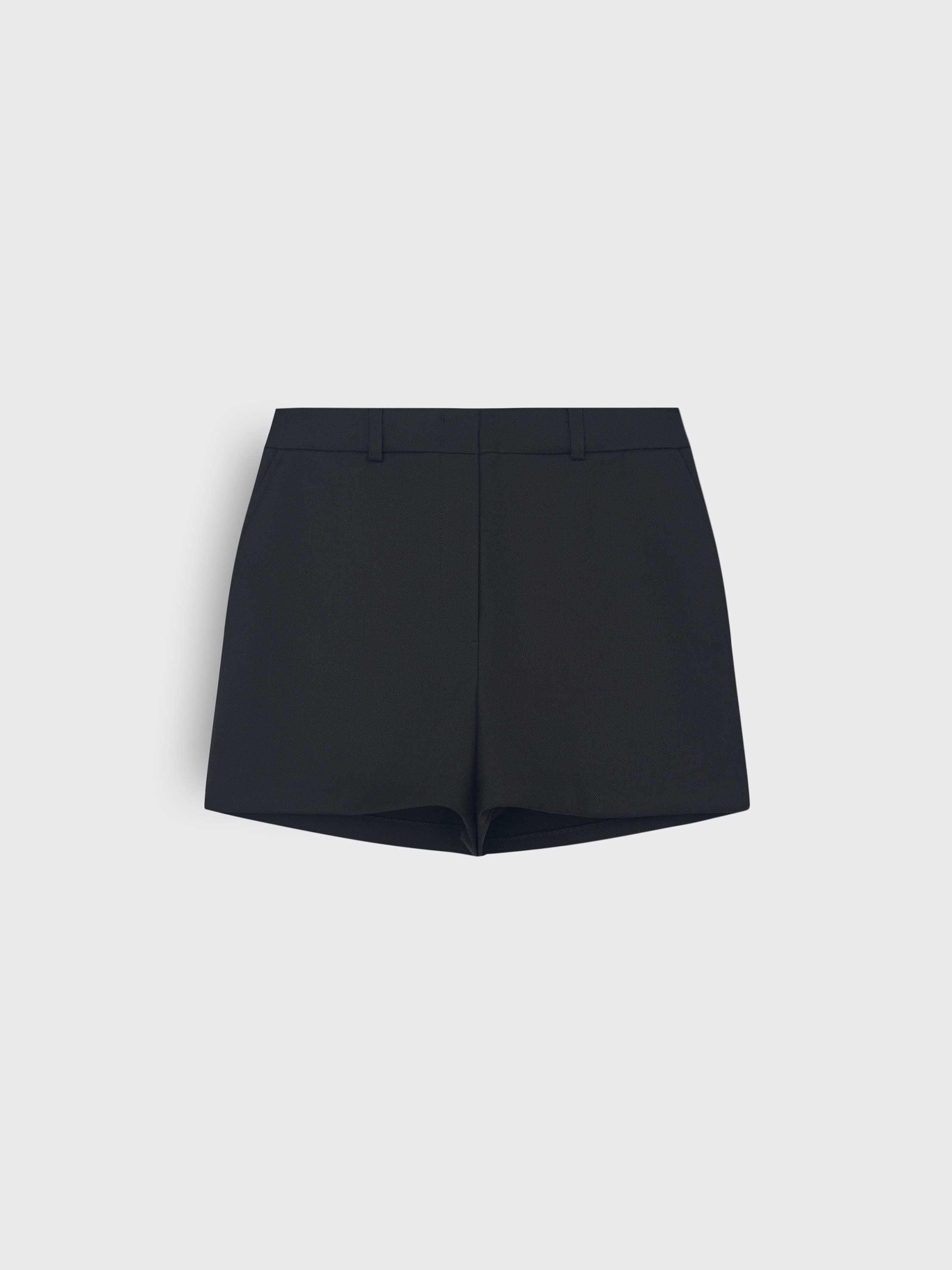 Мини-шорты с лаконичным силуэтом, выполненные из костюмной ткани с высоким содержанием шерсти и полиэстера. Материал прочный, пластичный и комфортный в носке, хорошо держит форму и устойчив к деформации. Посадка средняя, линия талии дополнена шлевками для ремня. Крой прямой, с чистыми линиями и аккуратными боковыми карманами. Лаконичный дизайн делает модель универсальной: шорты легко вписываются в повседневные и деловые ансамбли — в паре с жакетами, рубашками или трикотажем.